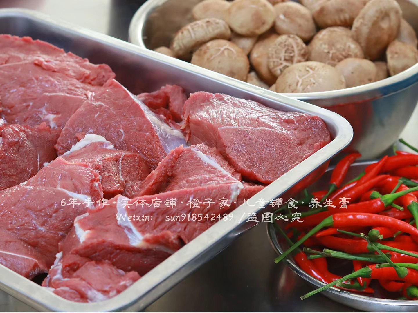 配料:新鲜牛肉、新鲜香菇、豆豉、盐、金龙鱼香油、新鲜辣椒