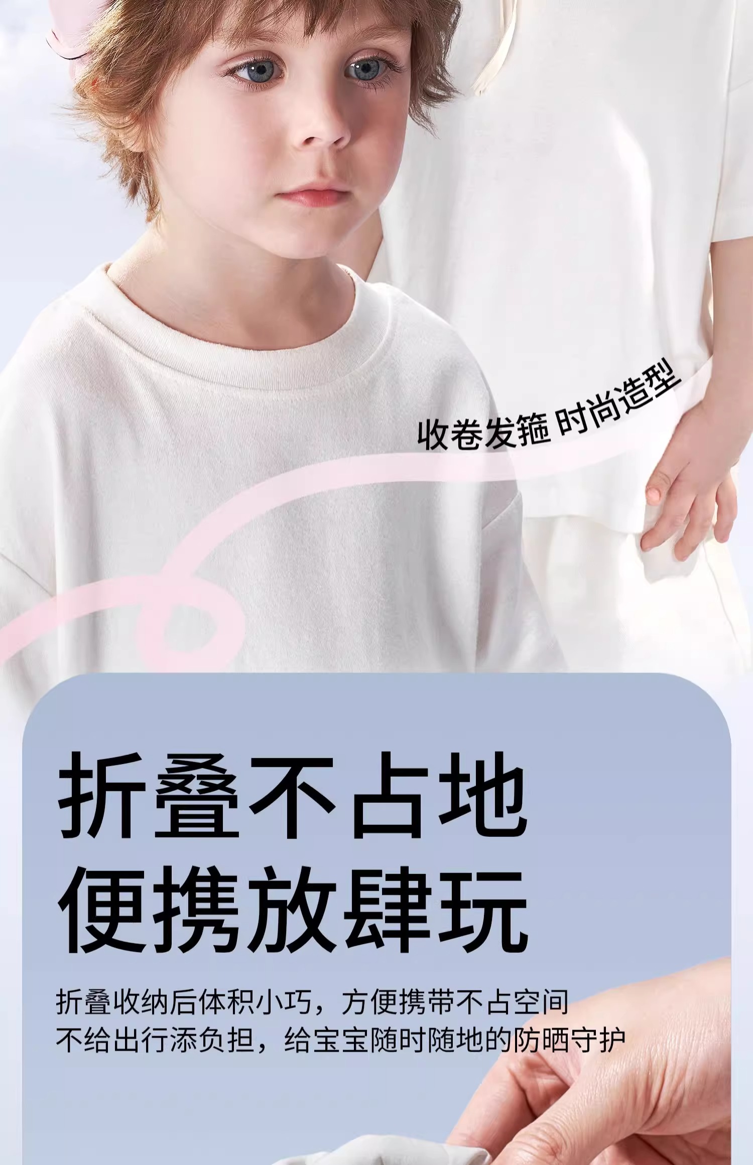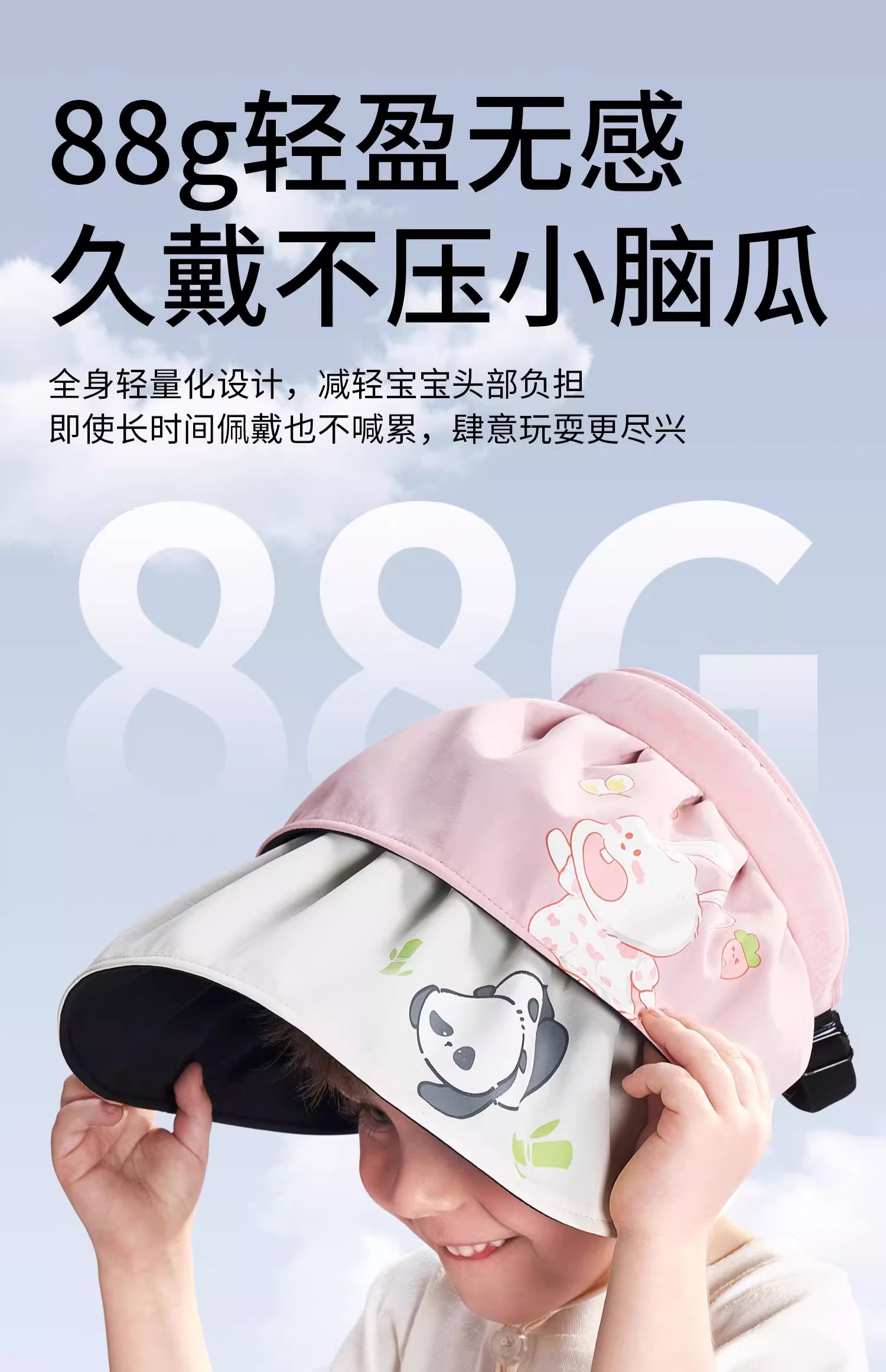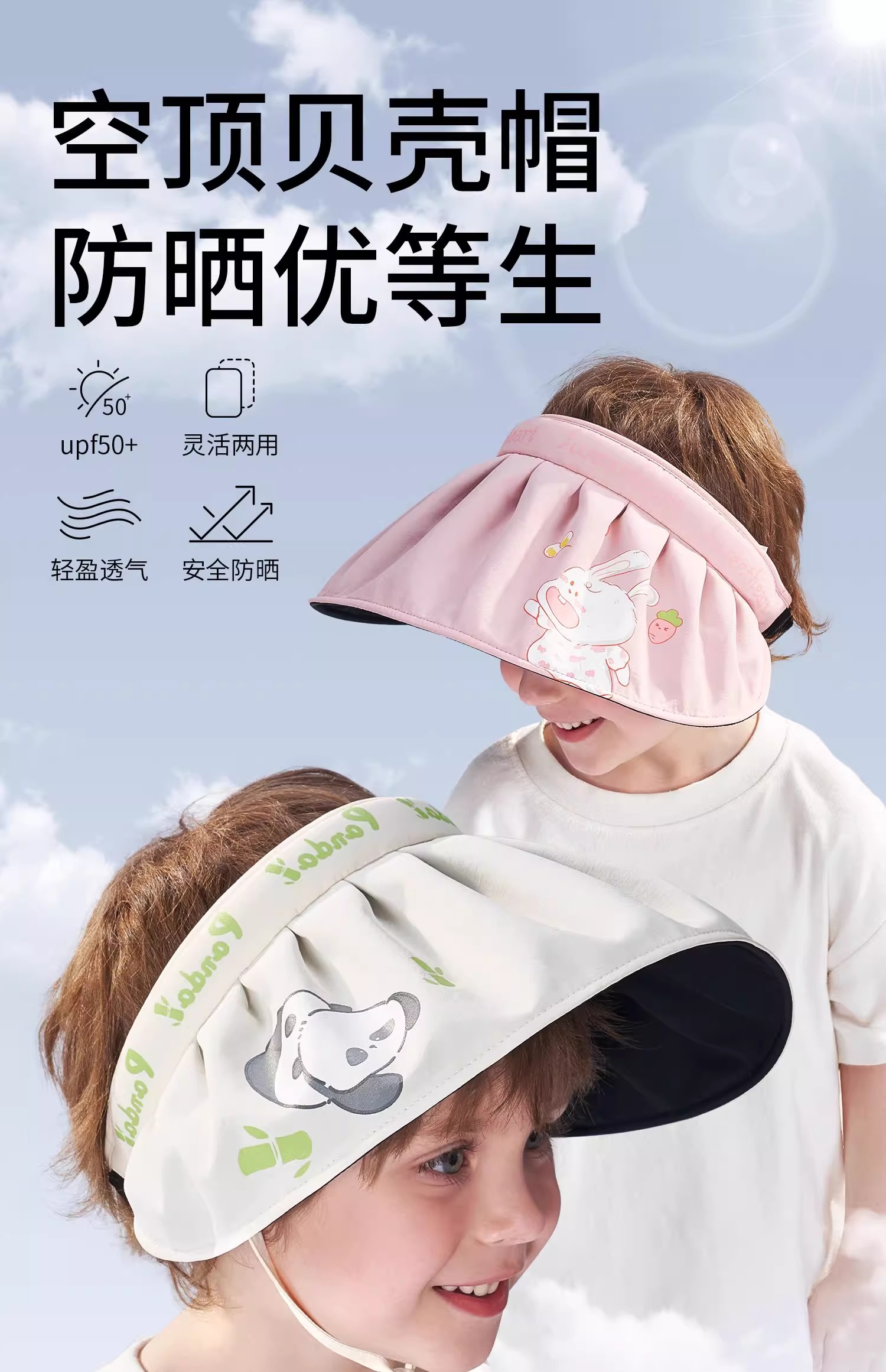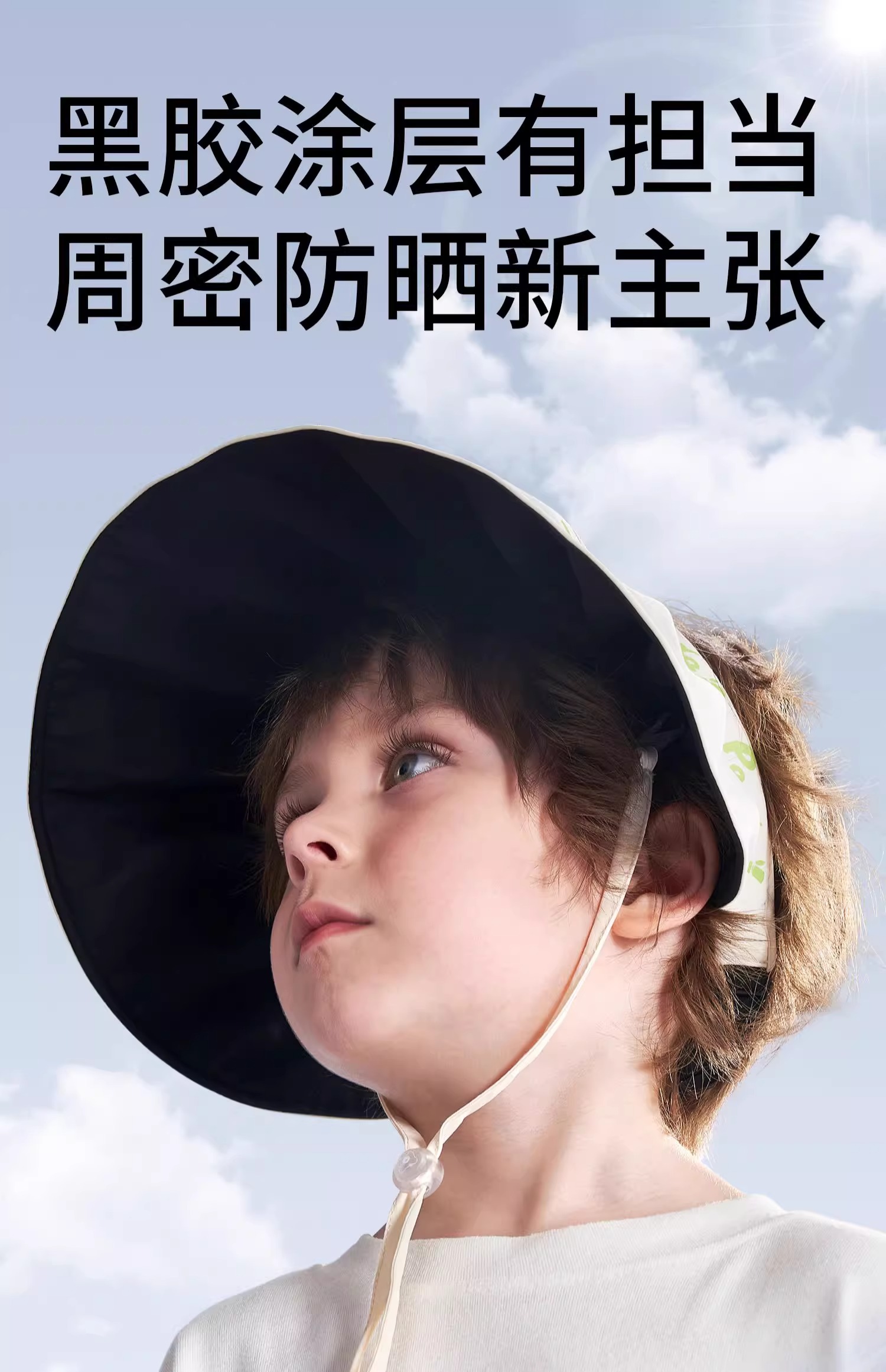 科巢儿童贝壳帽黑胶防晒帽男女童宝宝帽子防紫外线遮阳户外空顶帽