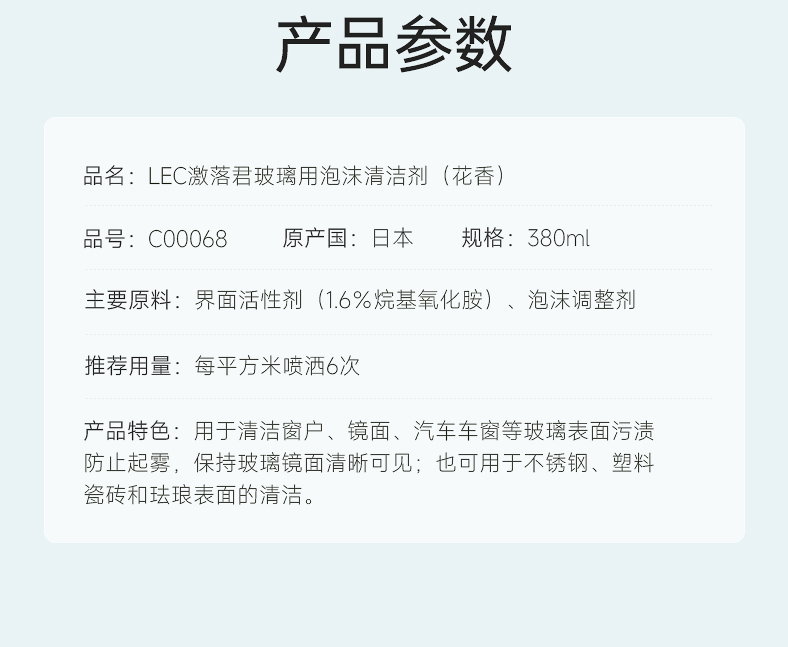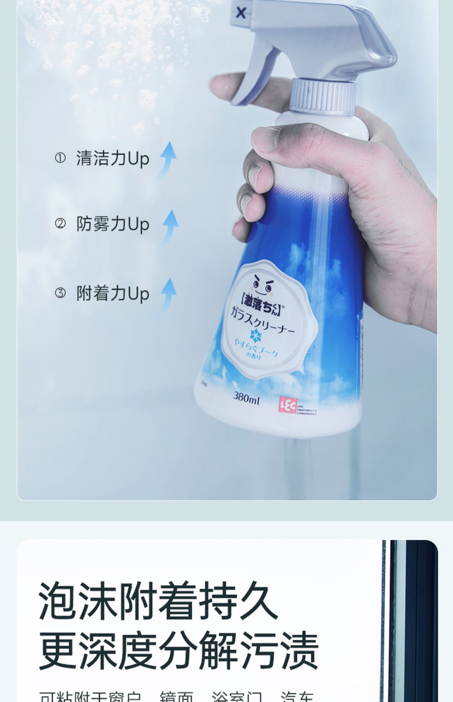 日本进口LEC激落君 玻璃家用擦窗清洁剂强力去污除垢洗浴室瓷砖镜子卫生间洁净神器