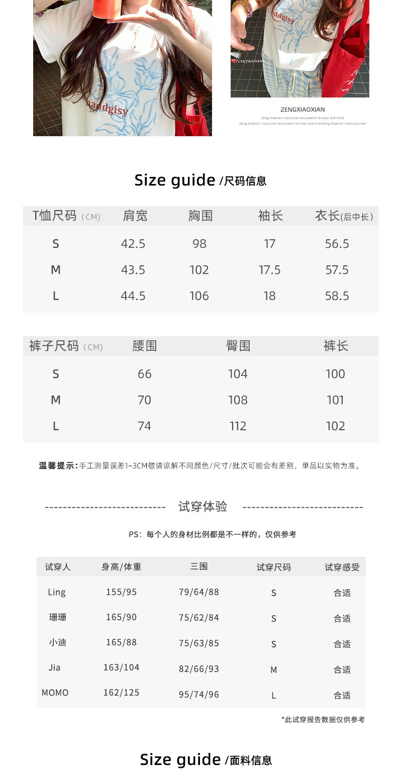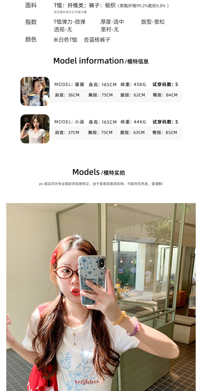 <曾小咸推荐> T恤+格子阔腿裤休闲套装 日常价189/套!活动价99/套!单件T恤59!单件阔腿裤79!【预售款,预计3-15天发货】