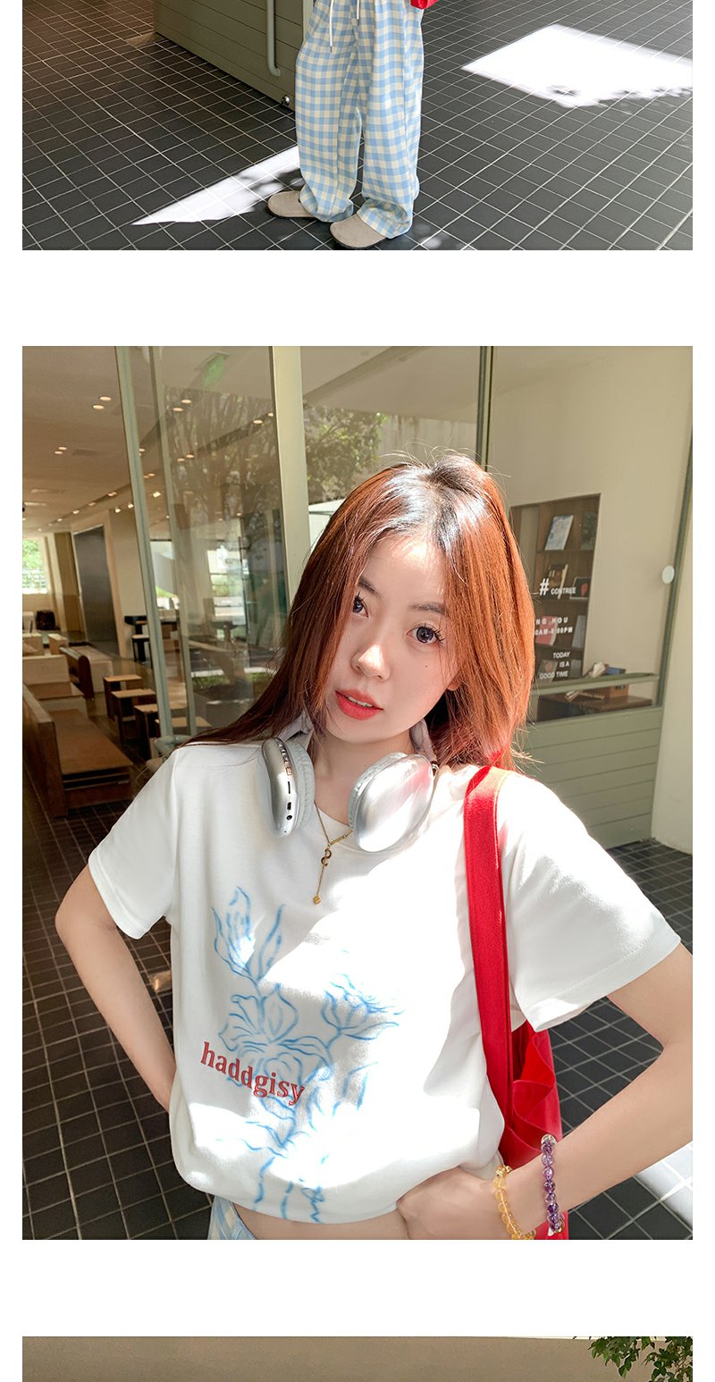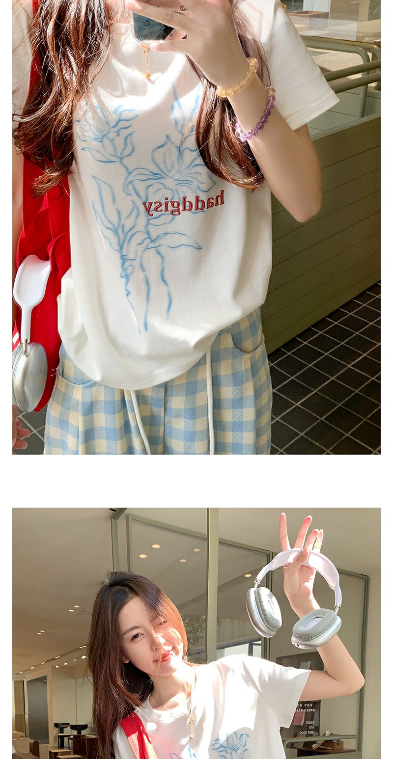 【110元任选2件】最后一波现货!韩系休闲印花白色正肩T恤