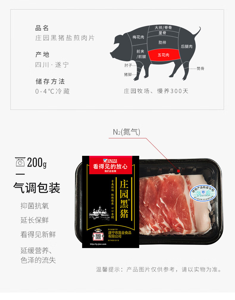 看得见的放心黑猪肉片200g(可炒盐煎肉)