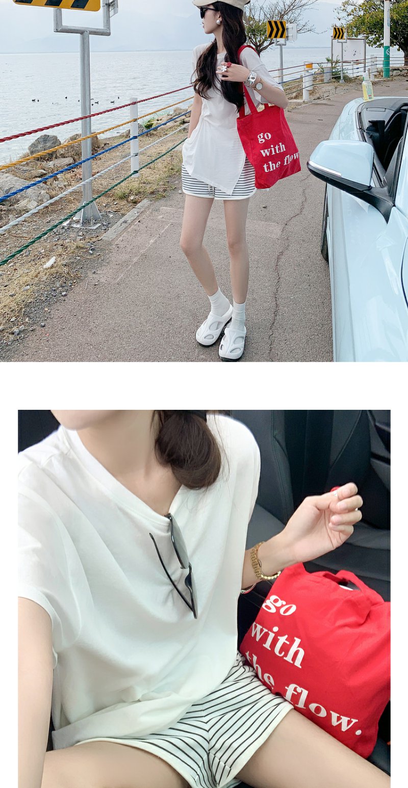 <曾小咸推荐>宽松V领简约通勤短袖T恤上衣【预售款,预计3-15天!!】