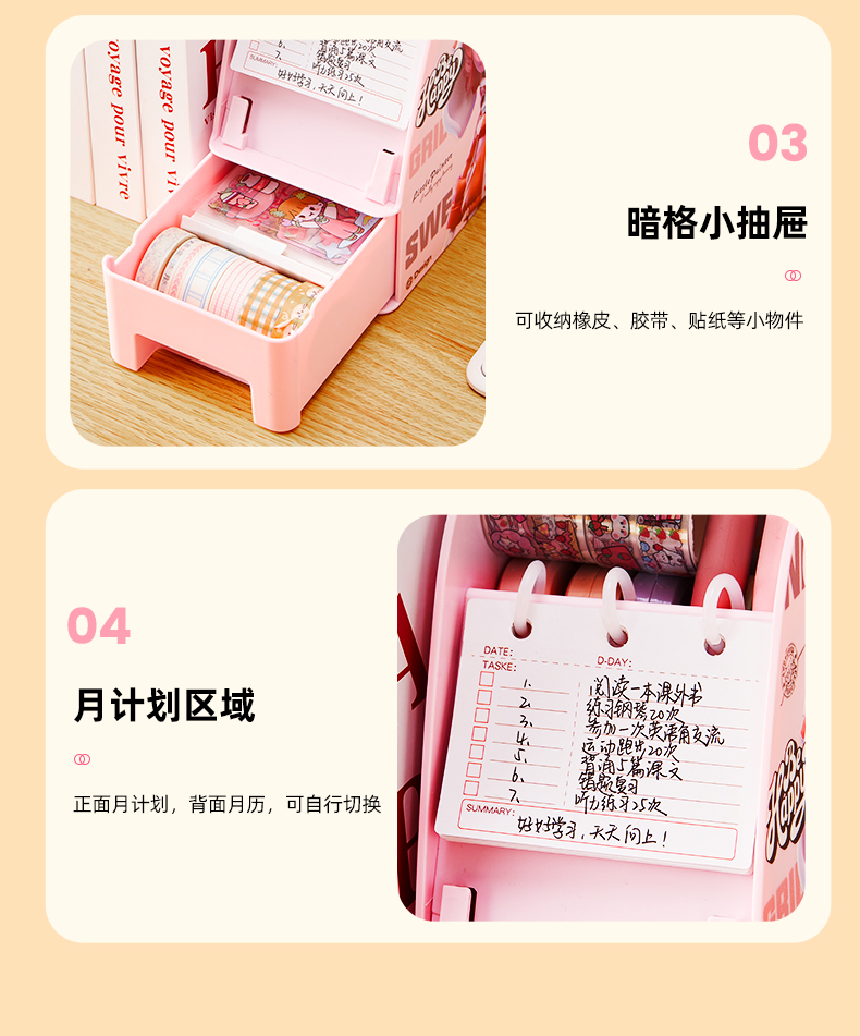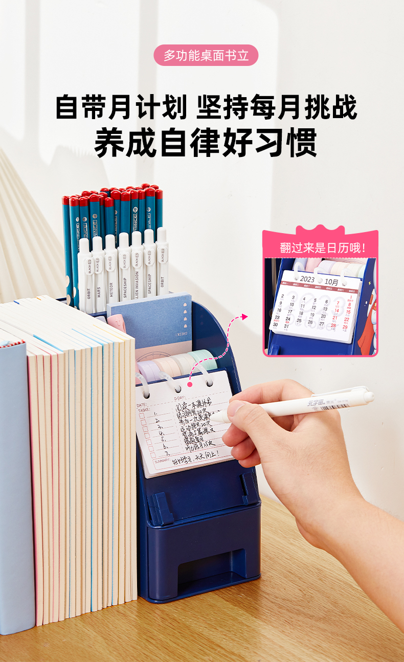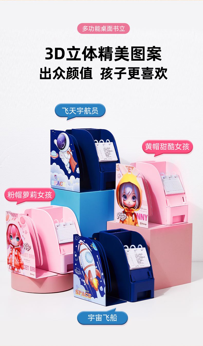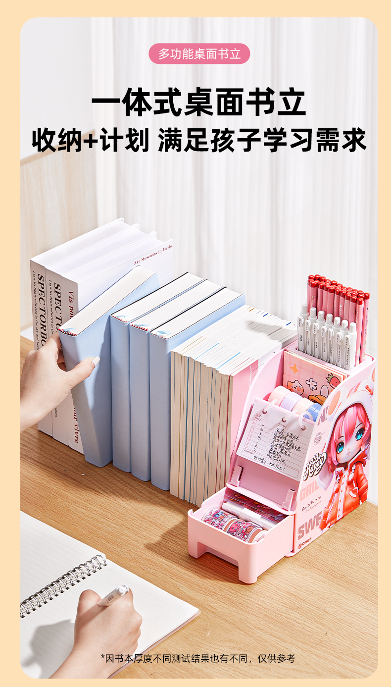 猫太子书立架桌面可伸缩书立多功能书本收纳置物架带笔筒抽屉一体高中生书夹折叠固定书本立架小学生放书神器