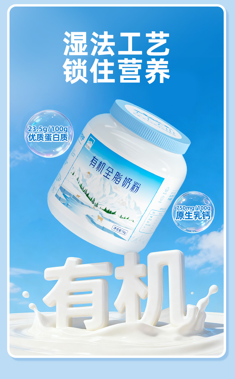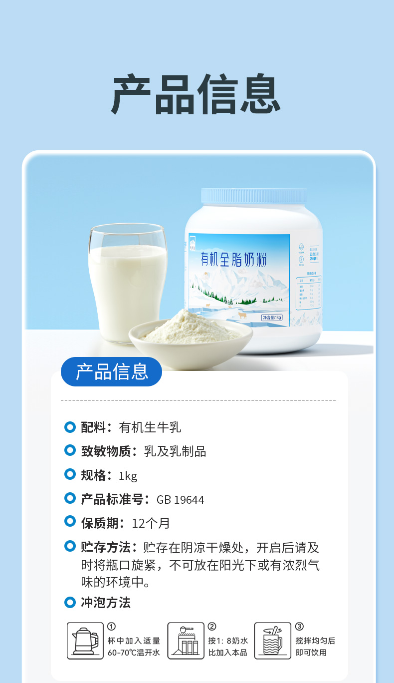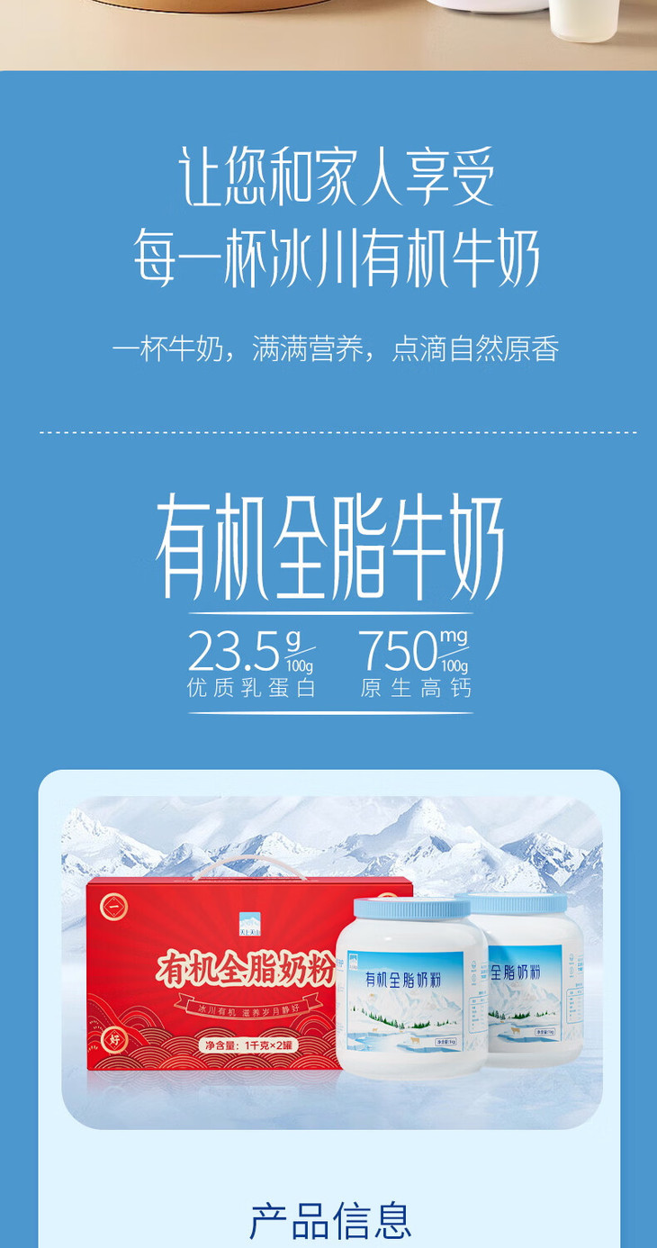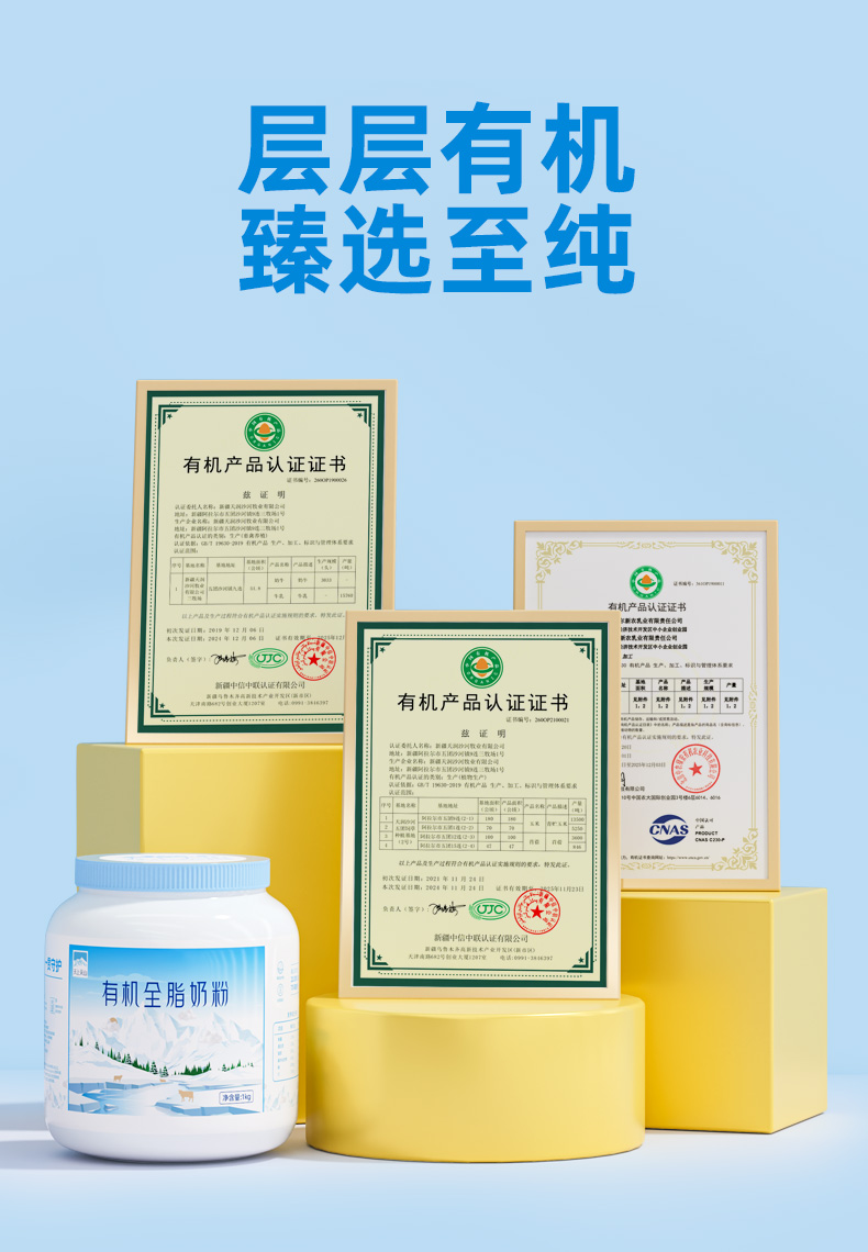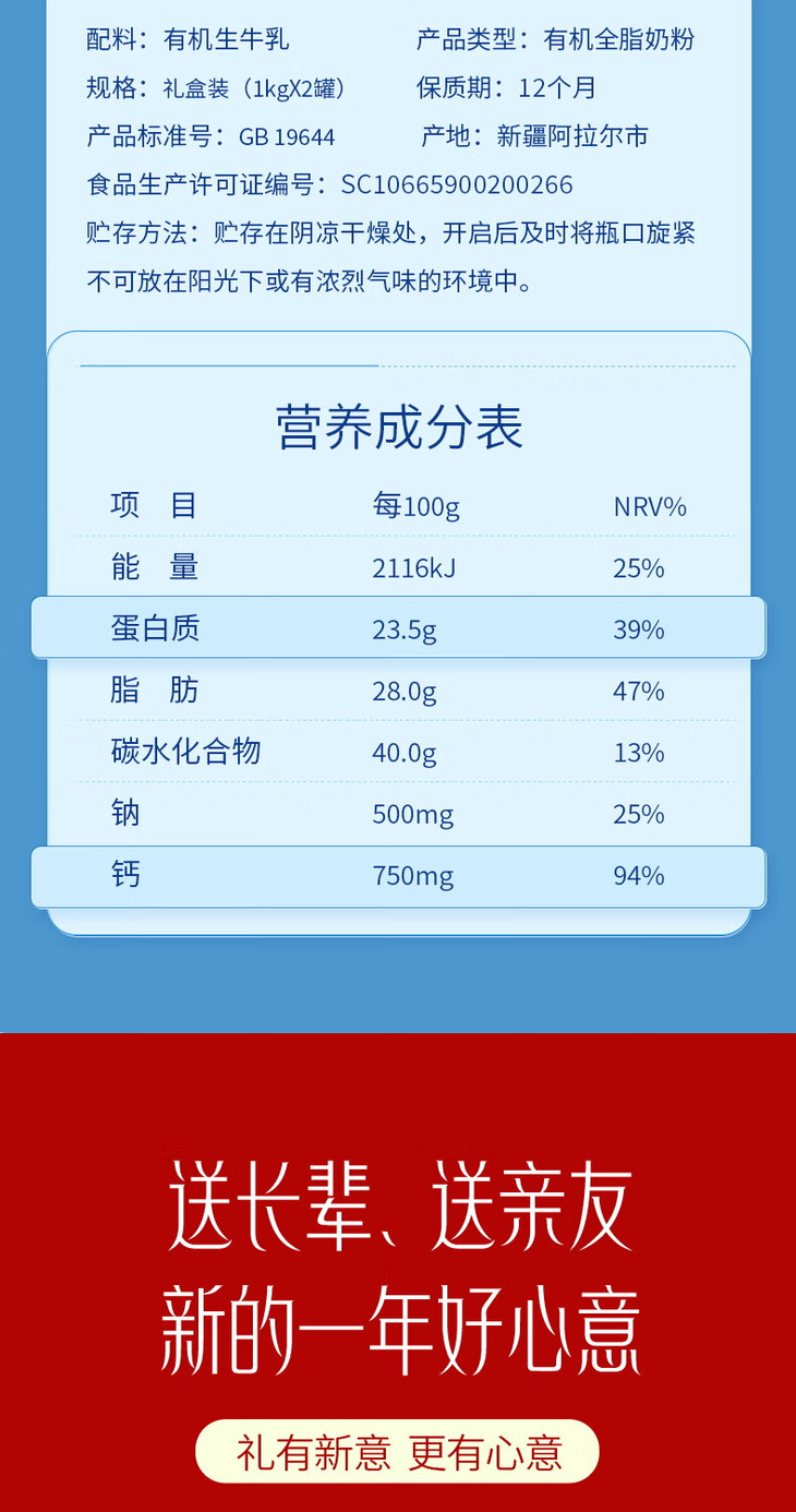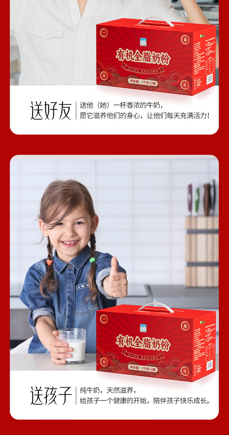 有机全脂奶粉1kg*2礼盒新疆奶源三重有机认证