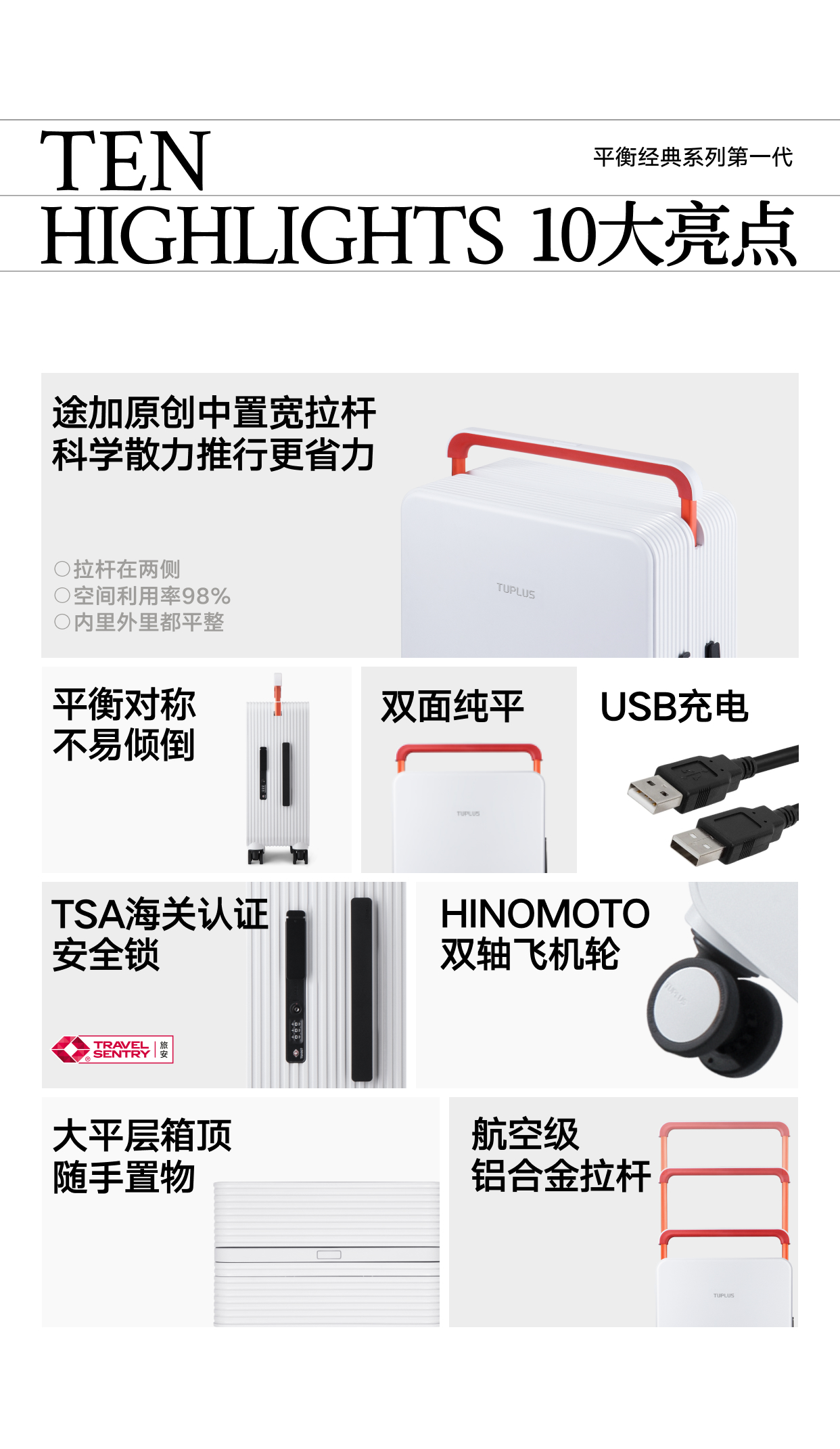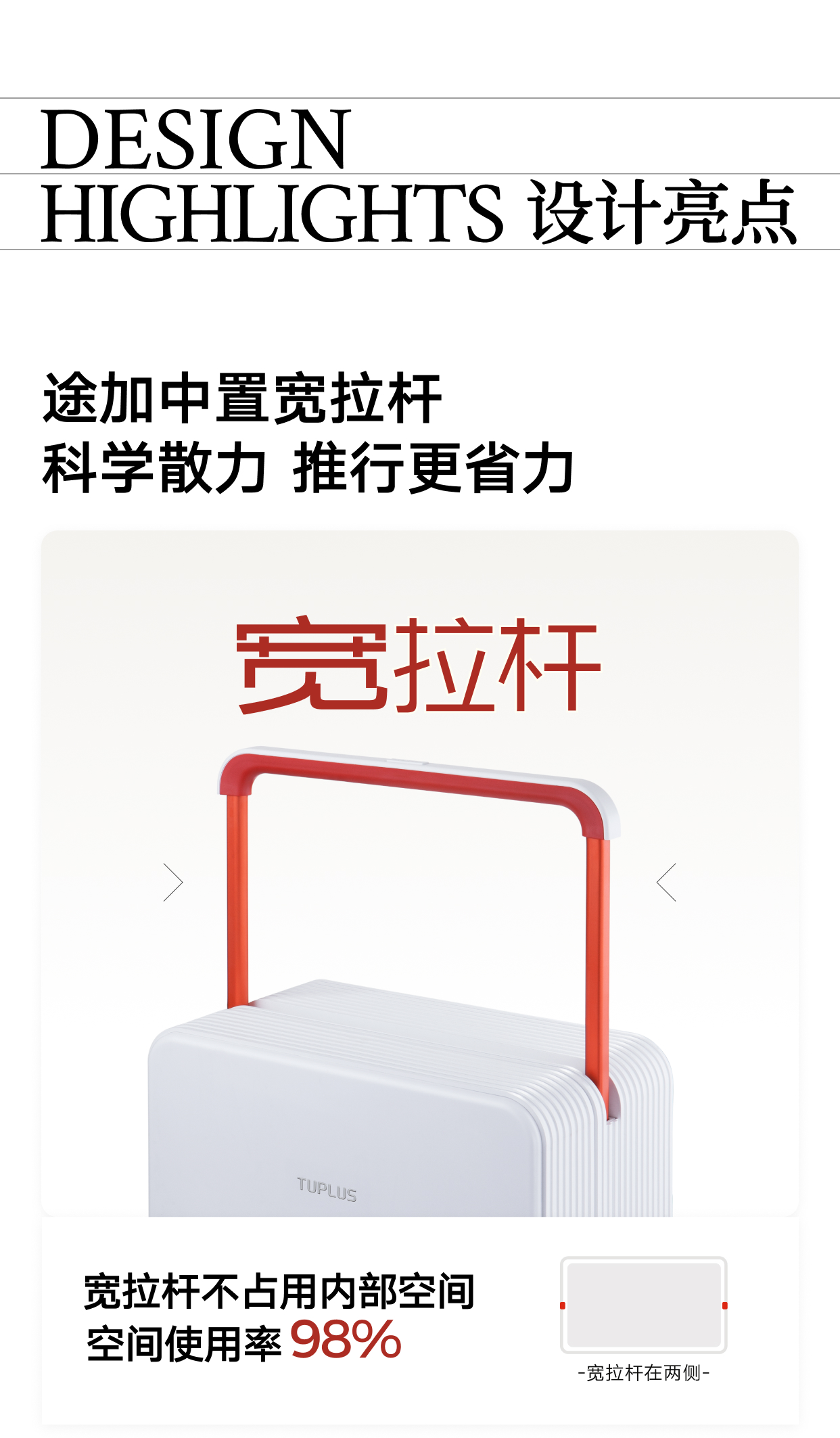 【出行好物丨途加 平衡经典20/24寸中置宽拉杆行李箱】宽拉杆不占用内部空间,科学散力推行更省力,不用分正反两面都可以推,轻量化分区收纳,再多行李不怕乱