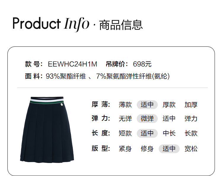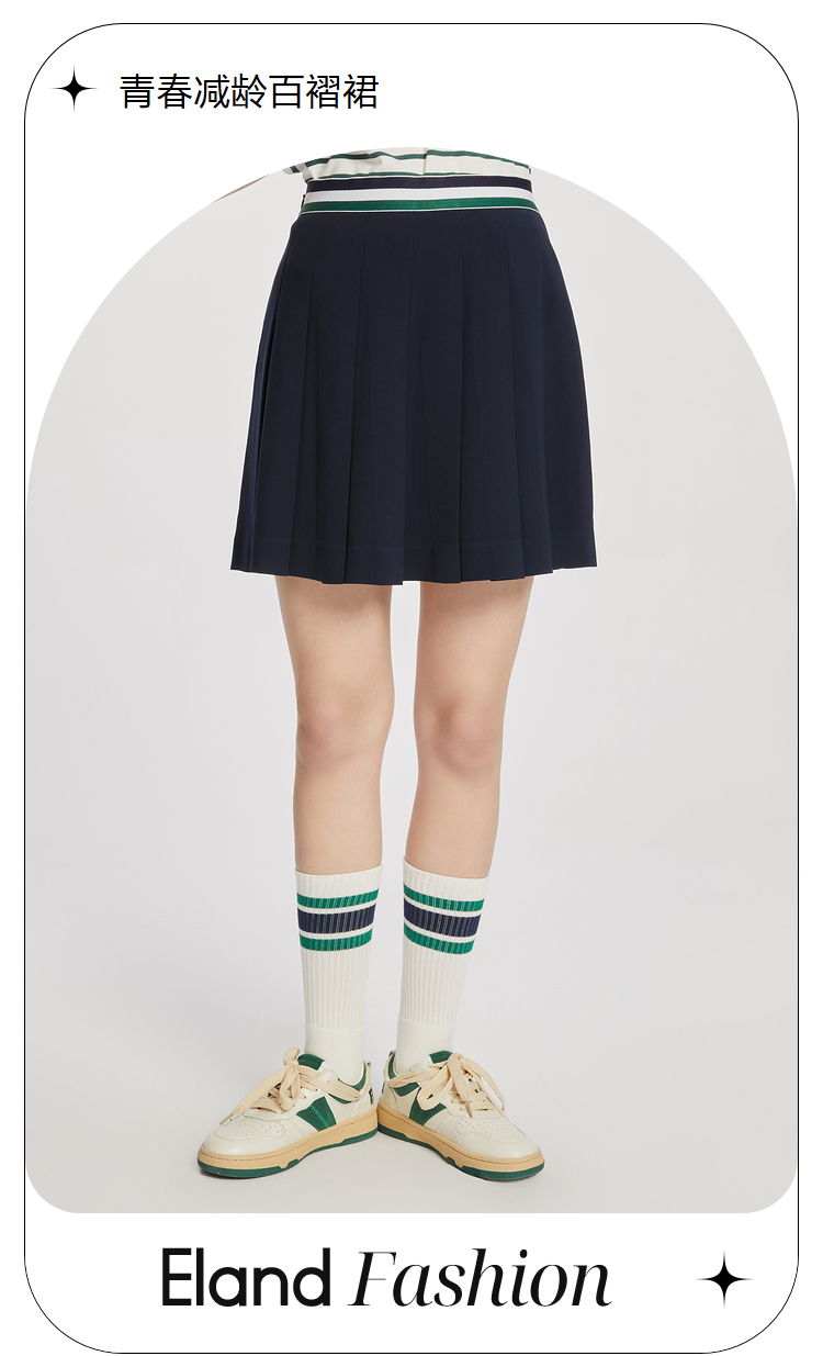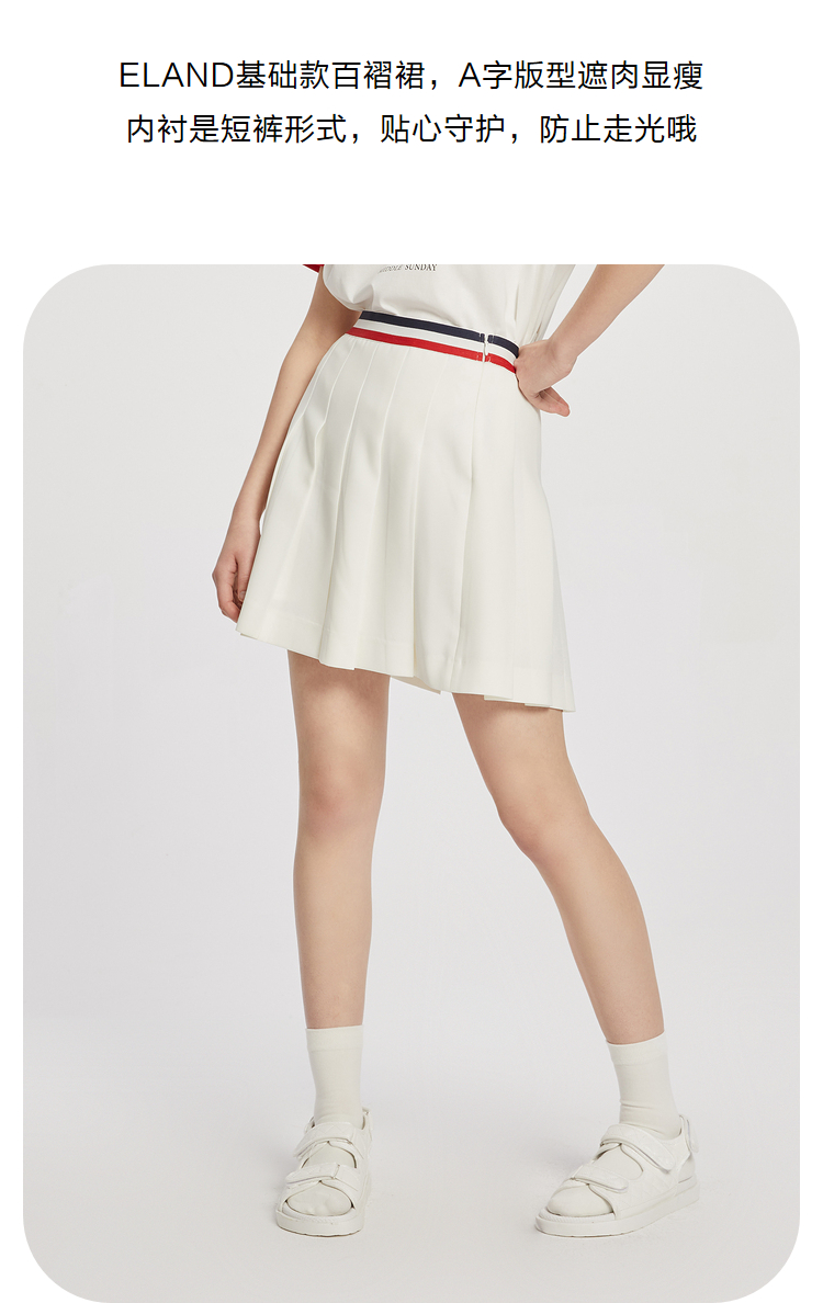 ELAND衣恋减龄时尚松紧裤腰青春学院风百褶裙女EEWHC24H1M