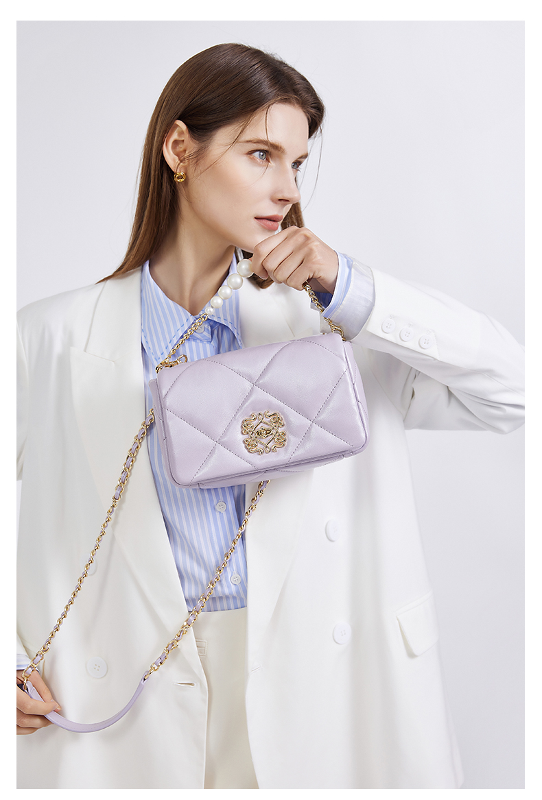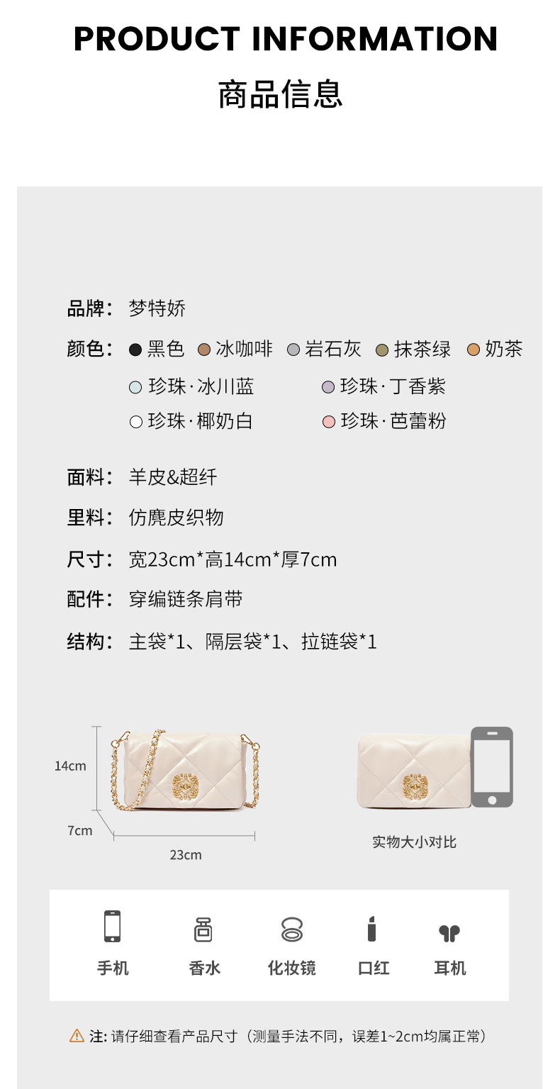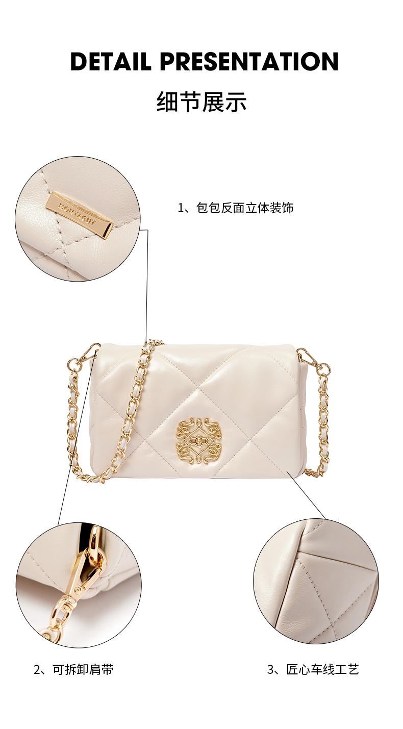 梦特娇法式时尚斜挎包女士通勤菱格单肩百搭羊皮女包