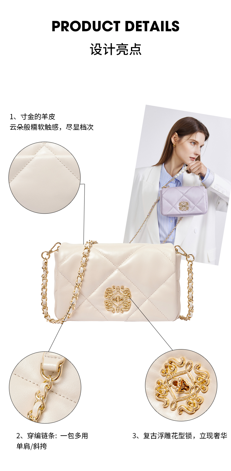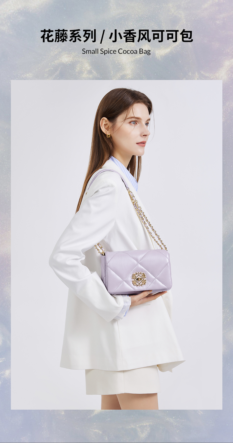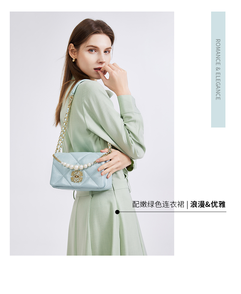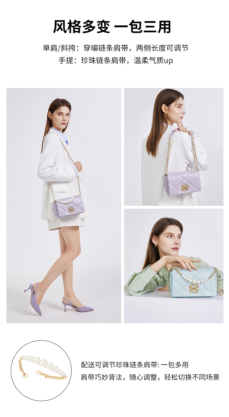 梦特娇法式时尚斜挎包女士通勤菱格单肩百搭羊皮女包