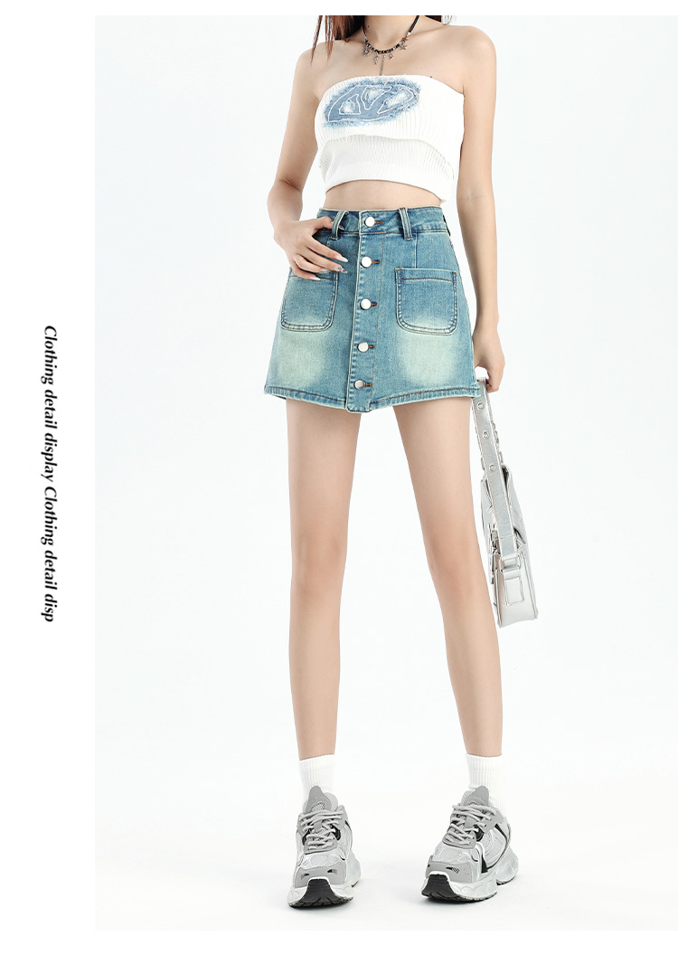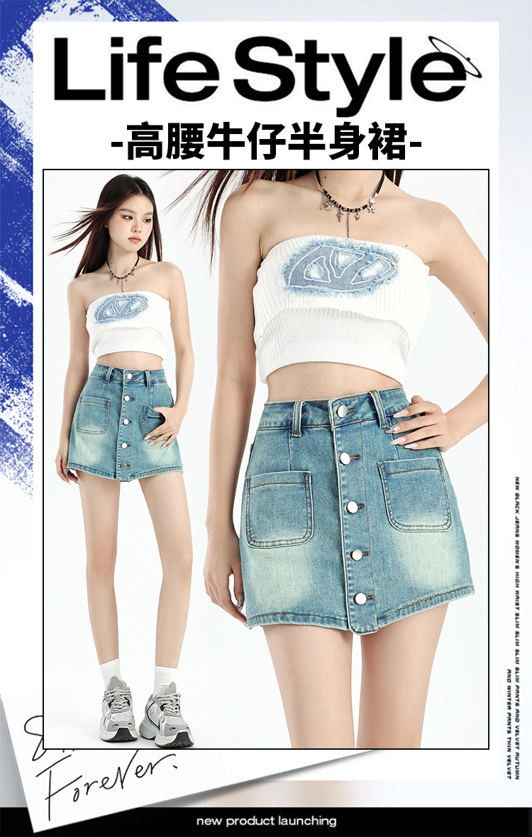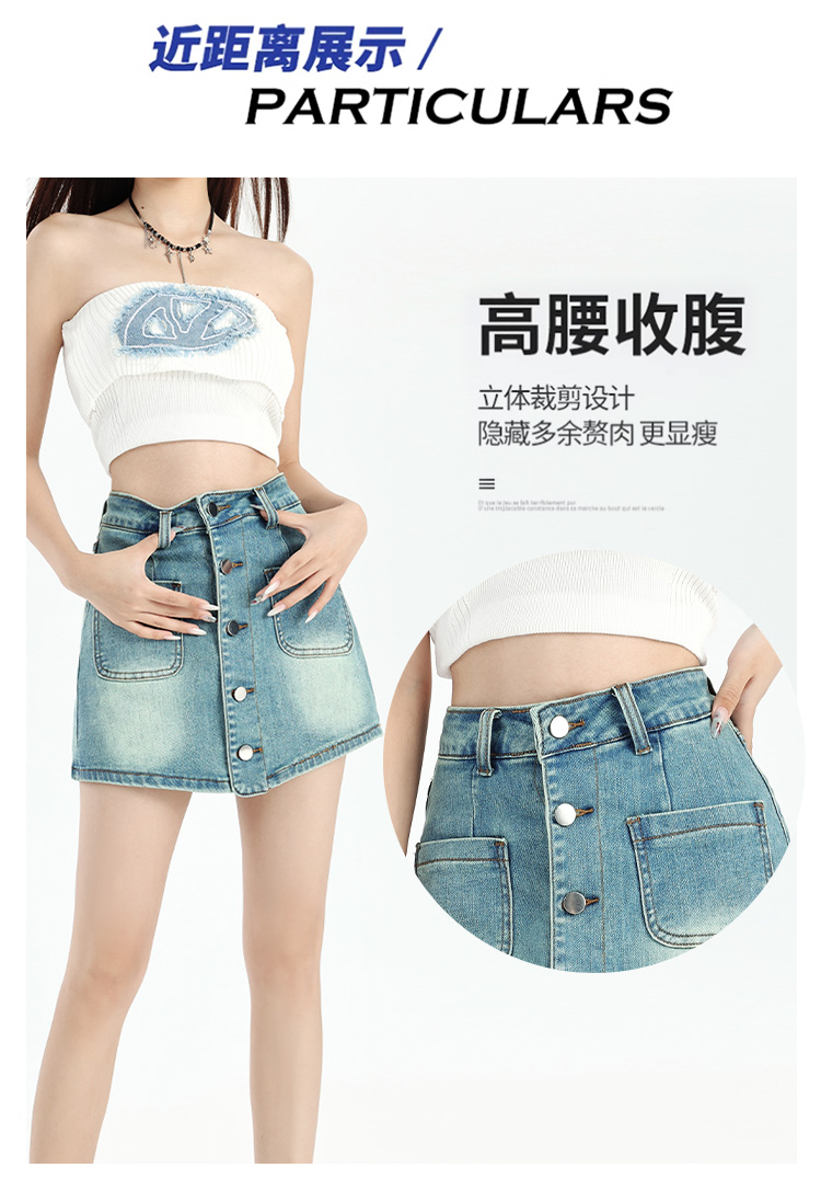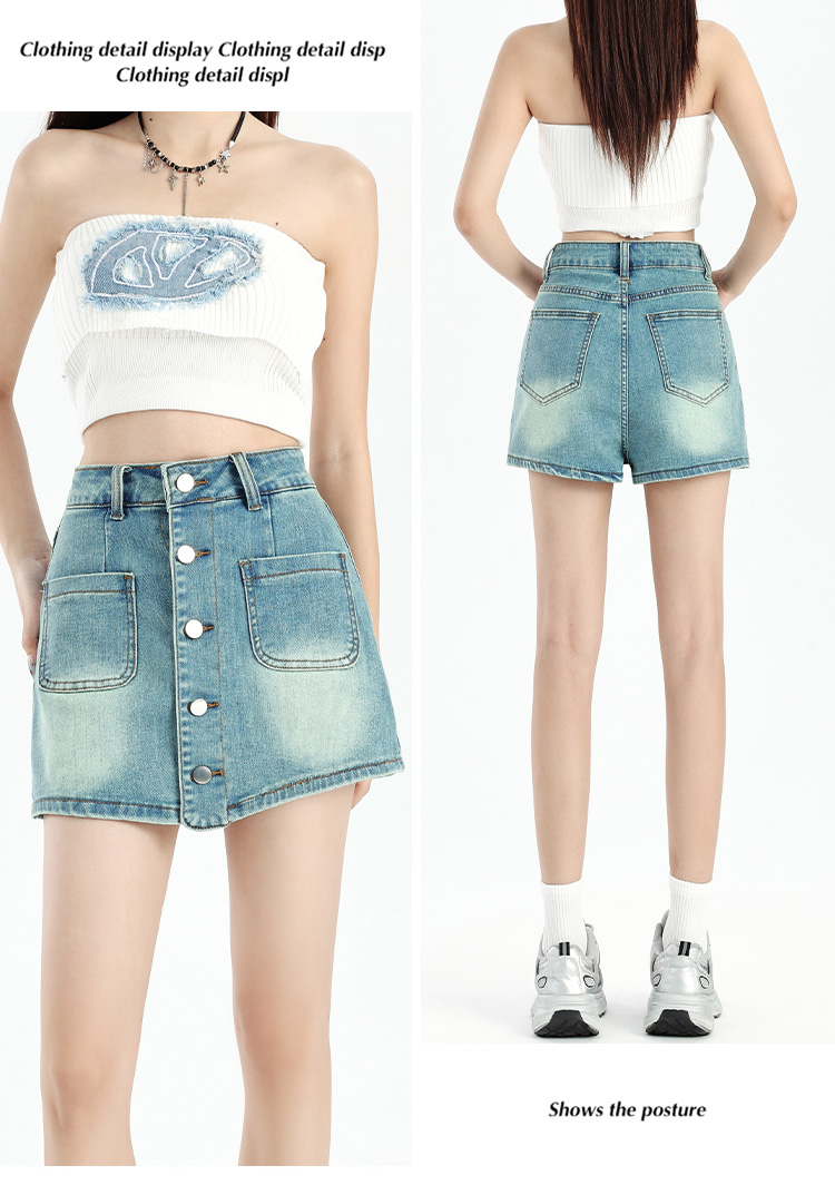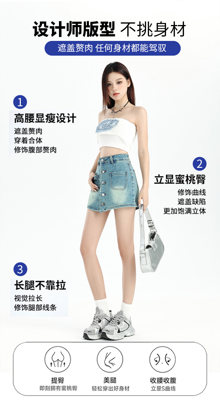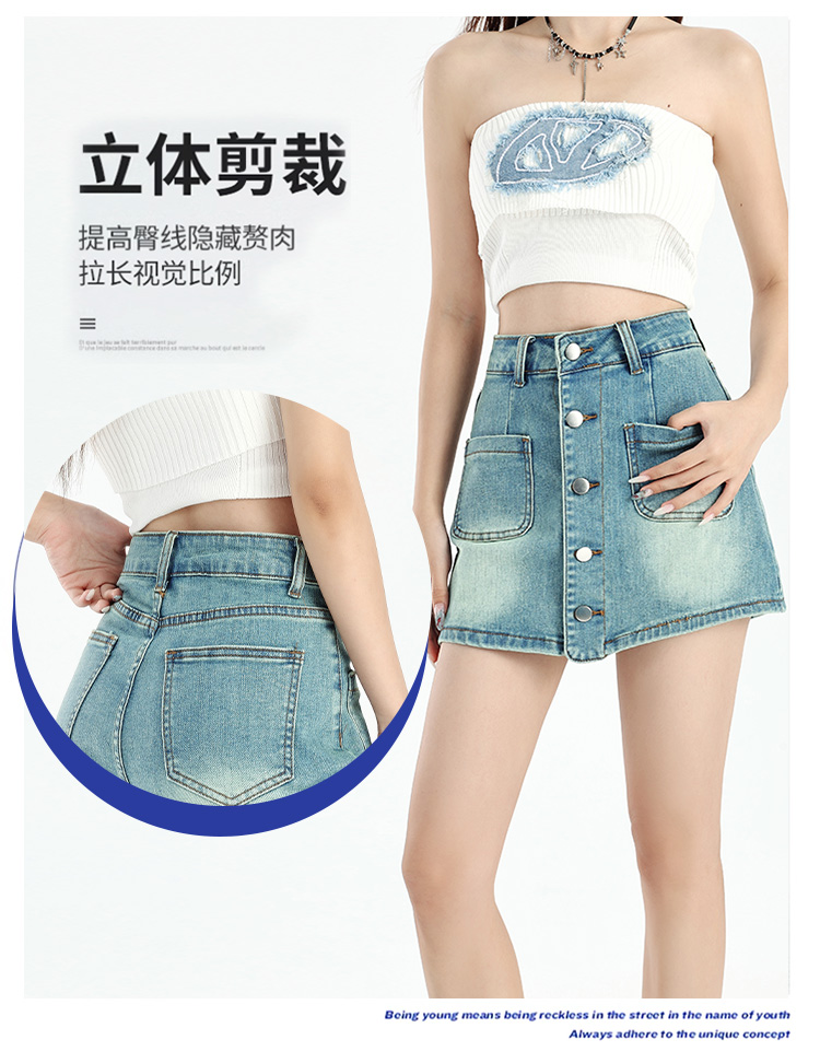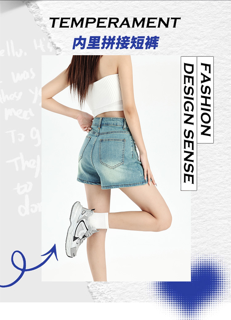 罗蒙夏季女士牛仔高腰显瘦半身裙遮肉舒适拼接短裤时尚百搭短裙