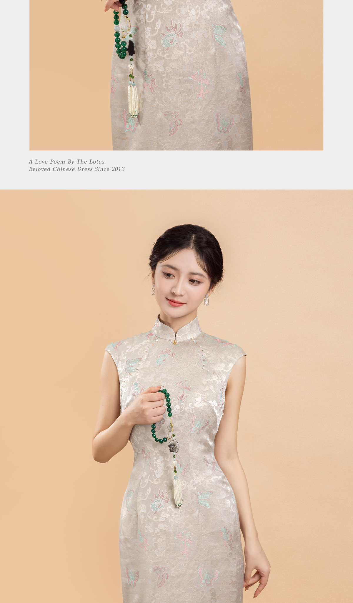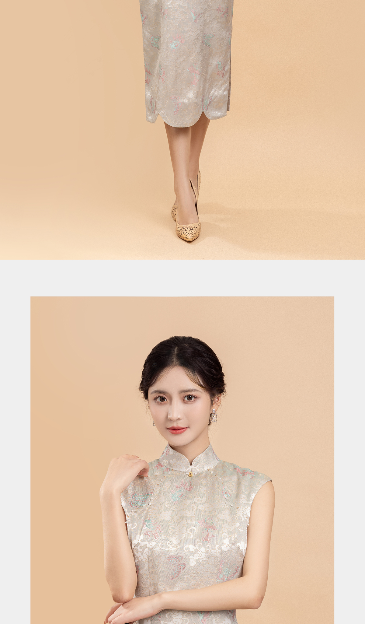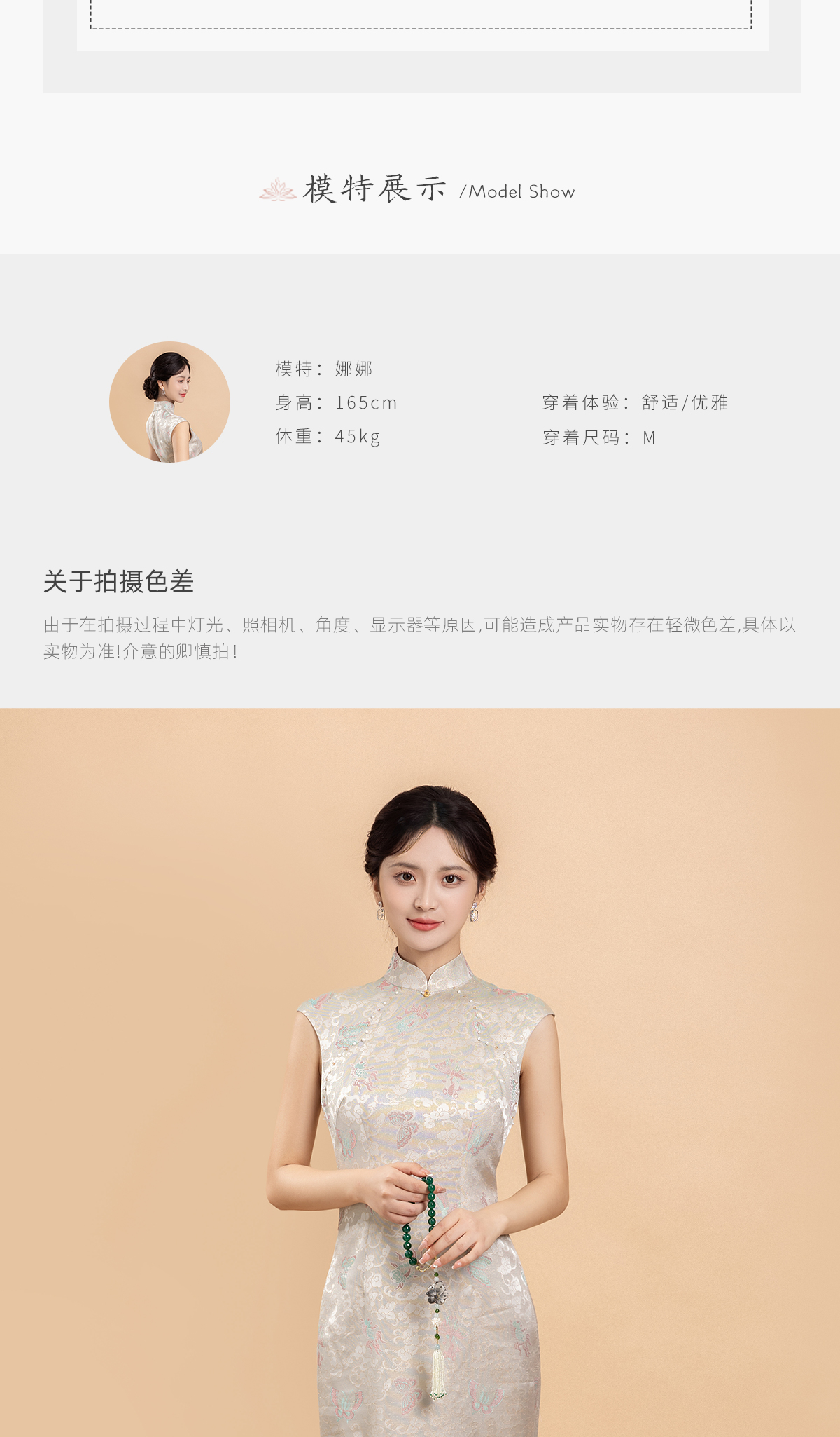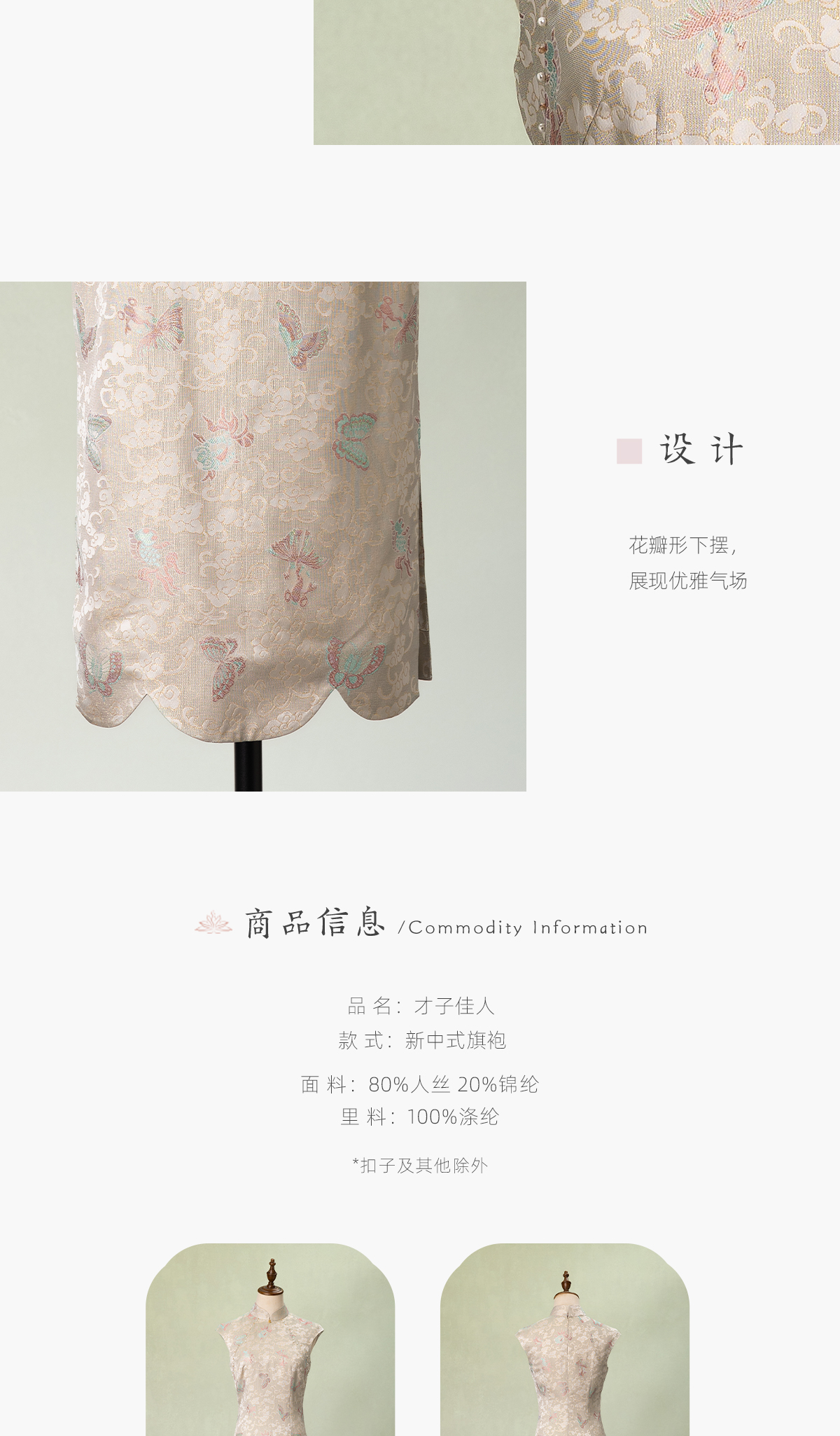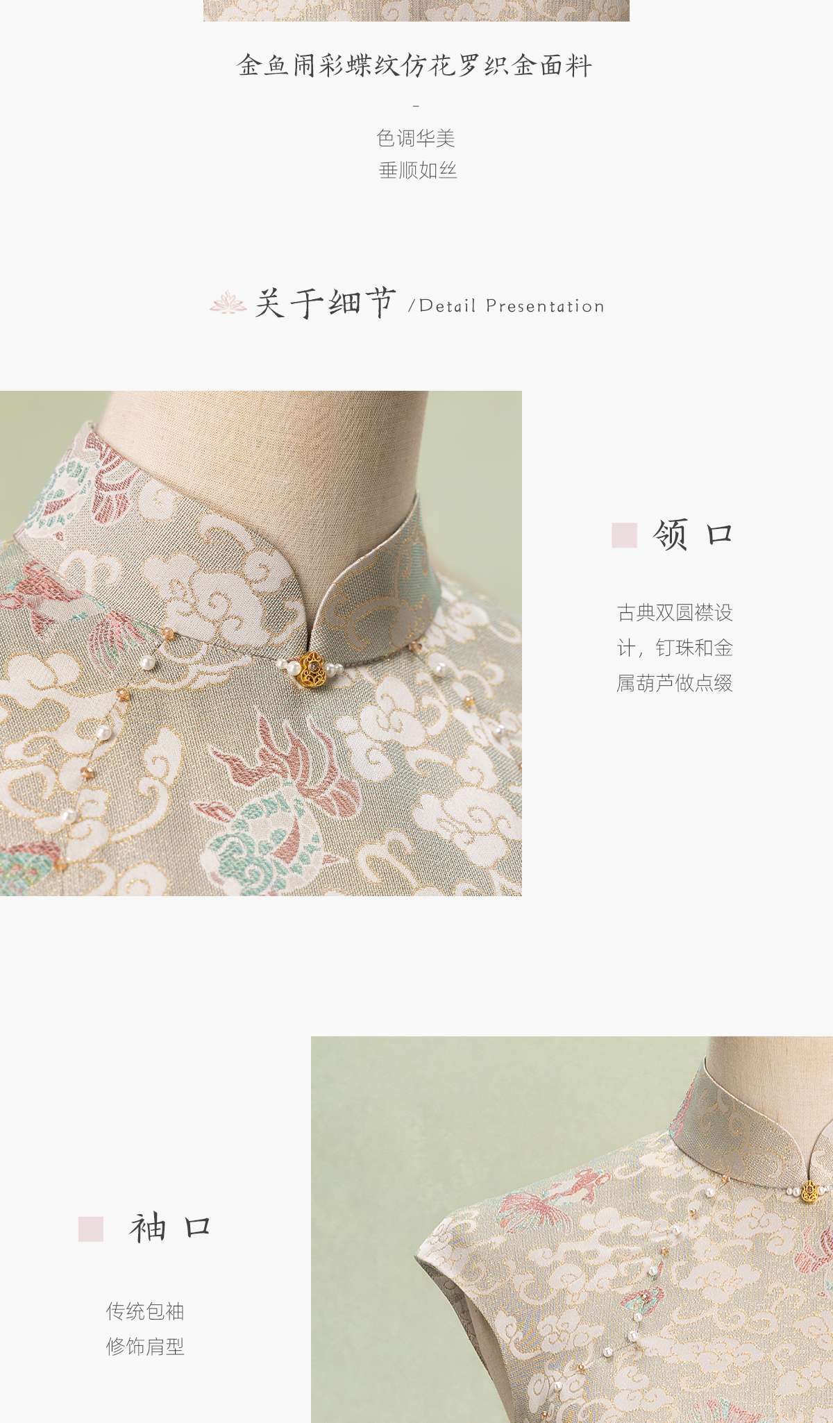 荷言GL 才子佳人 仿罗人丝织金提花初秋传统包袖旗袍新中式
