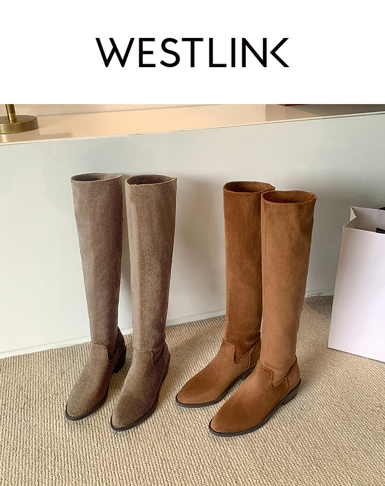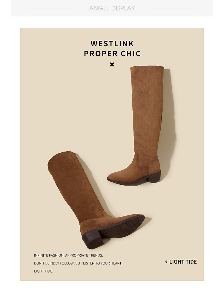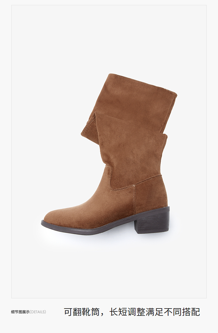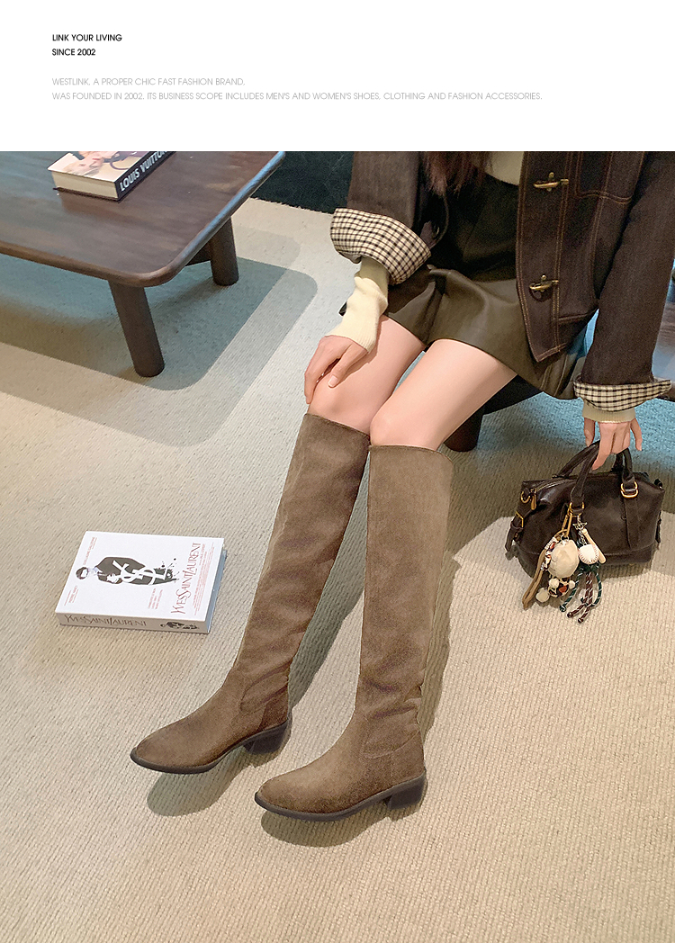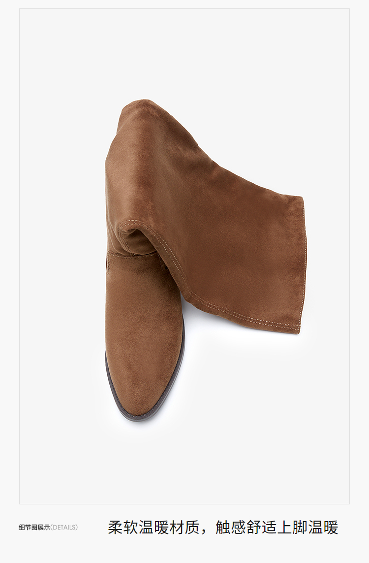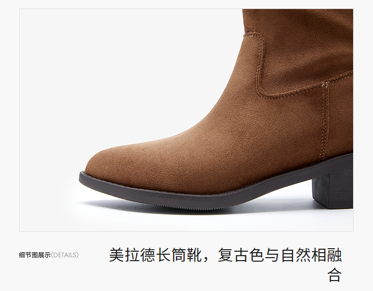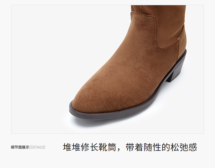 西遇美拉德长筒靴女新款秋冬显瘦西部牛仔堆堆靴粗跟高筒长靴V2157200