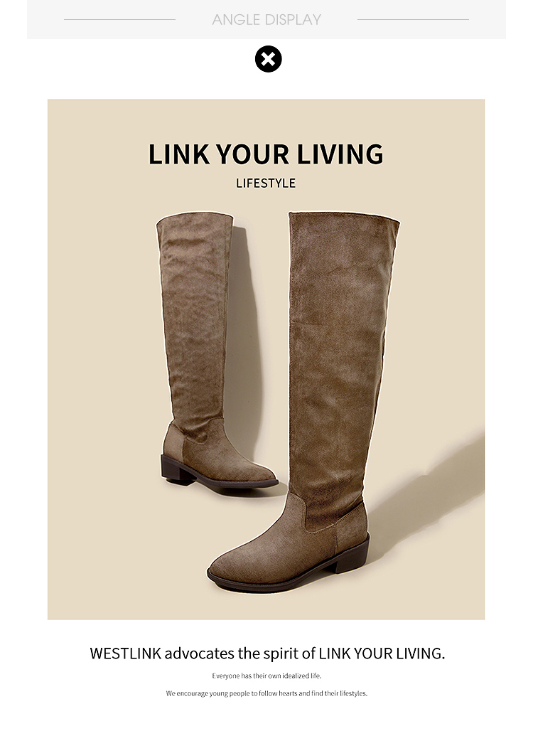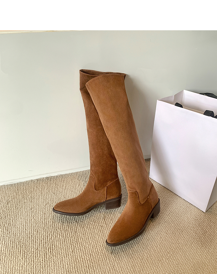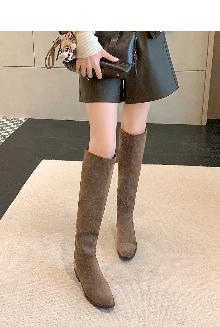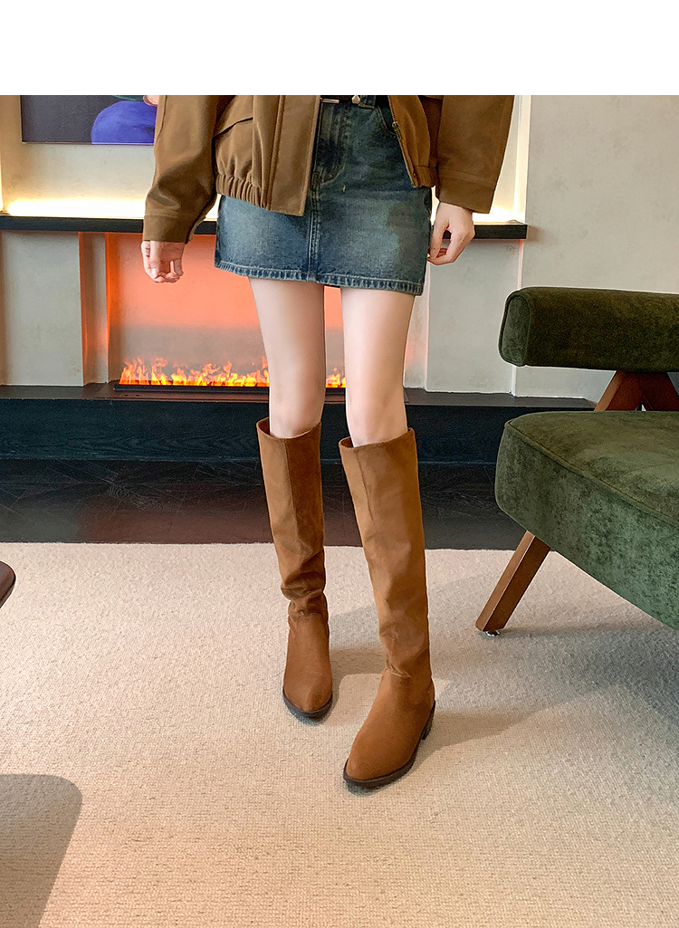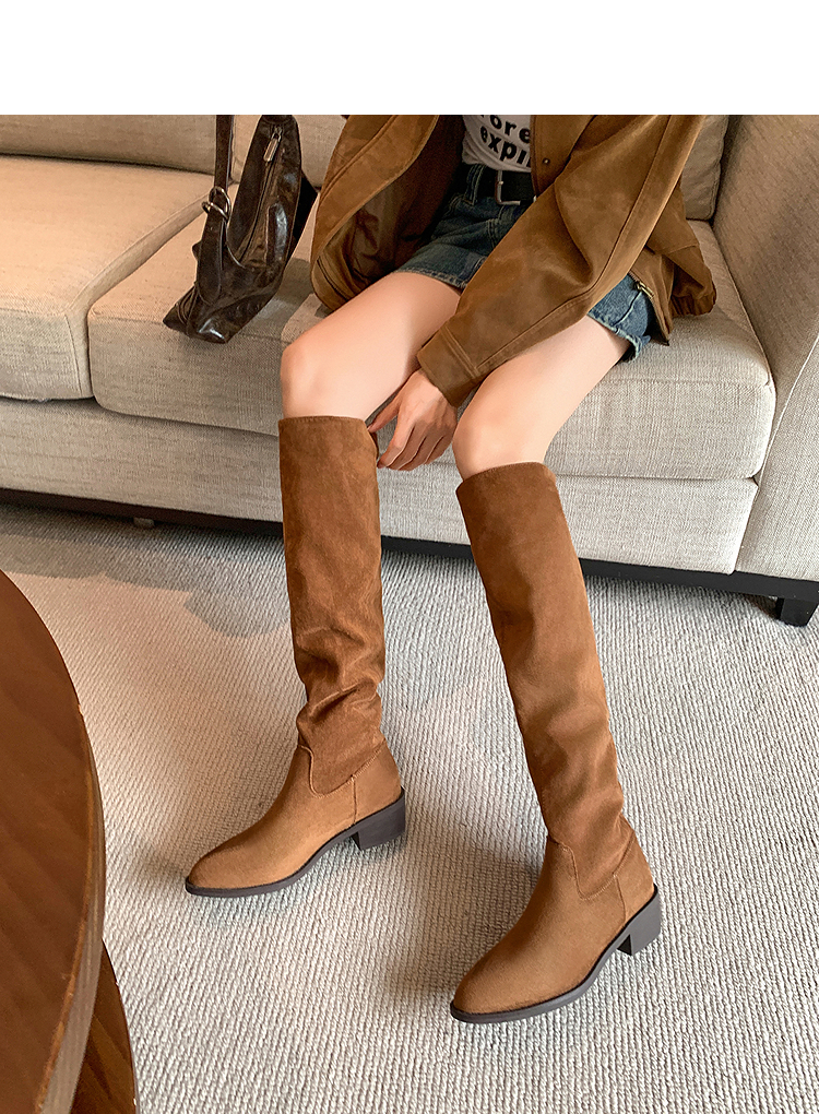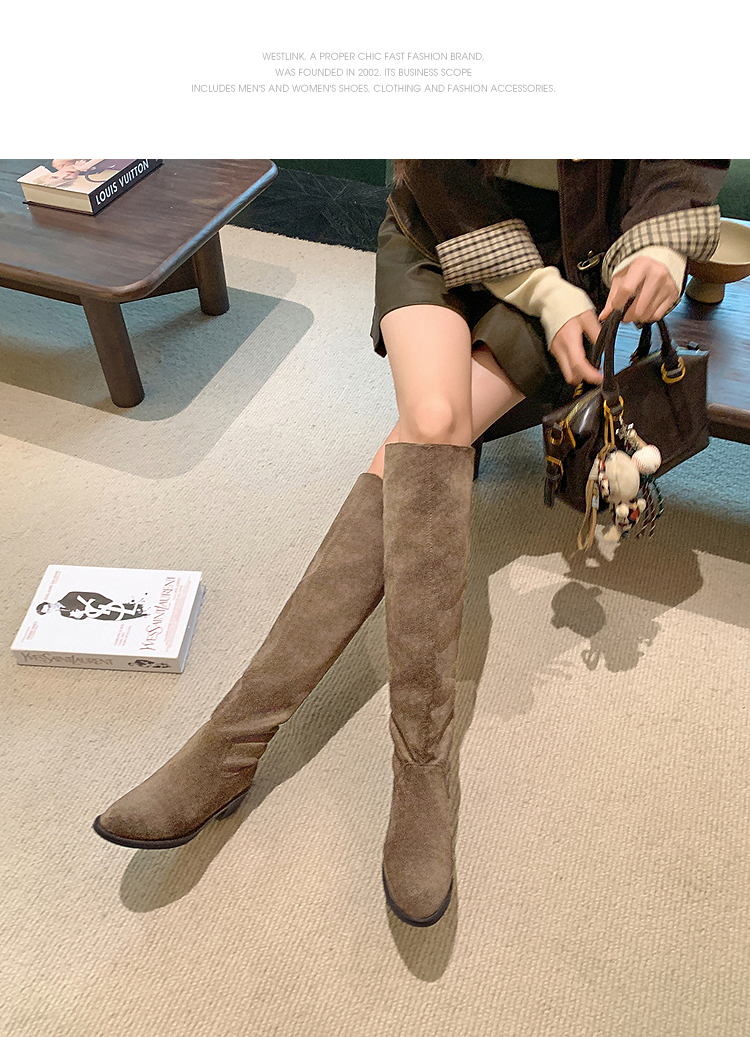 西遇美拉德长筒靴女新款秋冬显瘦西部牛仔堆堆靴粗跟高筒长靴V2157200
