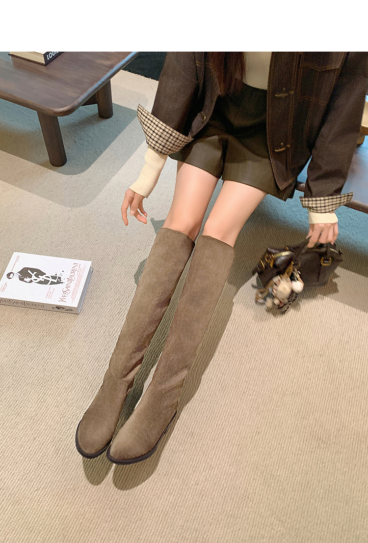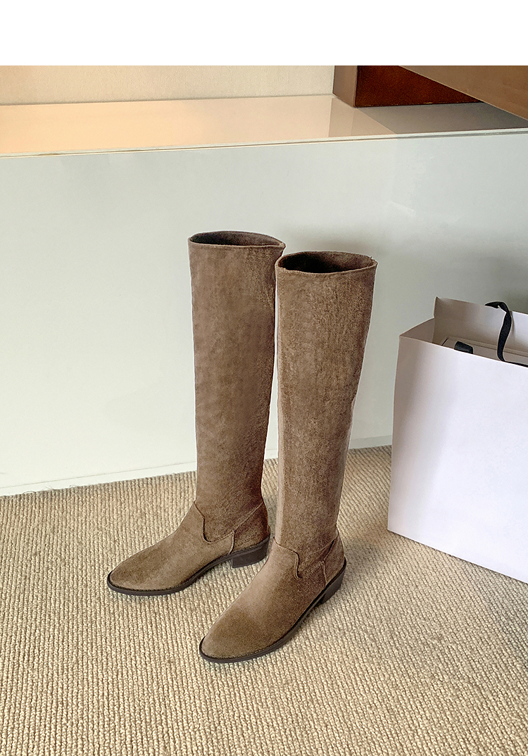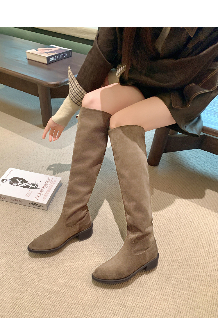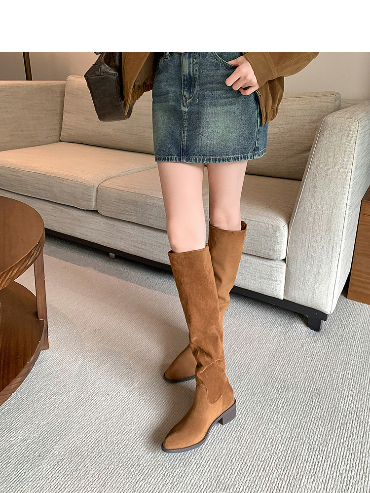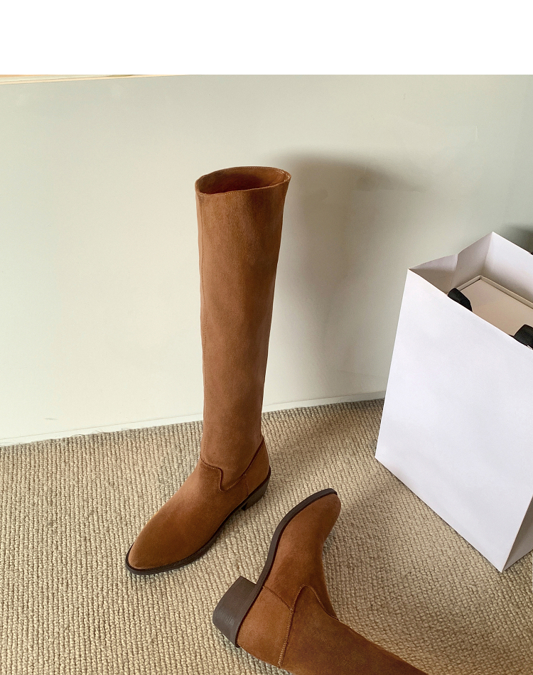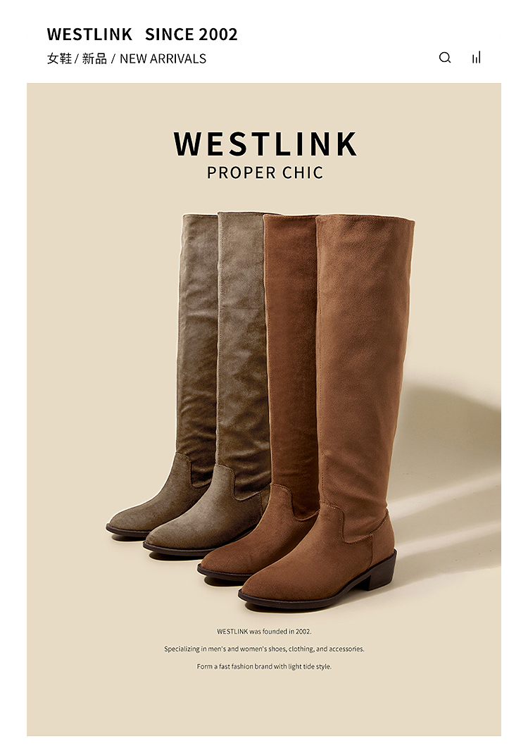 西遇美拉德长筒靴女新款秋冬显瘦西部牛仔堆堆靴粗跟高筒长靴V2157200
