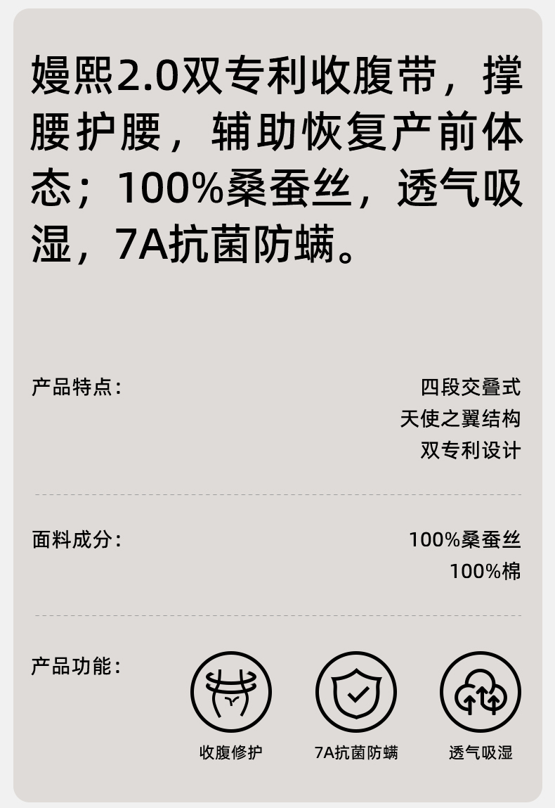 嫚熙收腹带产后专用蚕丝束缚带 2.0升级款