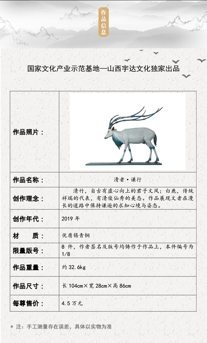 宇达青铜摆件 张有志作品《清者·谦行》限量8版 艺术摆件 长104cm