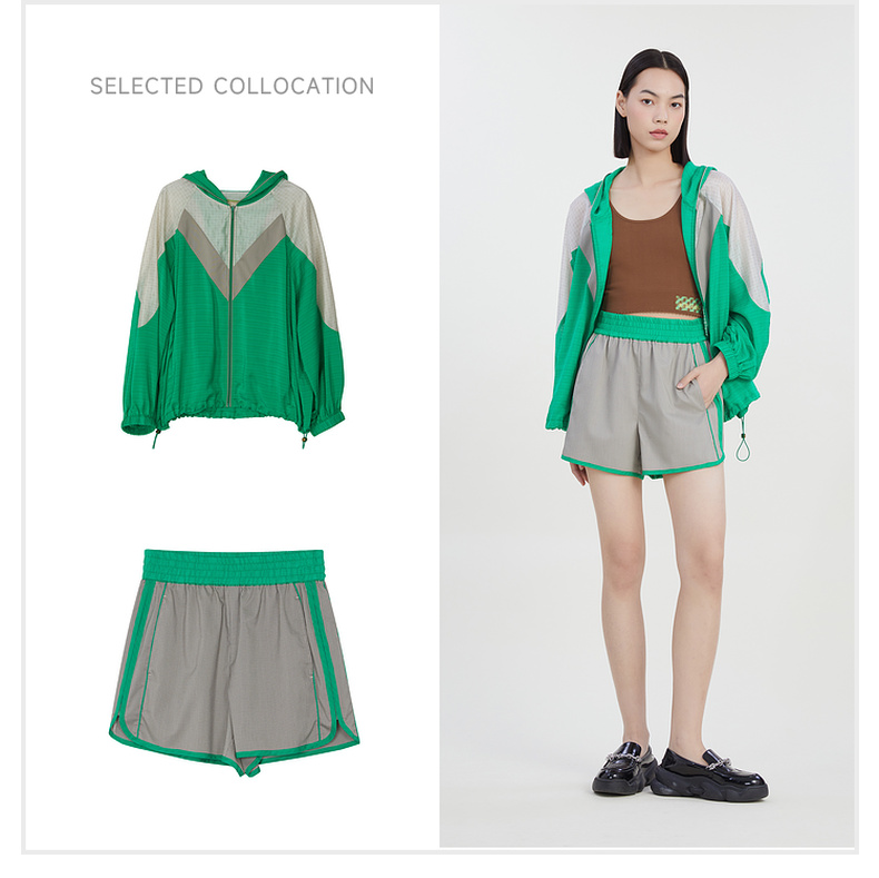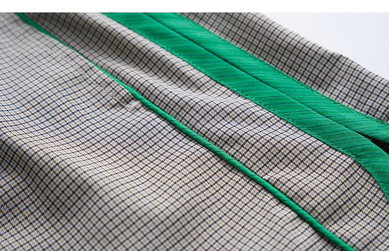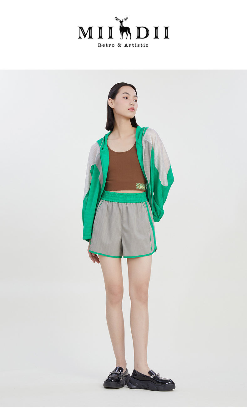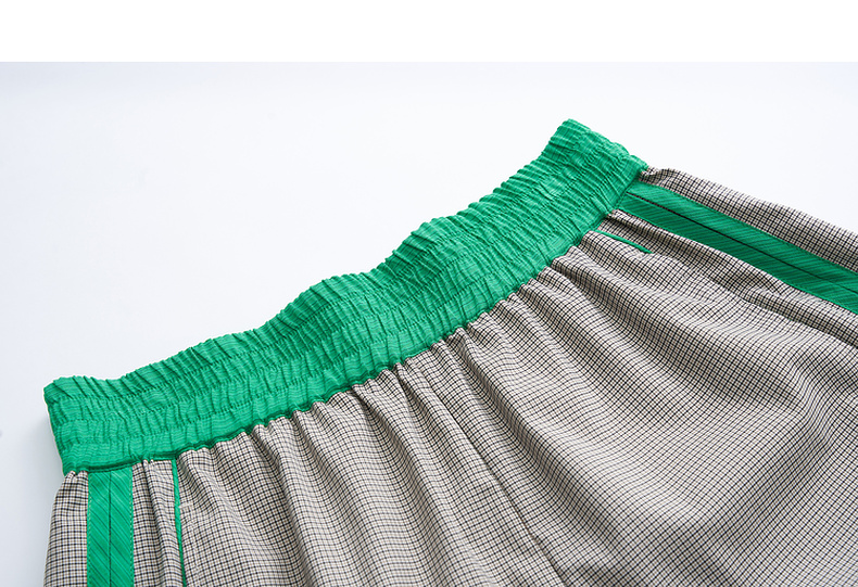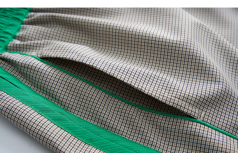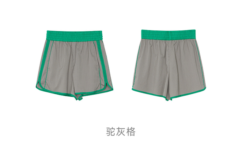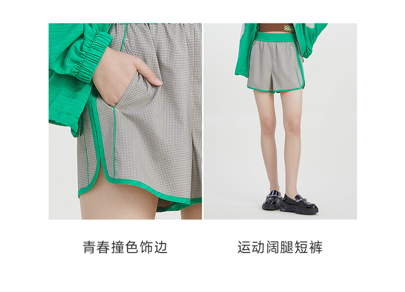 谜底复古休闲短裤女2023夏款松紧腰格纹拼接宽松阔腿裤232MK0611