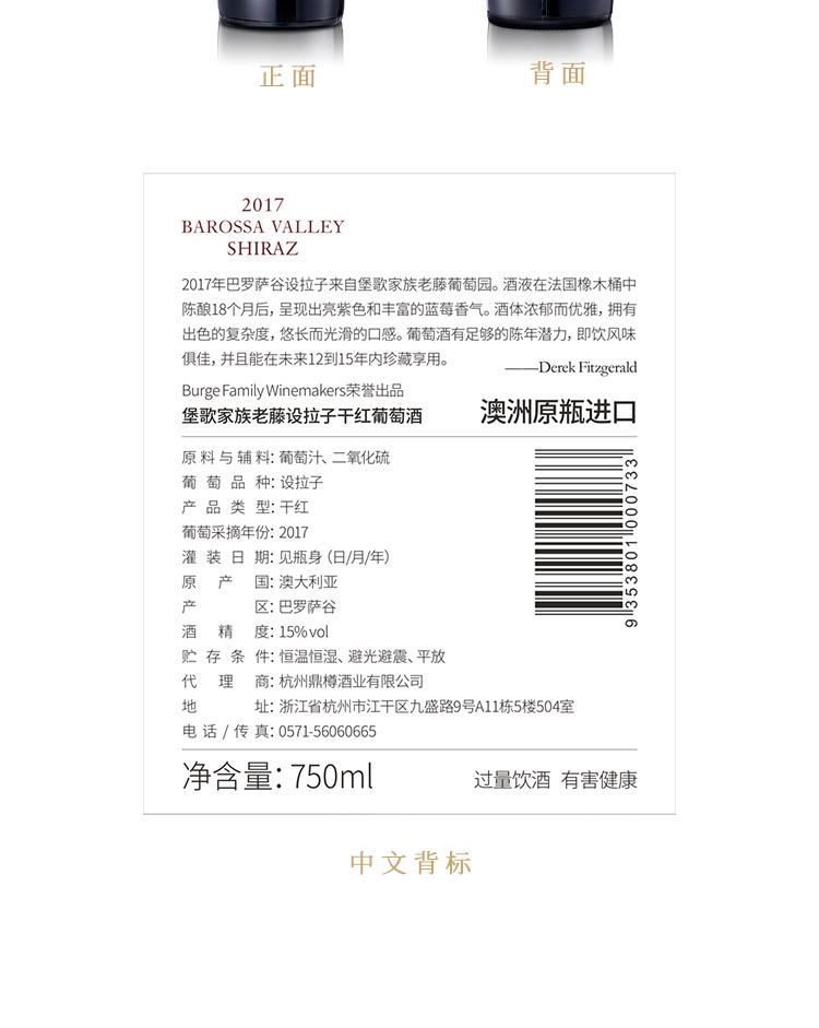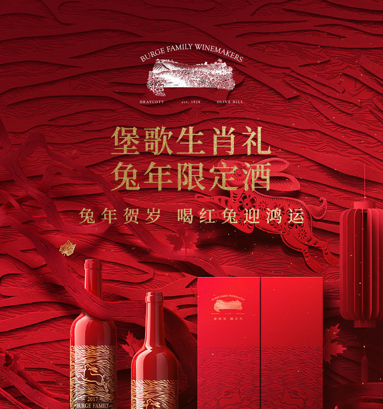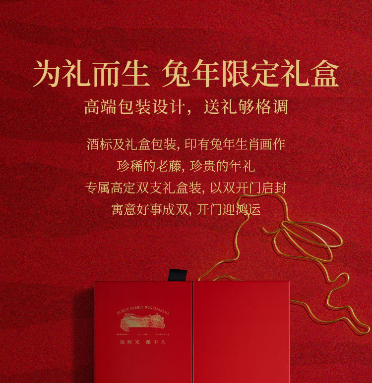 Burge Family 堡歌家族 金牌老藤设拉子干红兔年生肖酒双支礼盒
