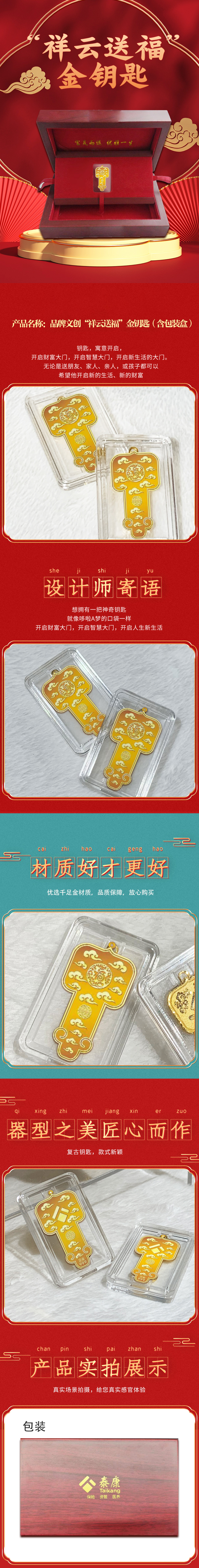 泰康定制足金“祥云送福”金钥匙 约10g(贵金属不退不换)参考实时金价多退少补