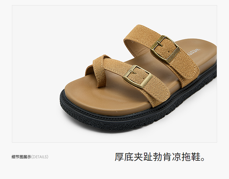 西遇厚底勃肯凉拖鞋女外穿夏季2026新款平底夹脚海边超火沙滩鞋V0066414