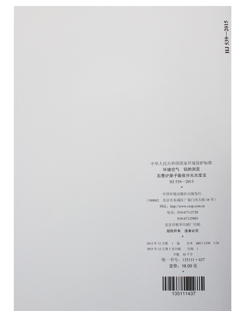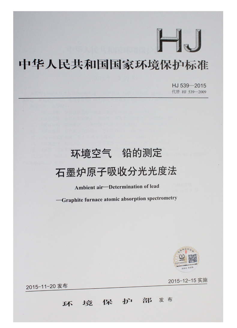 HJ 539-2015(代替 HJ 539-2009)环境空气铅的测定石墨炉原子吸收分光光度法