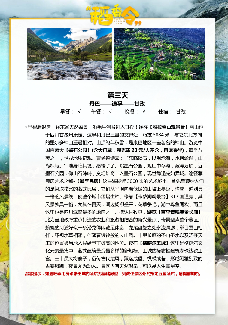 大美甘孜稻城亚丁--深度川西大环线8日游
