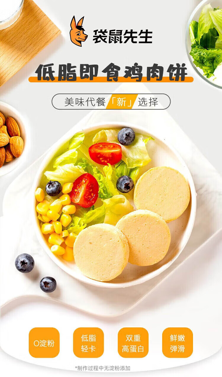 袋鼠先生 即食鸡胸肉饼健身低脂高蛋白真空速食食品开袋即食代餐轻食零食 【鸡胸肉饼】60g*3袋