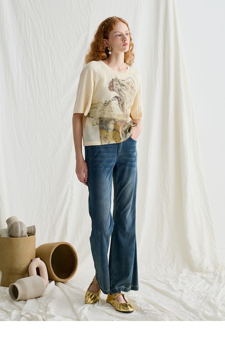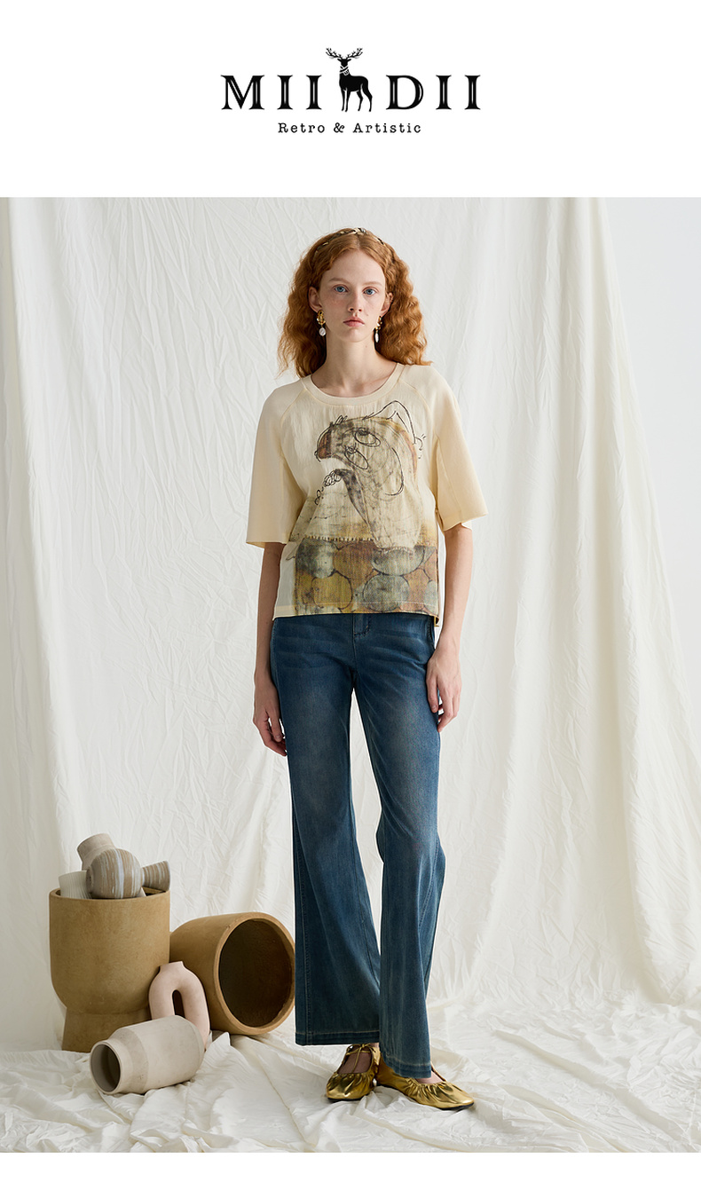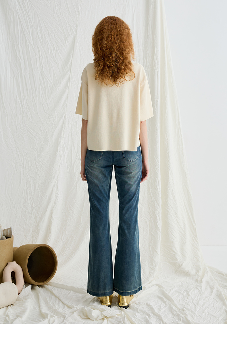 谜底针织衫短袖女2025夏季新品复古文艺宽松H型短毛衣252MZ0892
