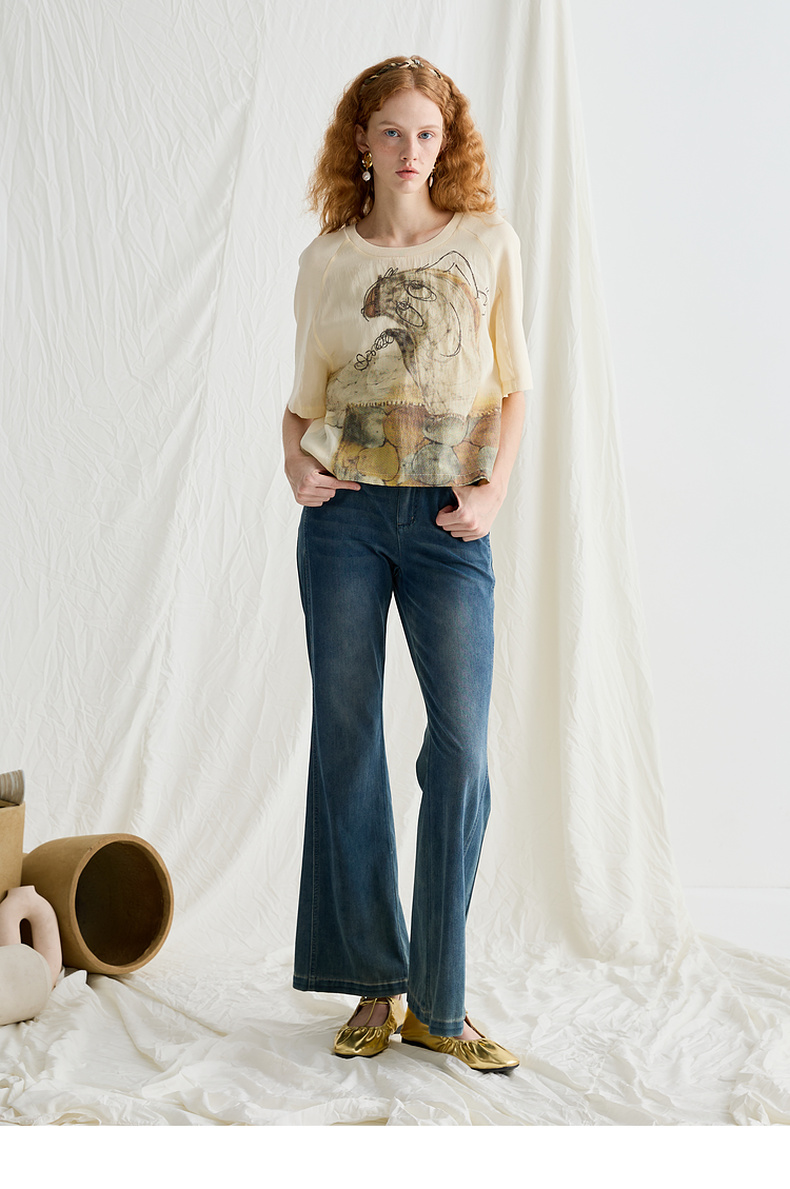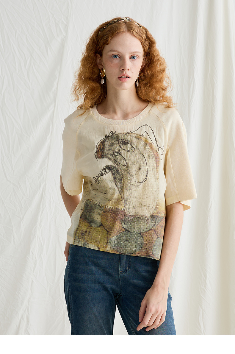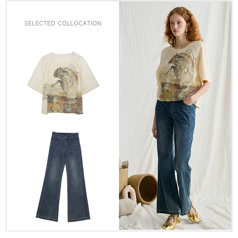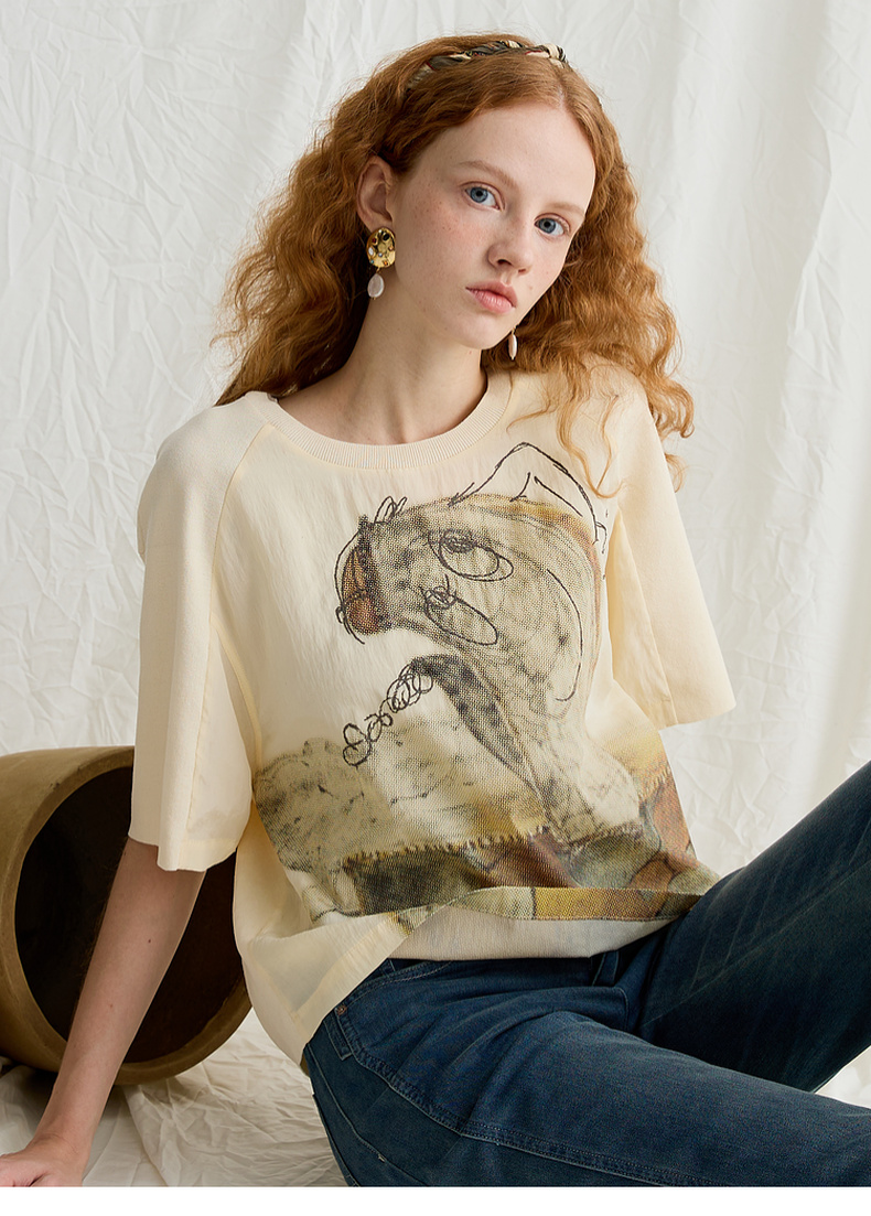 谜底针织衫短袖女2025夏季新品复古文艺宽松H型短毛衣252MZ0892