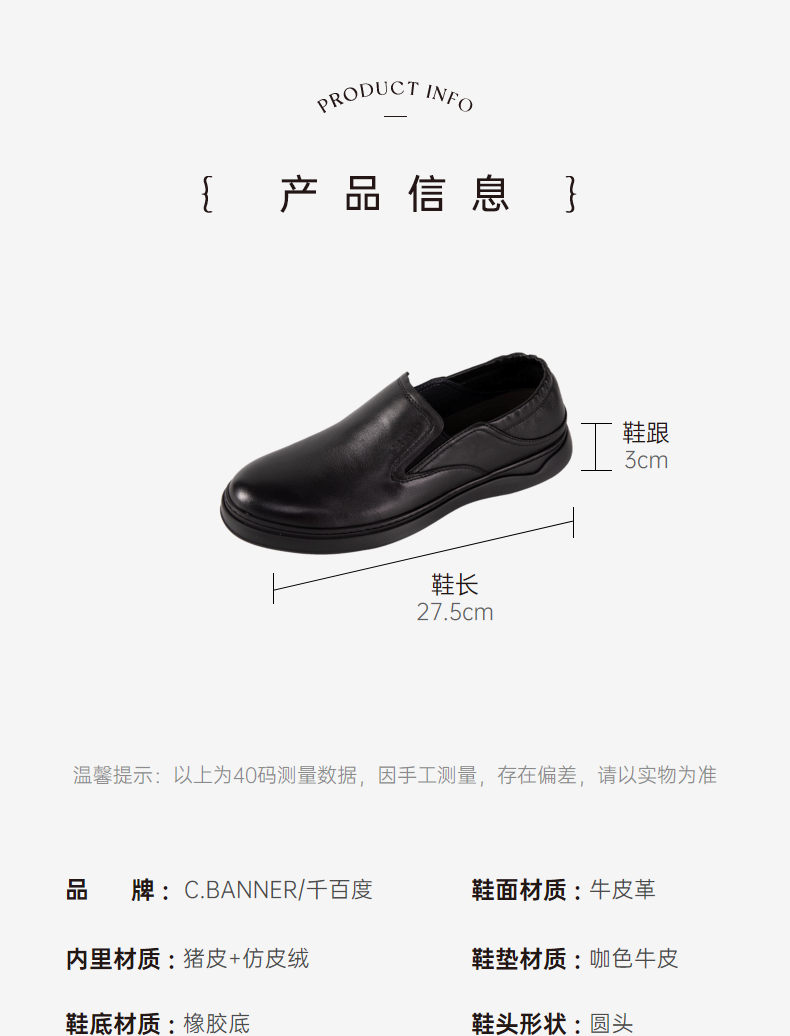 千百度厚底圆头玛丽珍鞋女羊皮小皮鞋乐福鞋浅口单鞋A25468962