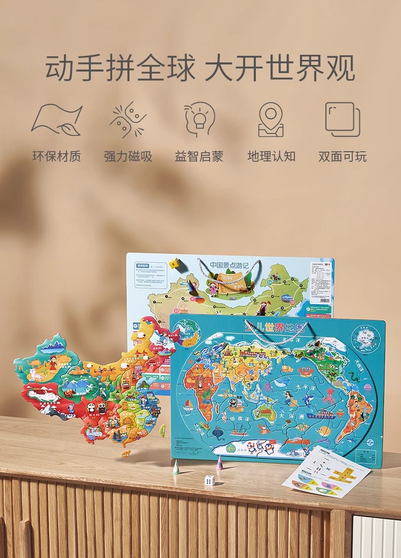 科巢磁力中国和世界地图拼图3到6岁以上初中小学生益智玩具专用儿童