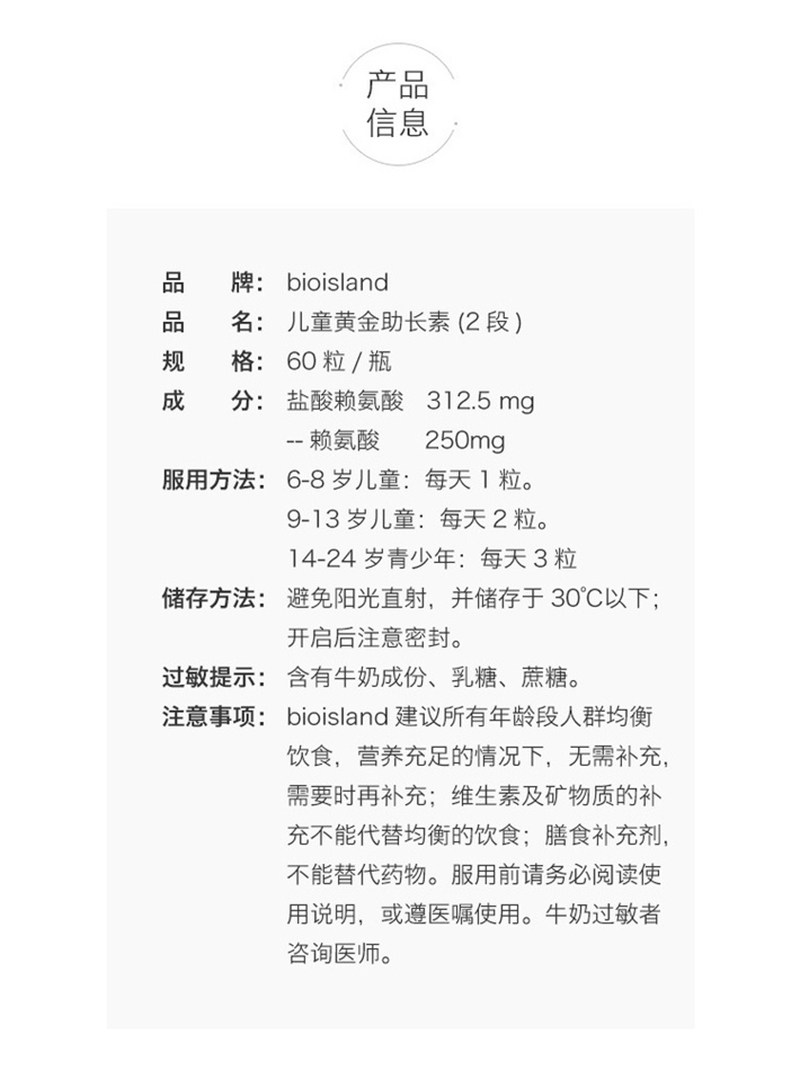 澳洲Bio Island 儿童青少年助长素2段黑加仑味60粒