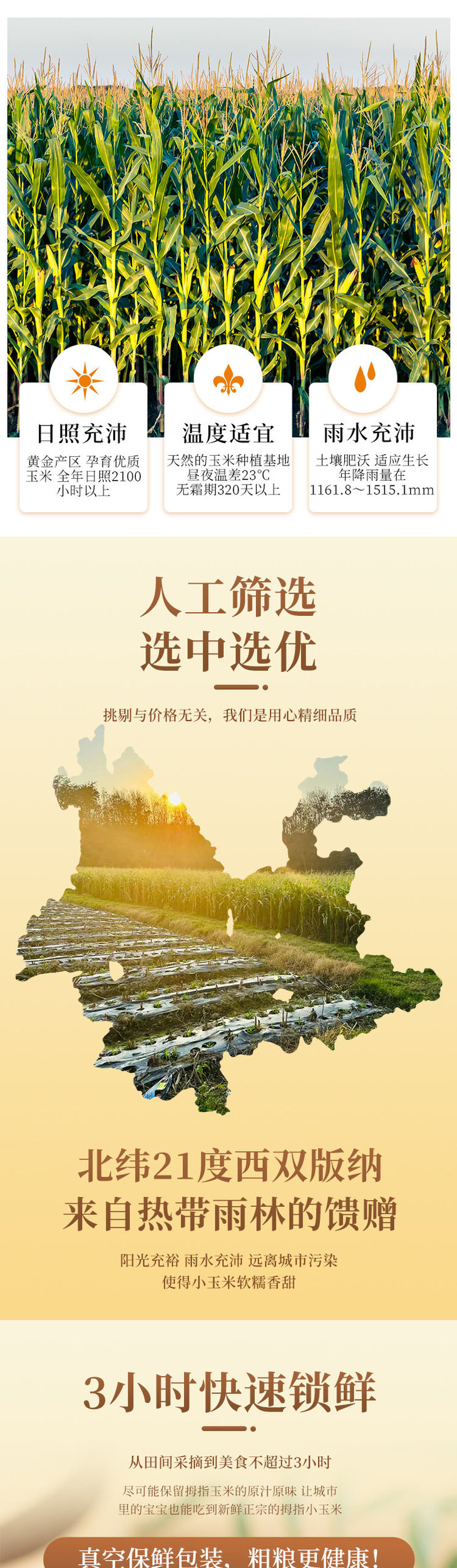 【产品规格】云南 拇指玉米。(每箱都是独立的包装,如购买多件分多个包裹发出,可能会前后陆续到货)。