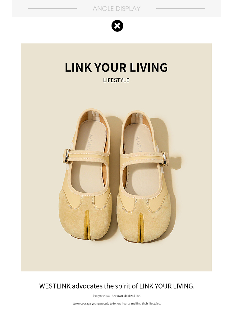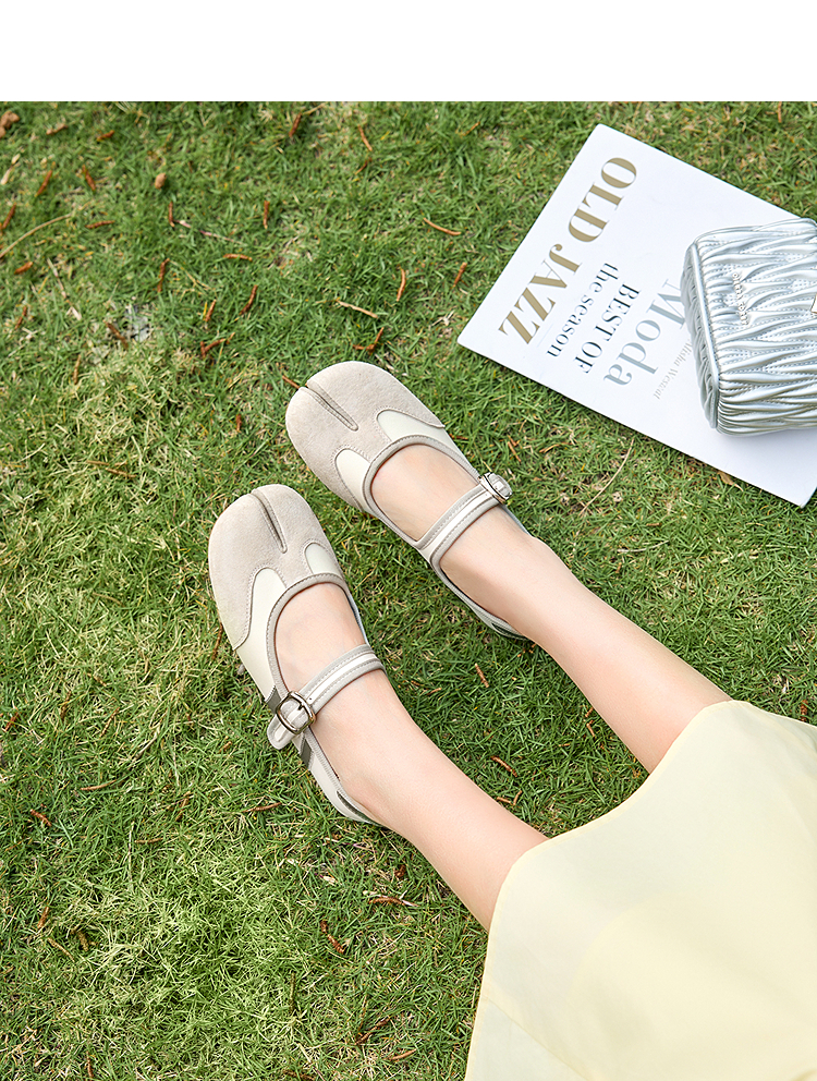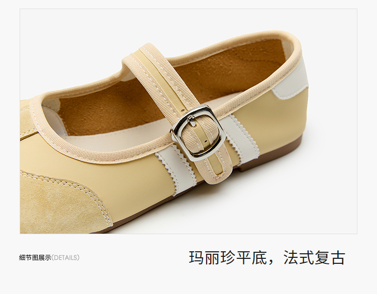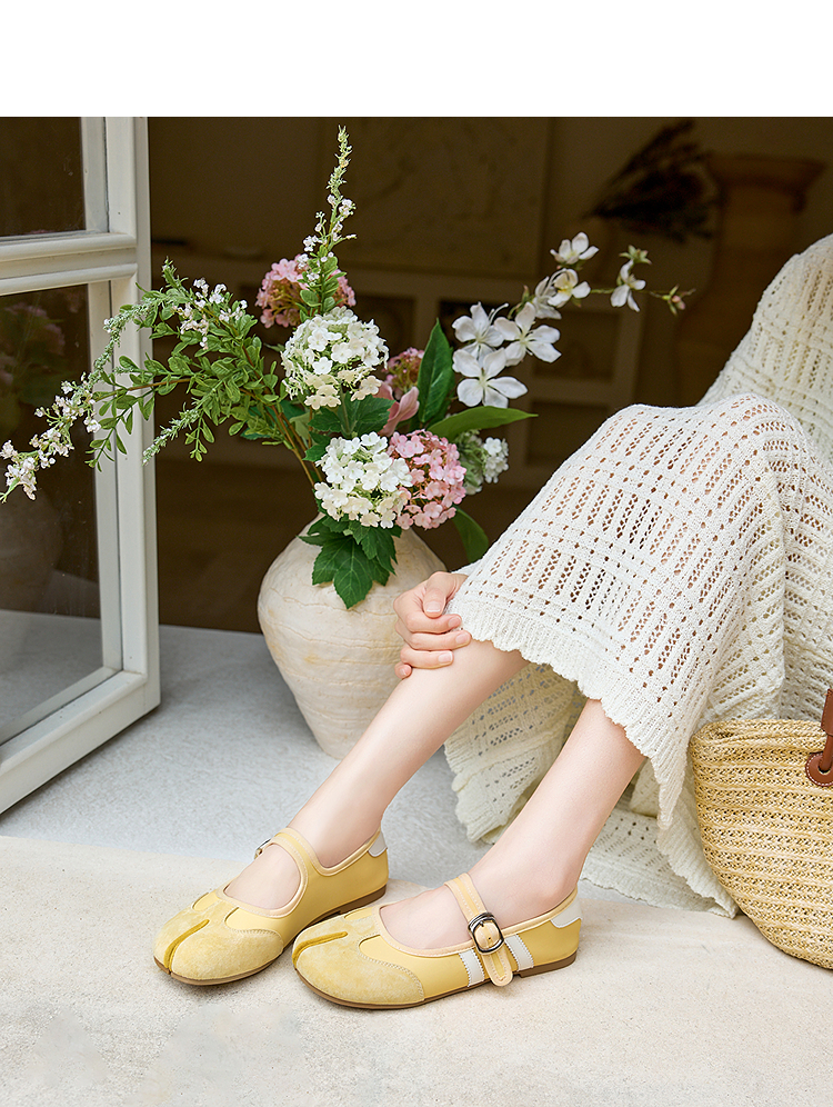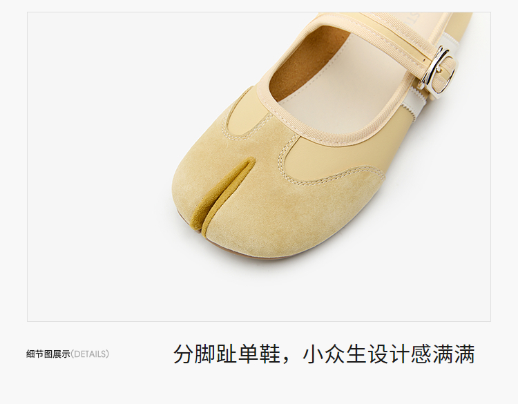 西遇平底分趾单鞋女新款春夏复古丑萌猪蹄鞋黄色软底玛丽珍鞋V0156581