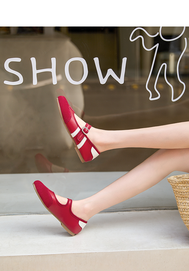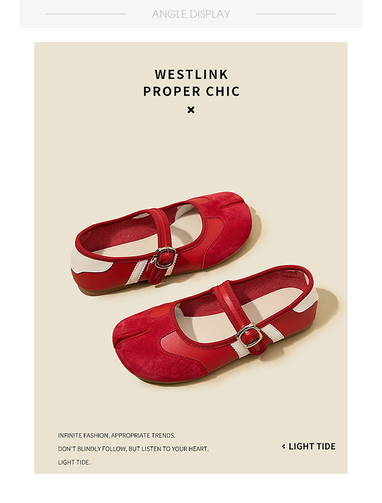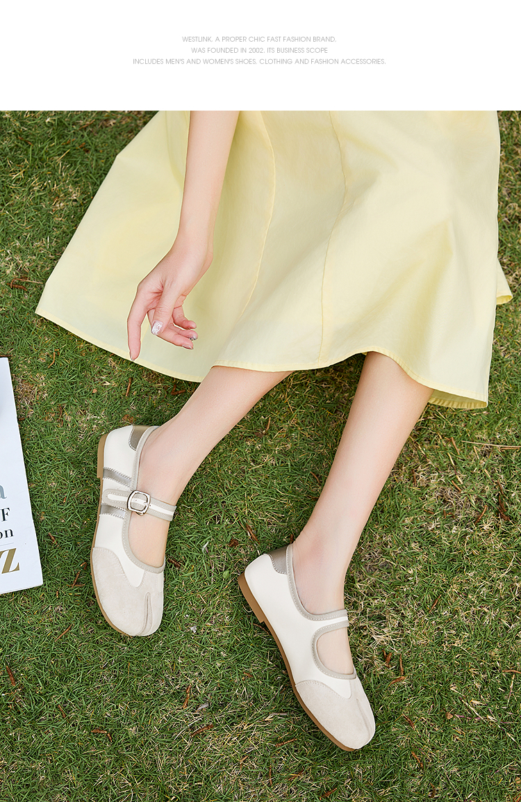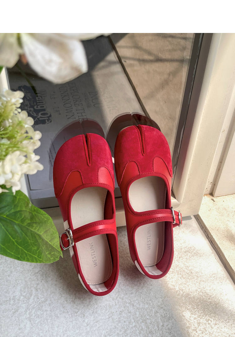 西遇平底分趾单鞋女新款春夏复古丑萌猪蹄鞋黄色软底玛丽珍鞋V0156581