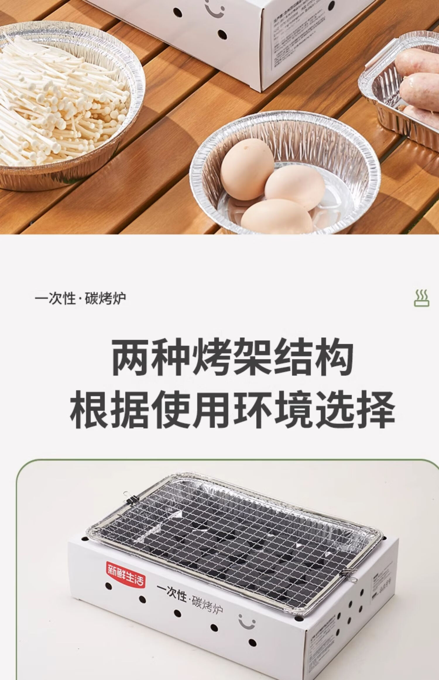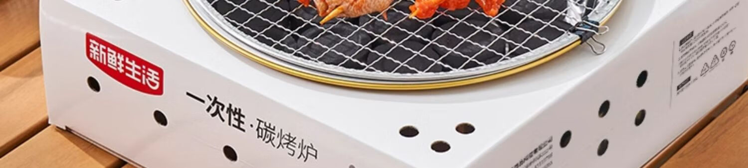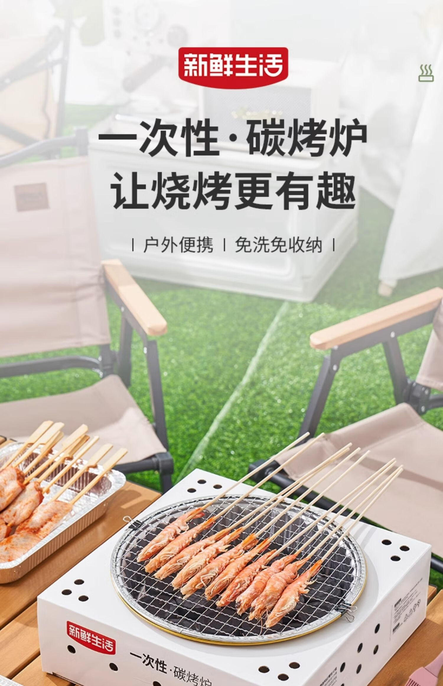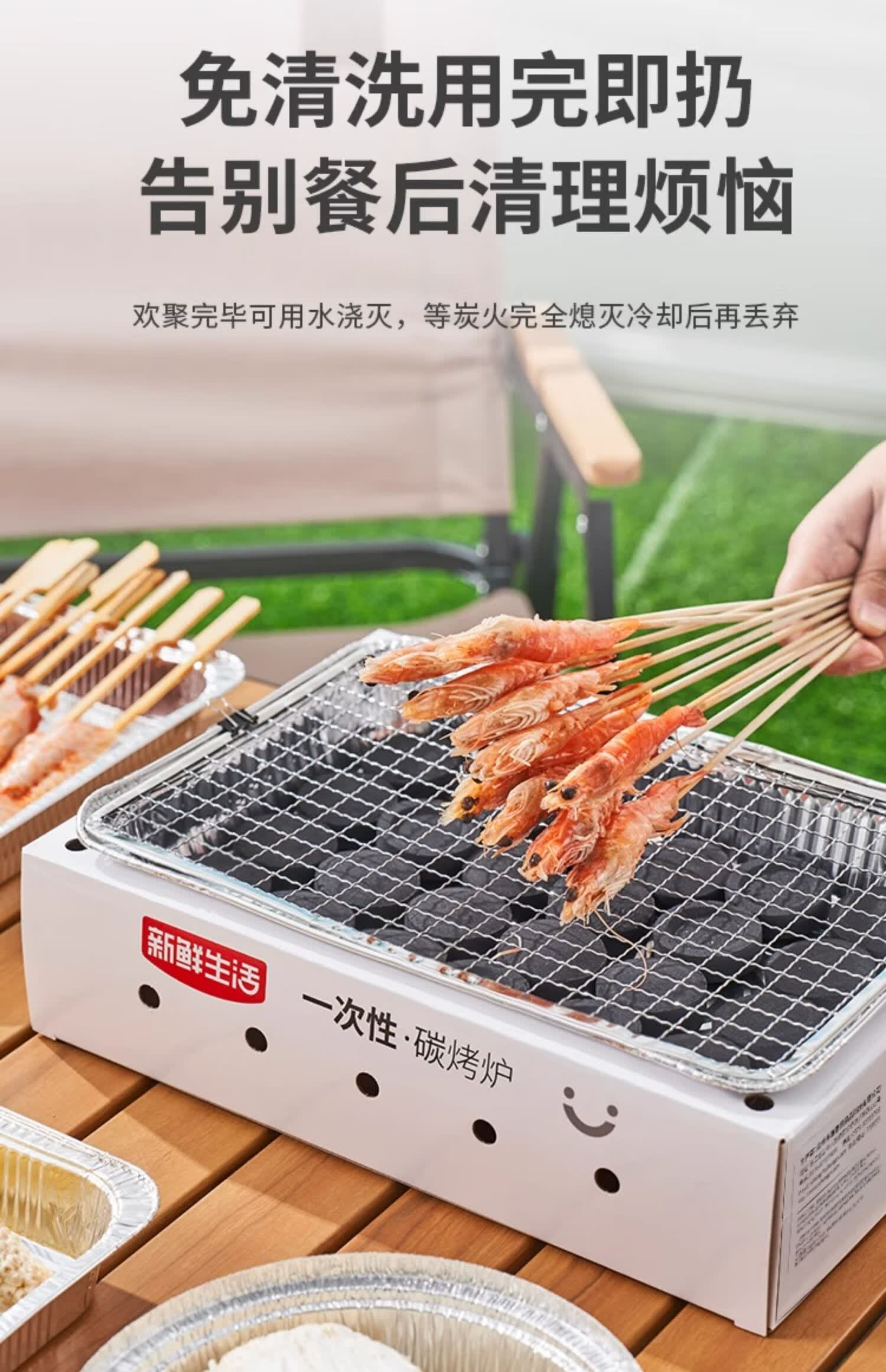 新鲜生活一次性烧烤炉套装户外庭院聚会含木炭便携式家用烧烤架(方形)