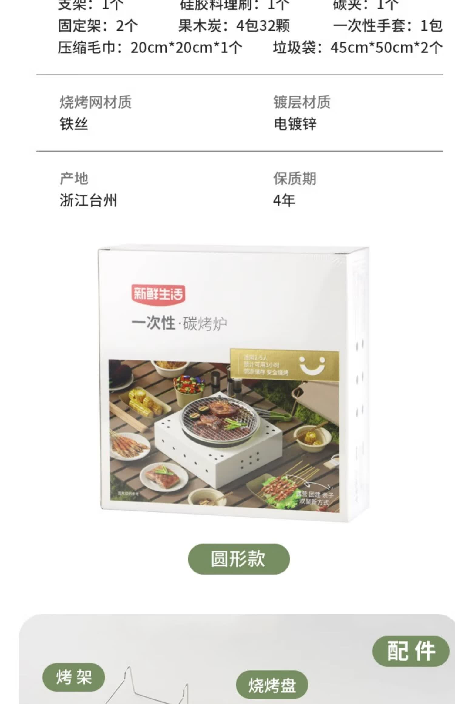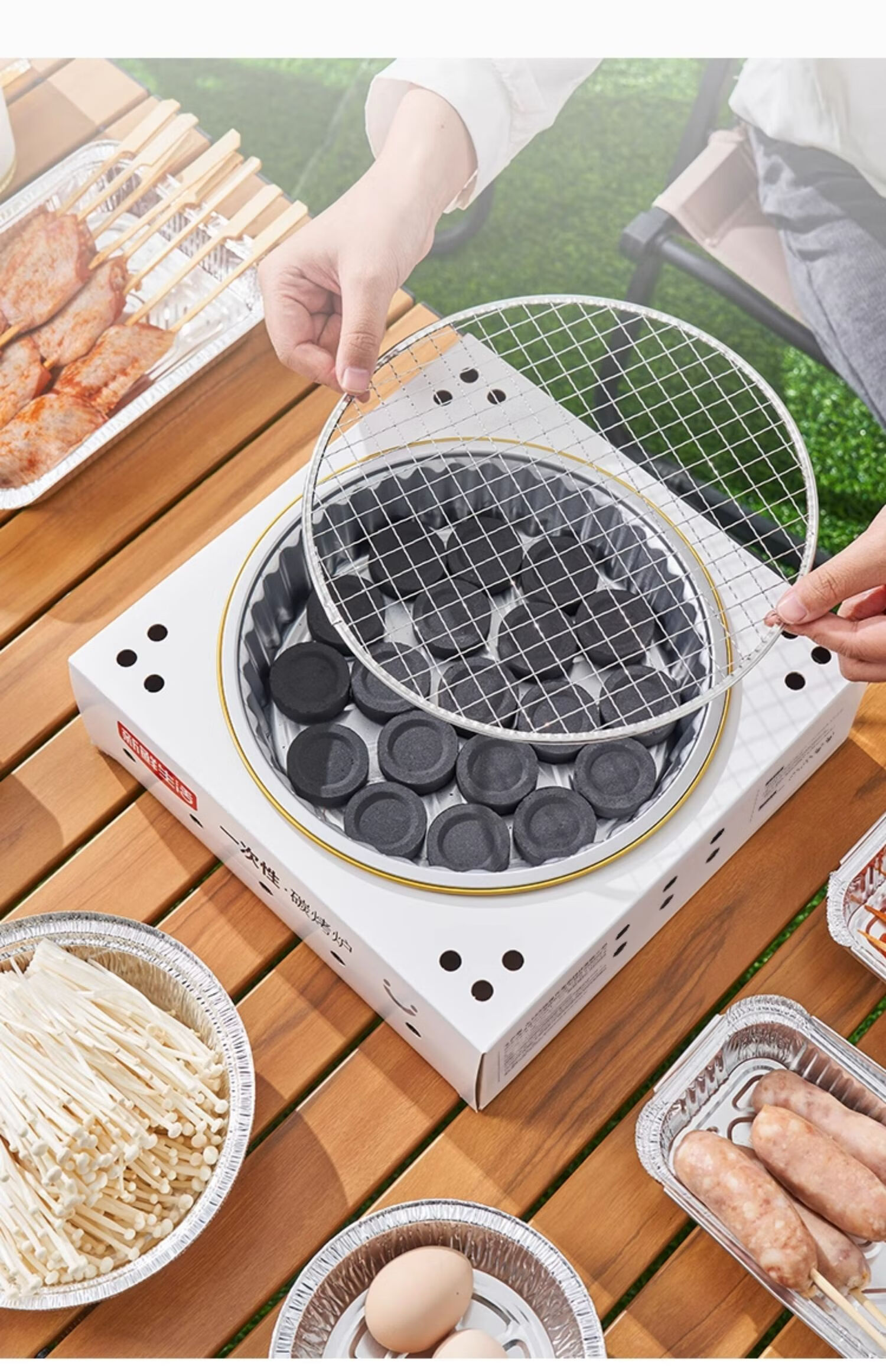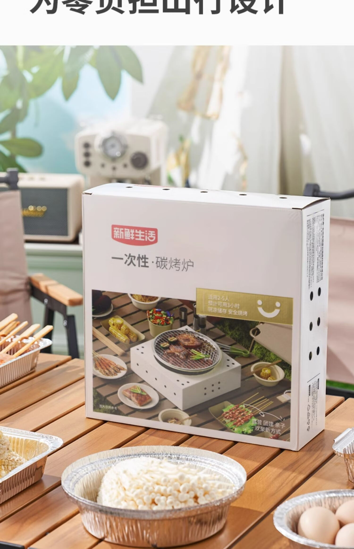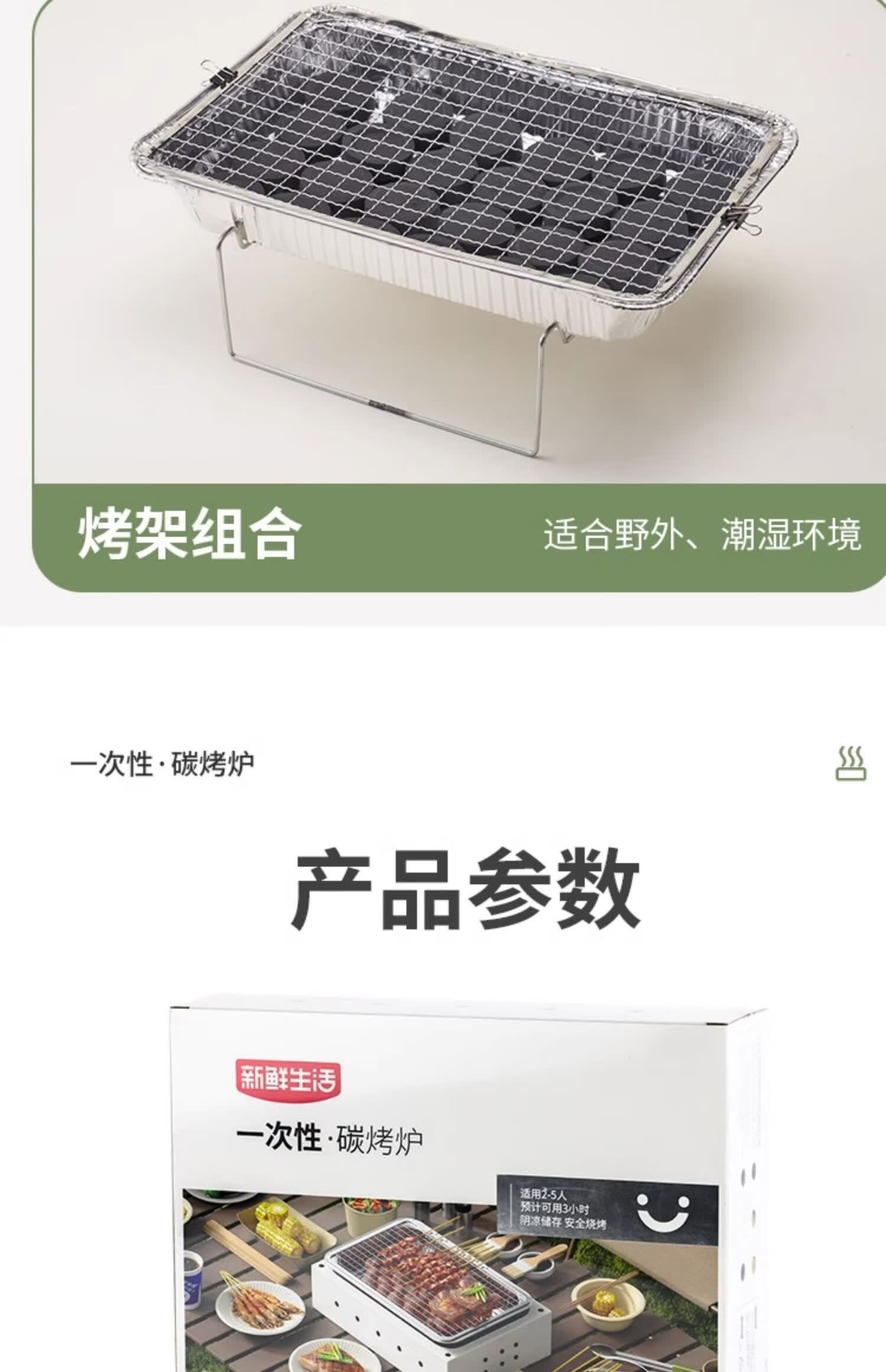 新鲜生活一次性烧烤炉套装户外庭院聚会含木炭便携式家用烧烤架(方形)