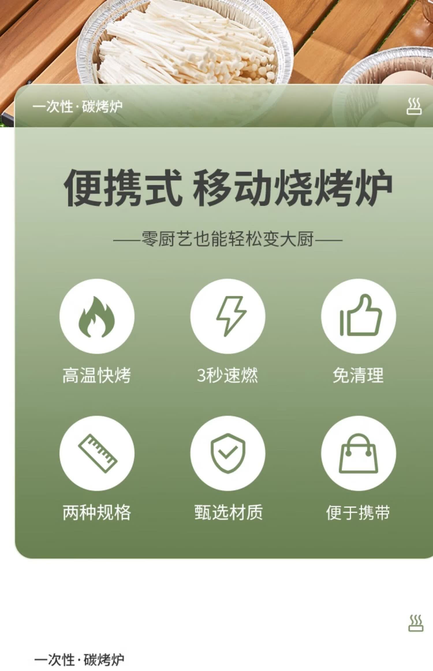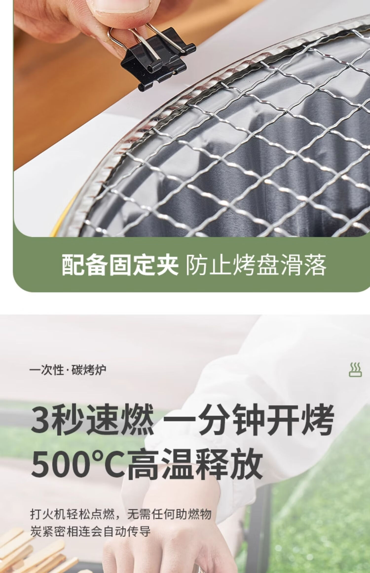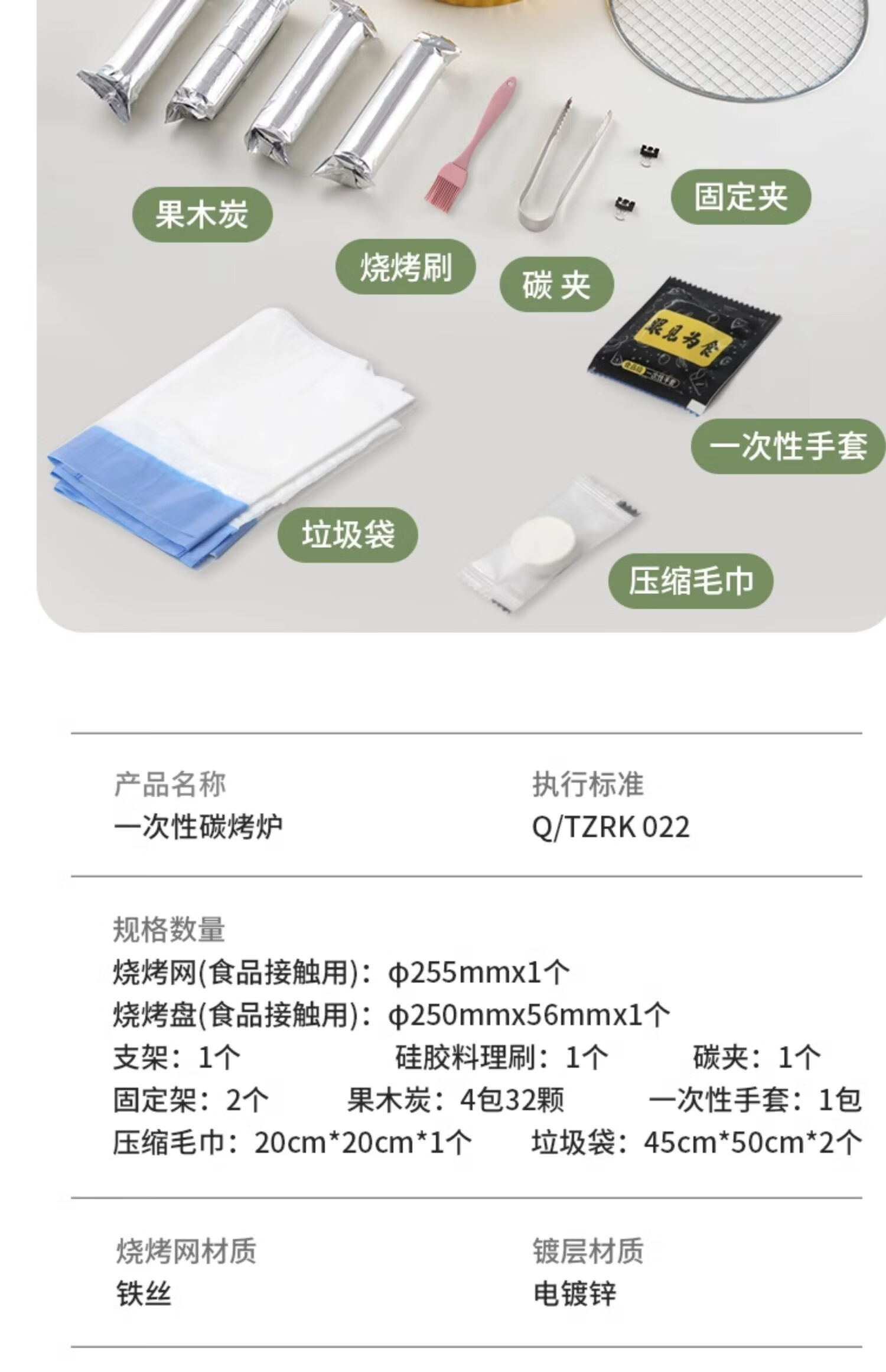新鲜生活一次性烧烤炉套装户外庭院聚会含木炭便携式家用烧烤架(方形)