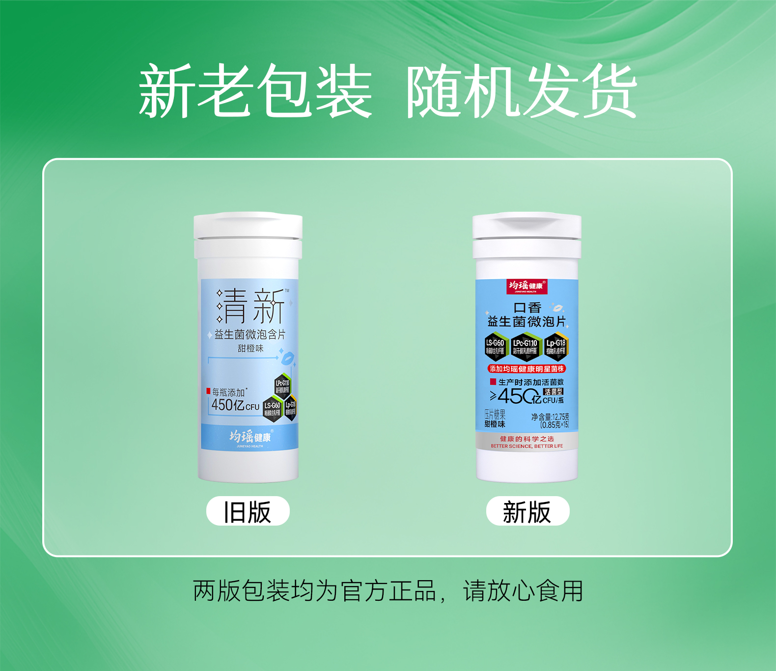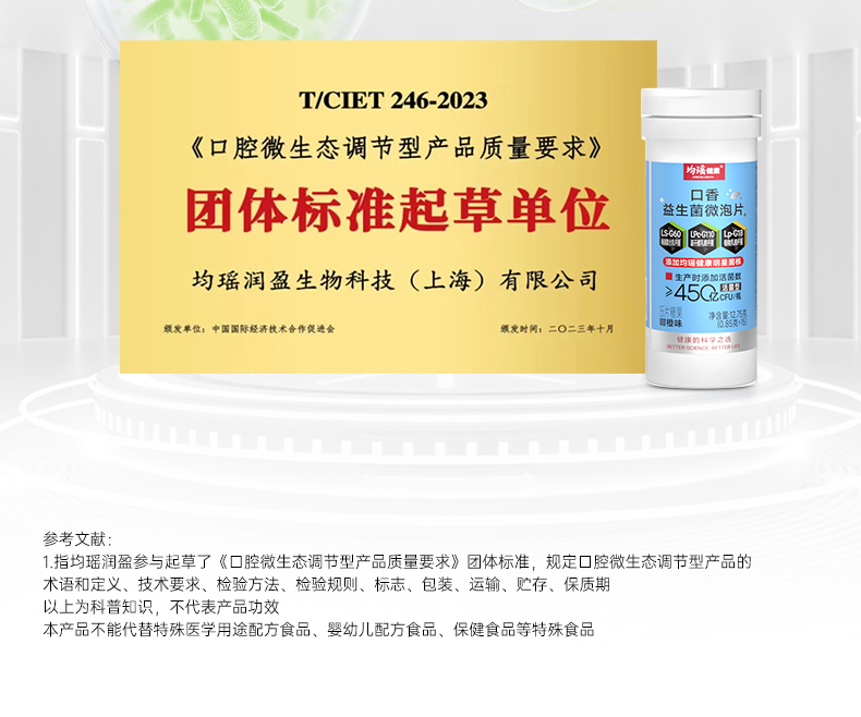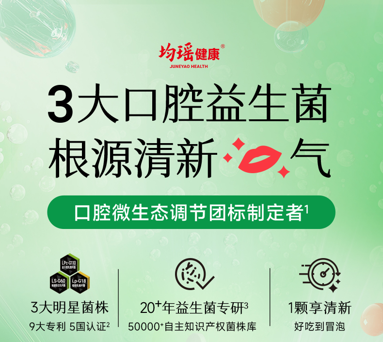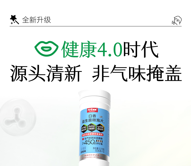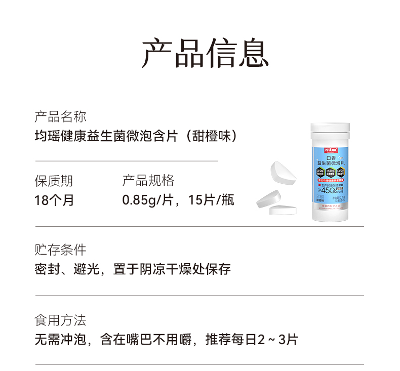 均瑶健康口香益生菌清新口气微泡含片甜橙味15片/瓶