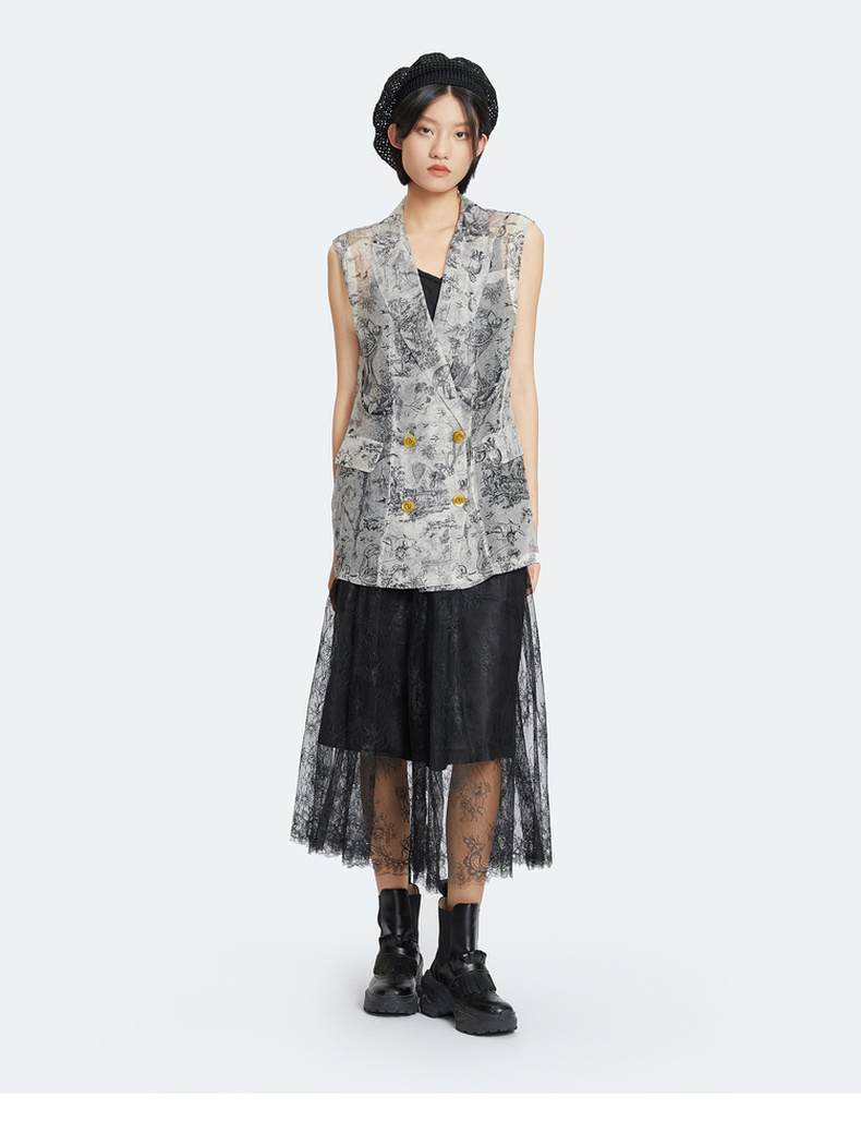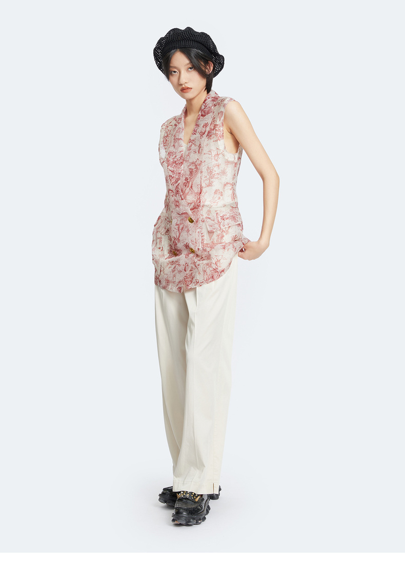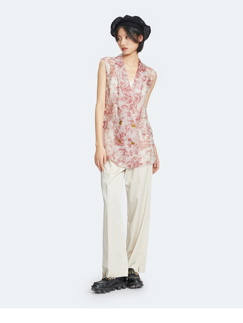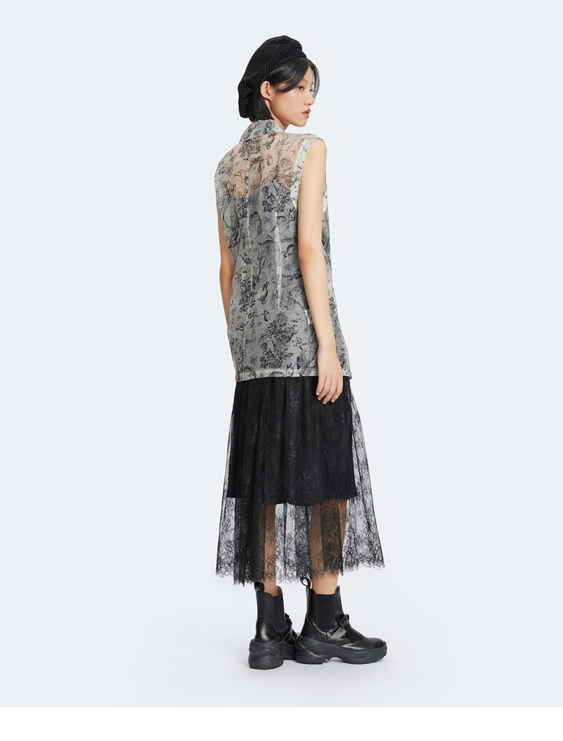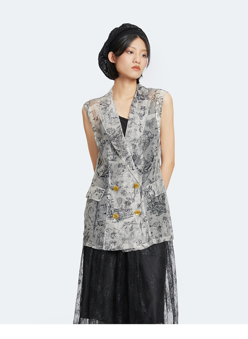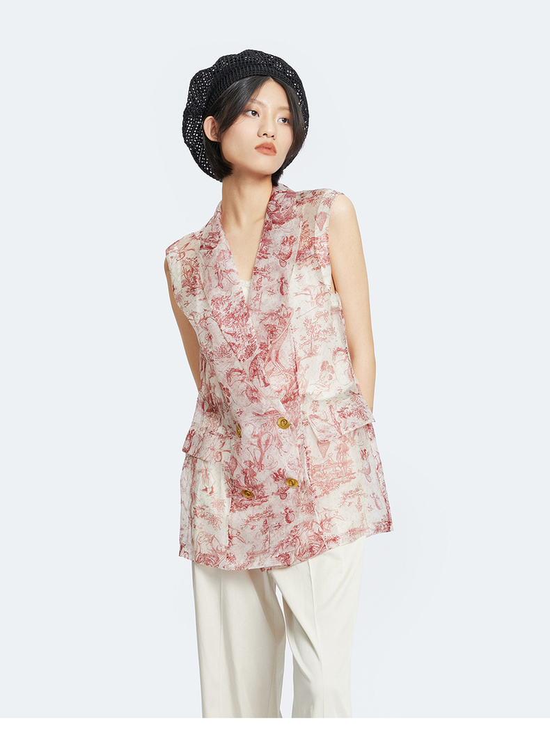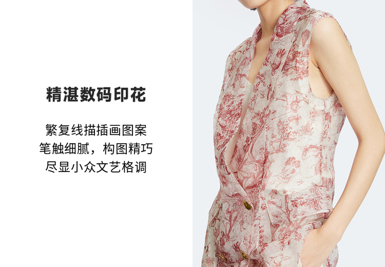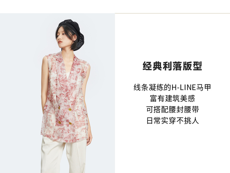 【不规则印花】谜底2022秋款桑蚕丝真丝合体中长马甲女228MM6159