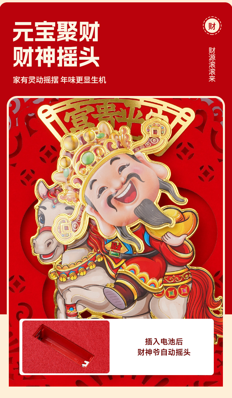 2026马年新年摇头财神电动挂件国潮喜庆白马挂饰春节装饰年货新款新品