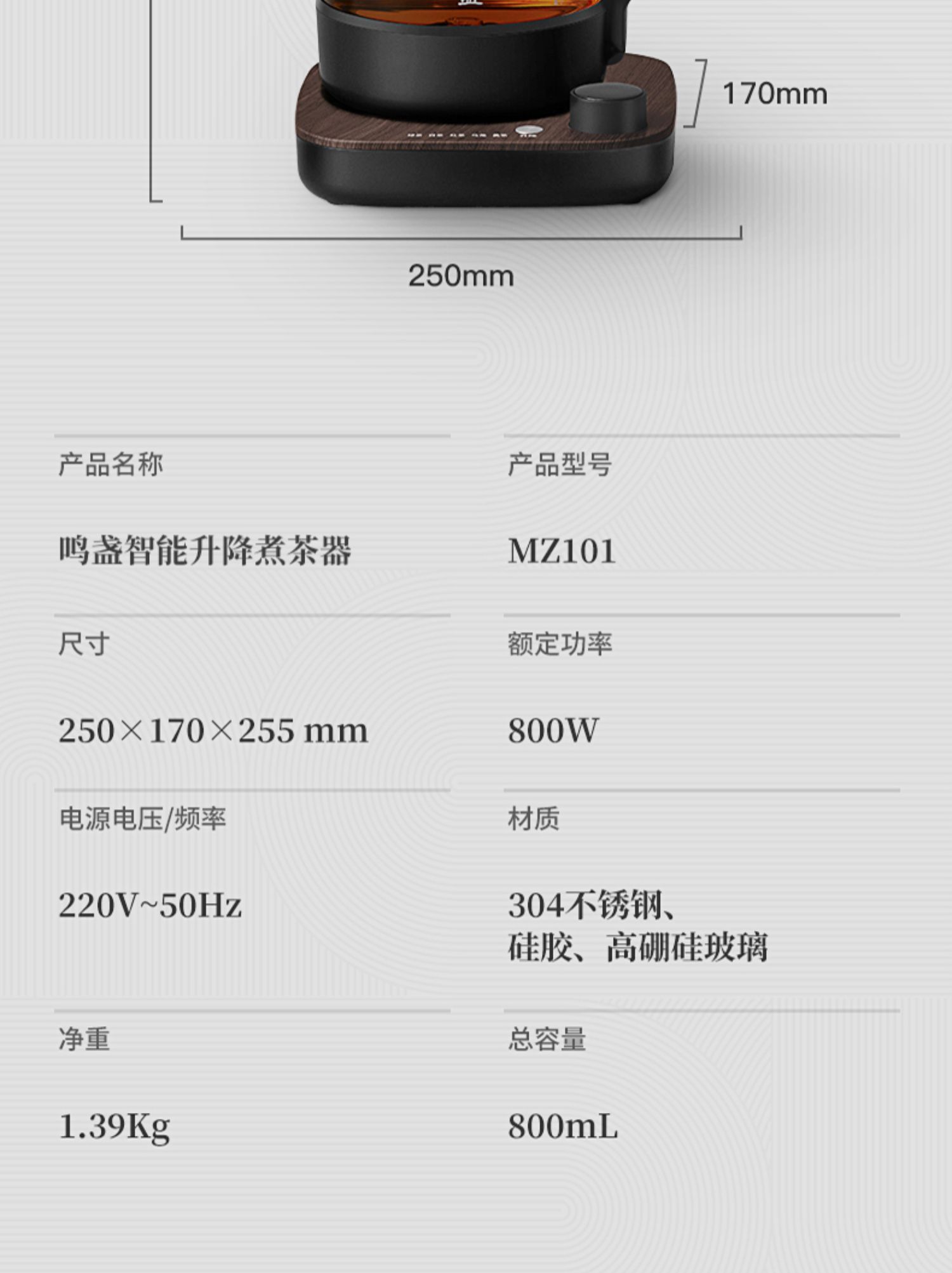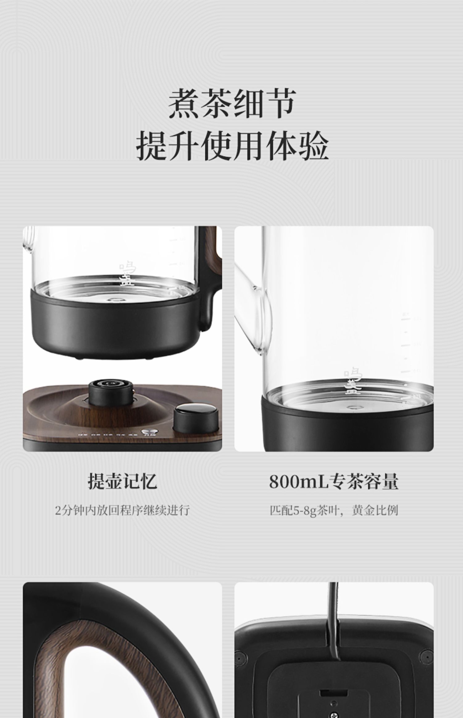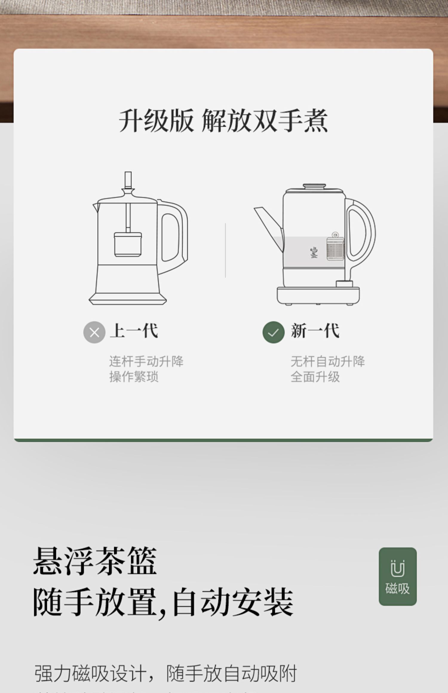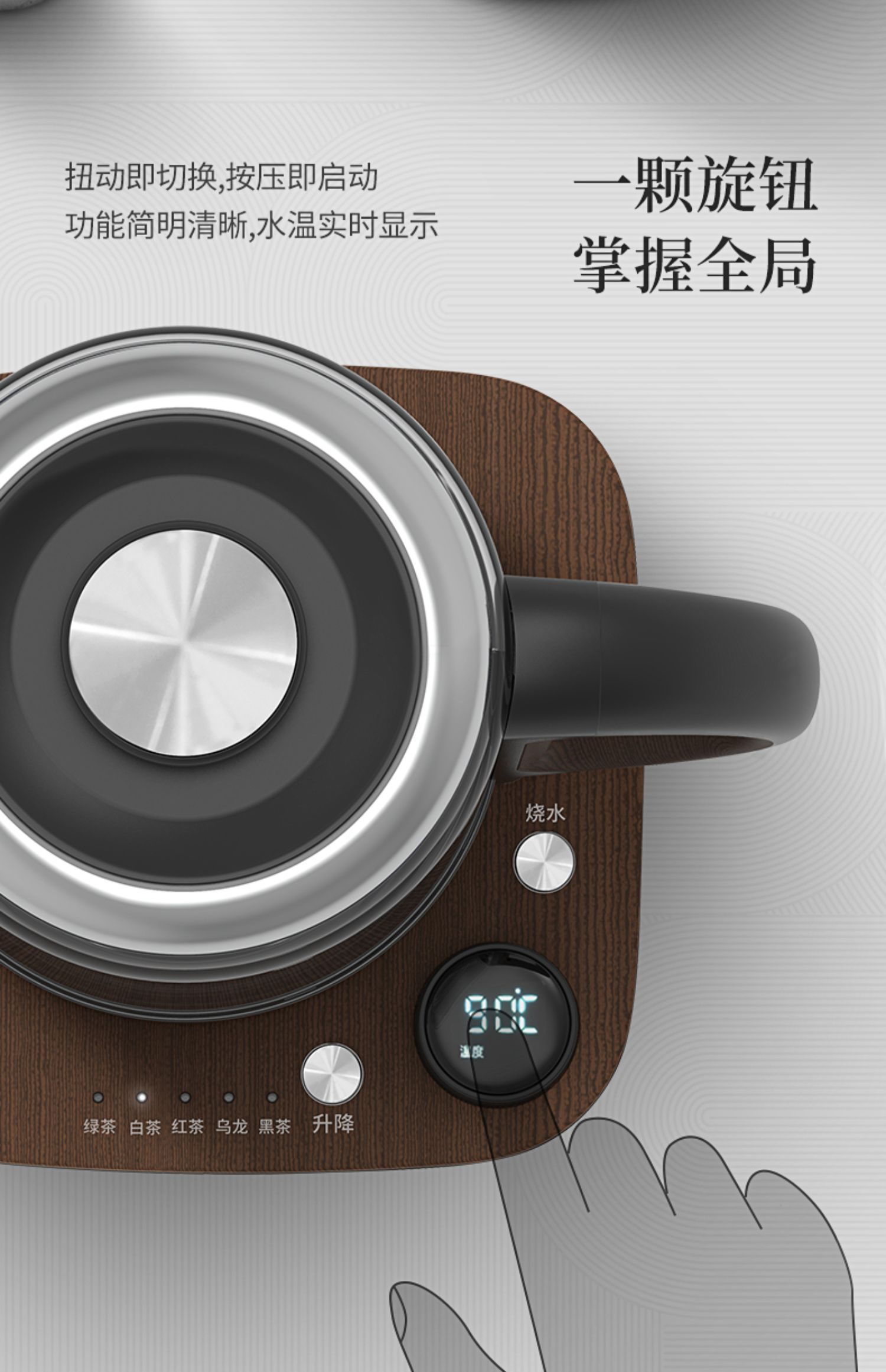 鸣盏磁吸无杆智能升降煮茶器家用小型一体式全自动煮茶炉养生壶