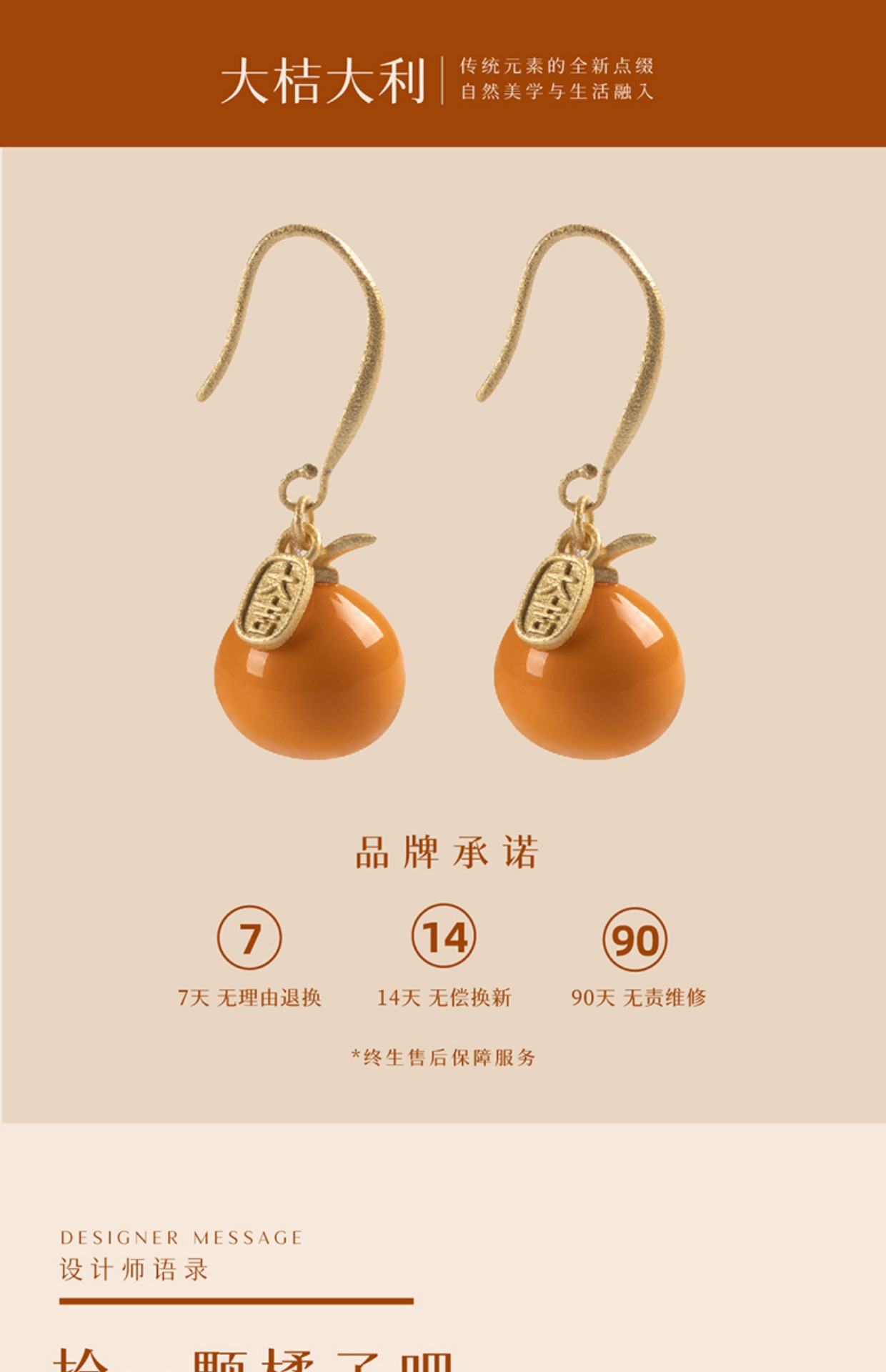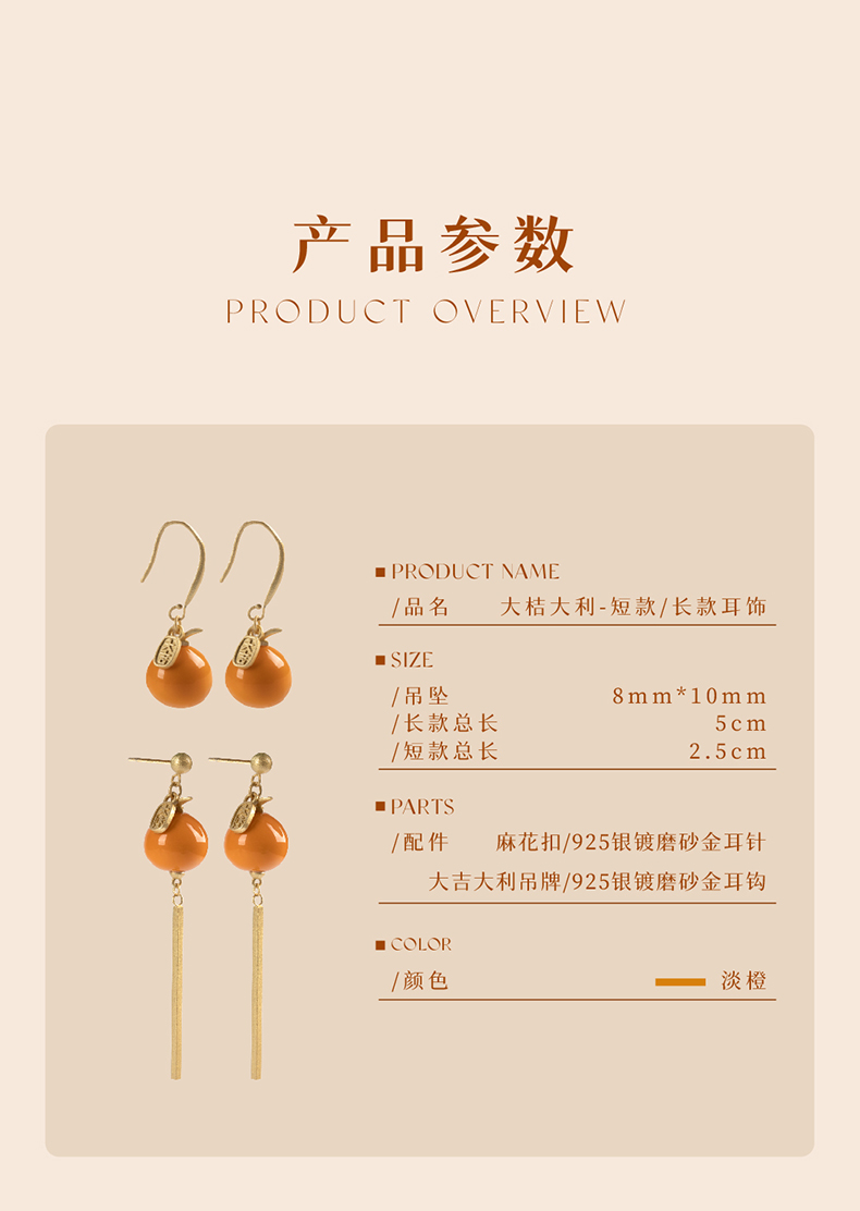 凡华造物大桔大利耳环女小众设计925银耳钉春夏时尚高级耳环大桔大利耳环
