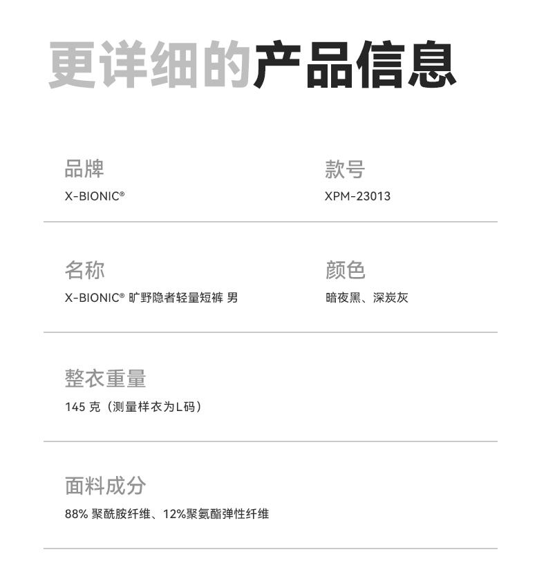 X-BIONIC 旷野隐者轻量男士弹力凉感拒水耐磨户外短裤XPM-23013