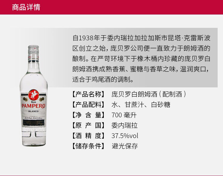 庞贝罗白朗姆酒(配制酒)700ml 2瓶包邮