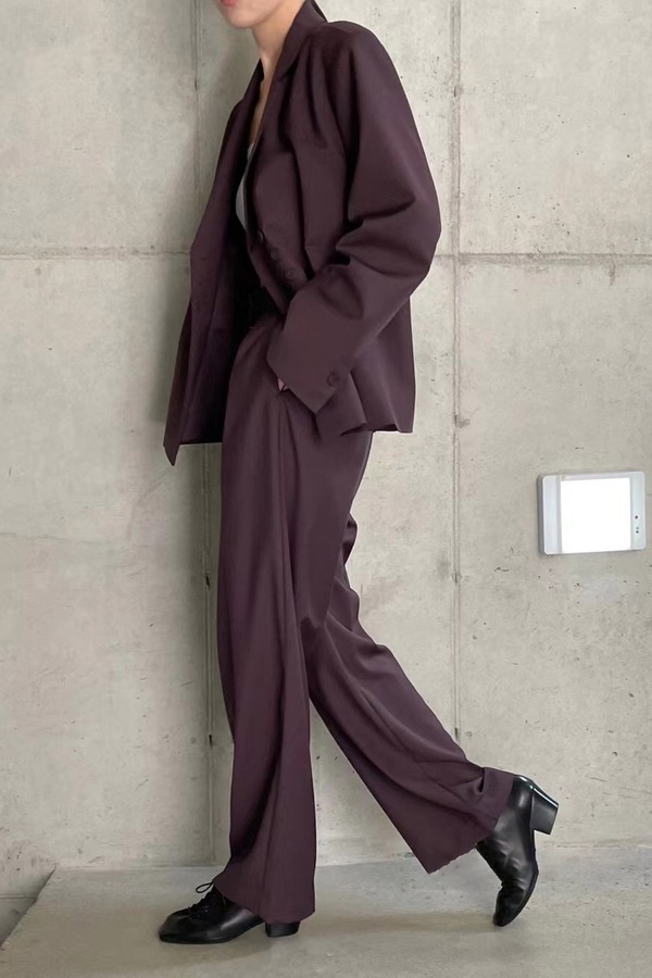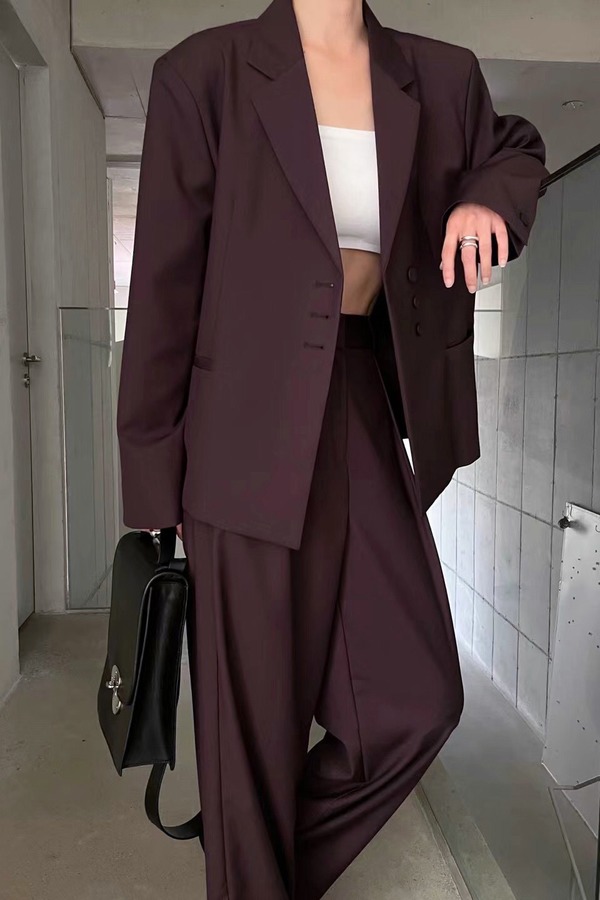 Kai & Kiera 酒红色西装阔腿裤套装 14383
