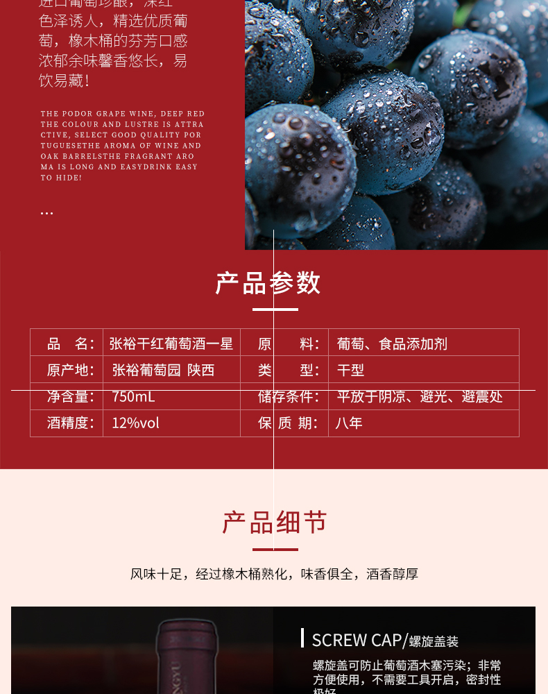 张裕一星干红葡萄酒 整箱750ml*6支(裸瓶)