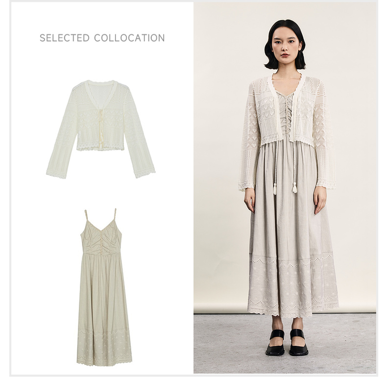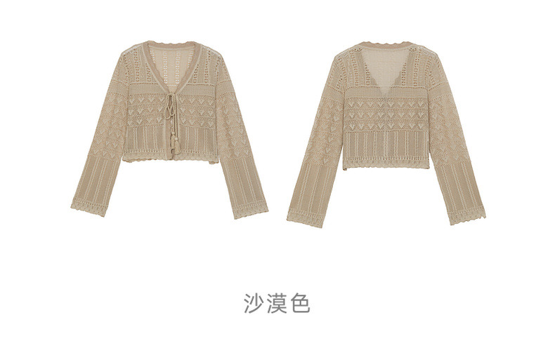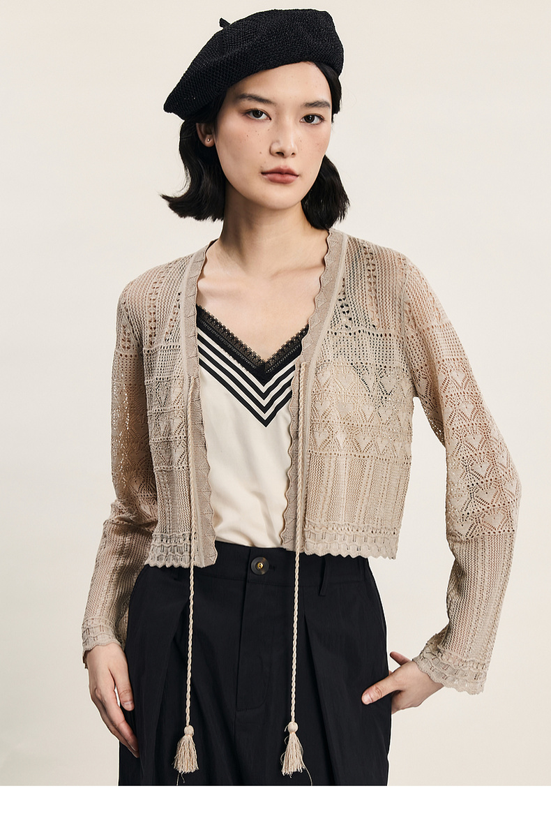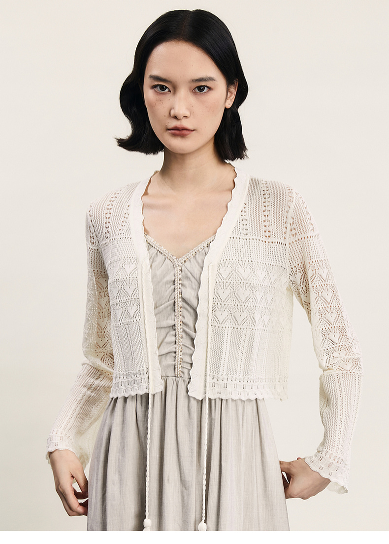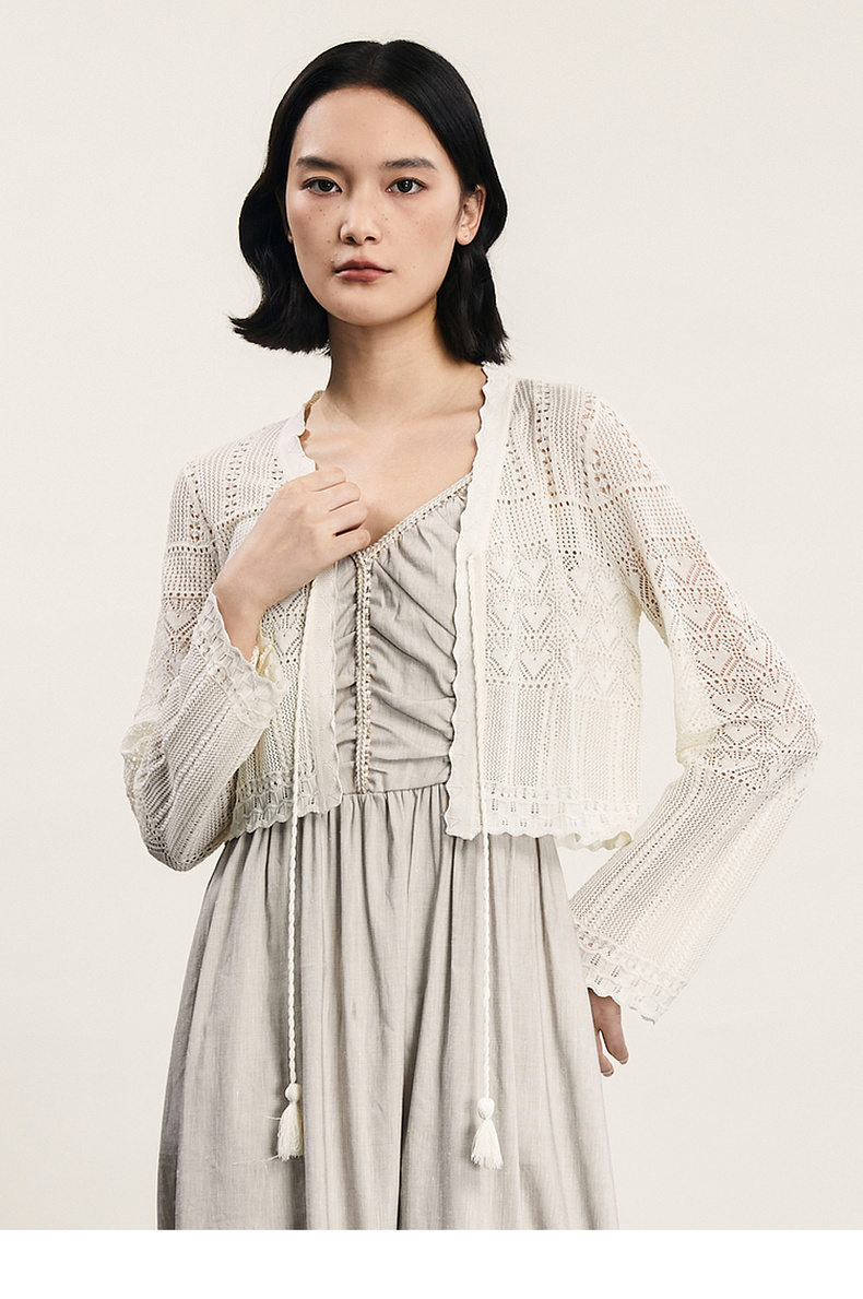 谜底针织开衫长袖2024年夏新品文艺风肌理感提花薄外套242MZ0866