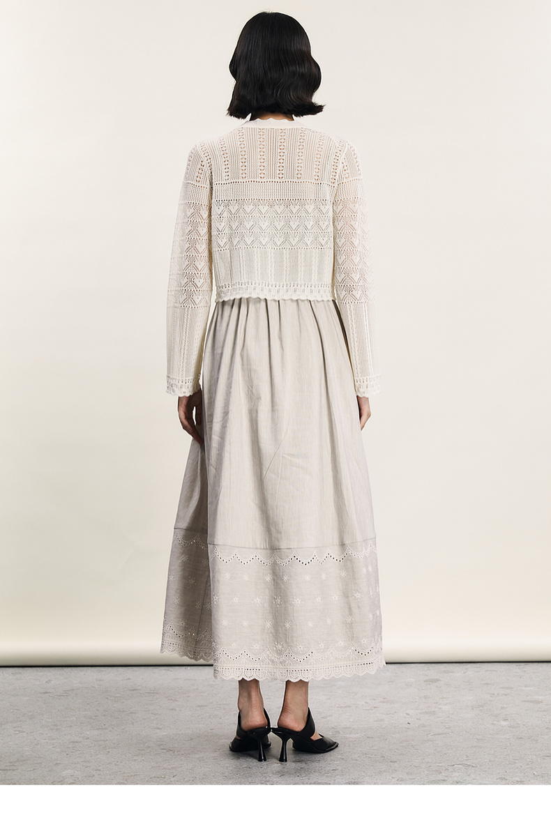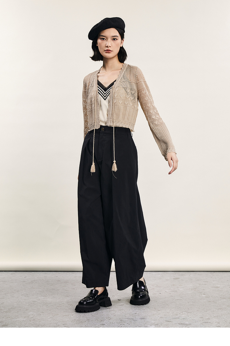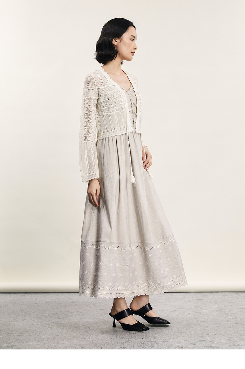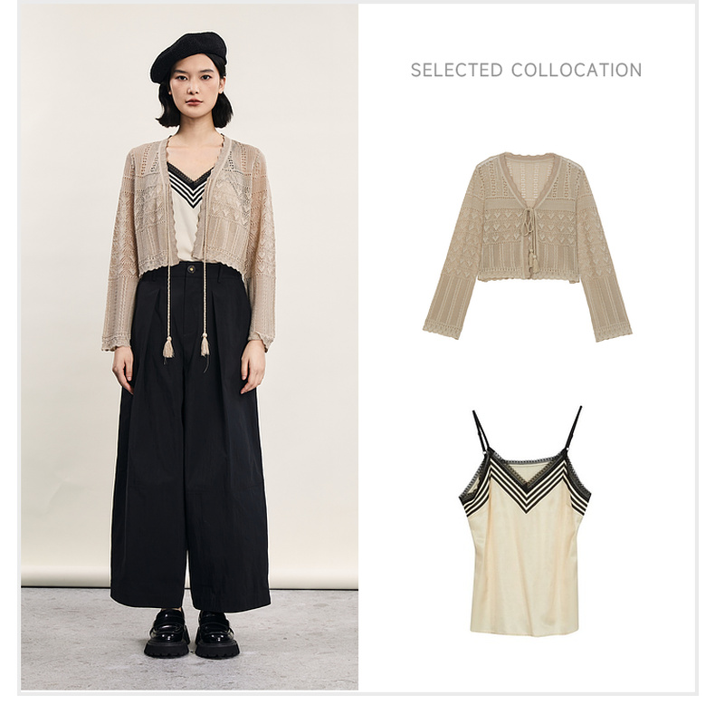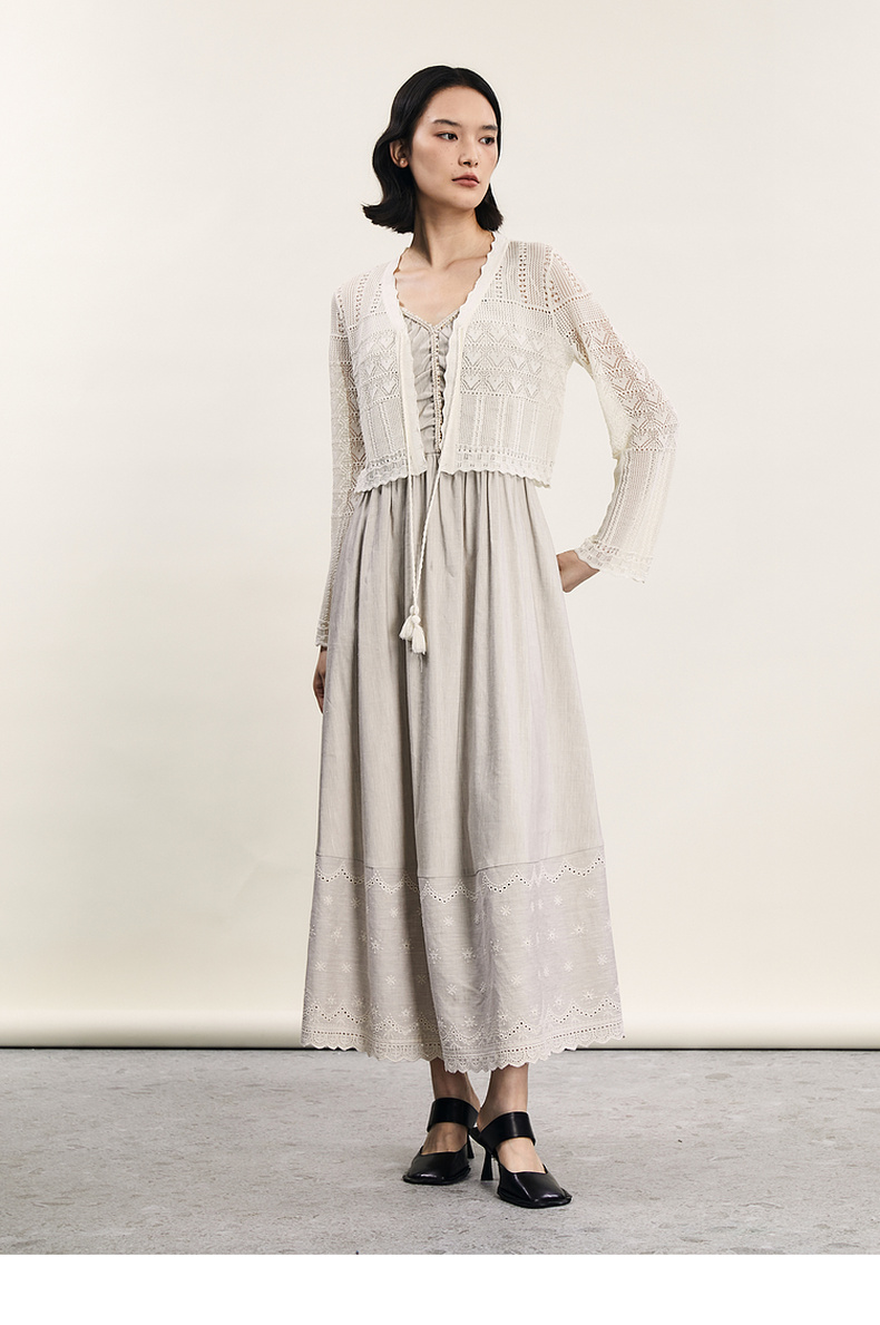 谜底针织开衫长袖2024年夏新品文艺风肌理感提花薄外套242MZ0866