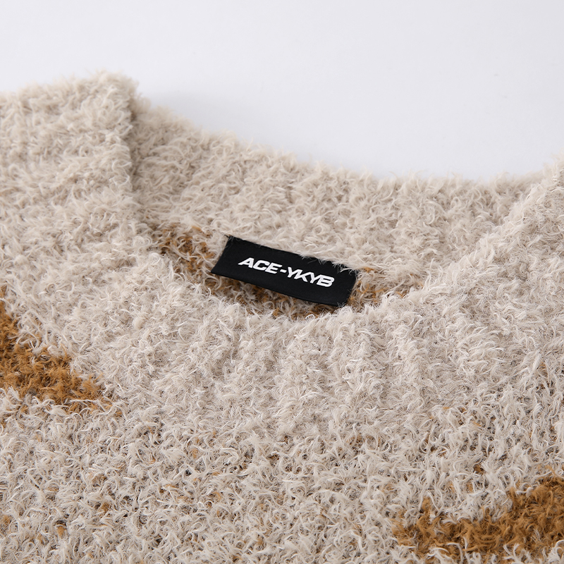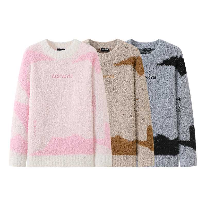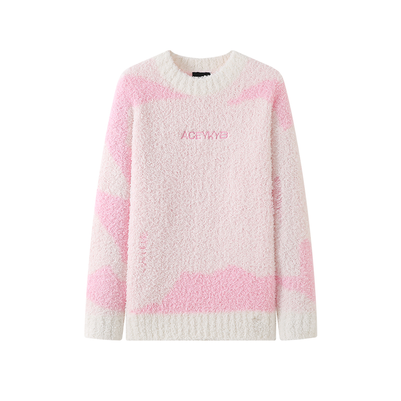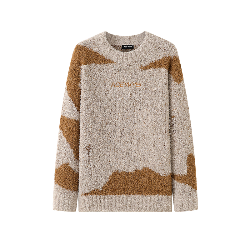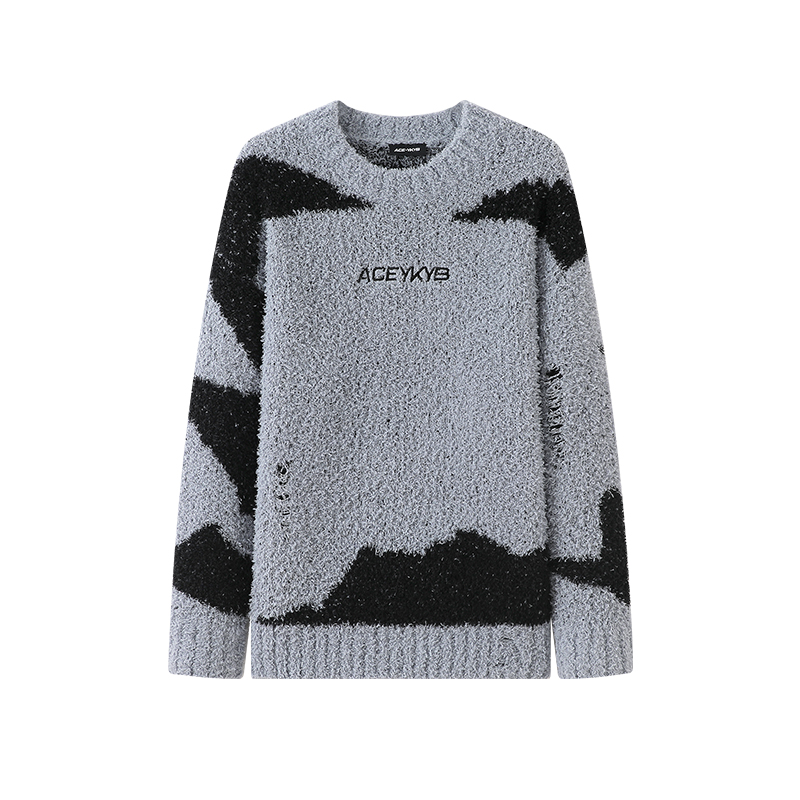 YKYB春季新款撞色圆领落肩毛衣oversize街头百搭潮牌针织衫ins